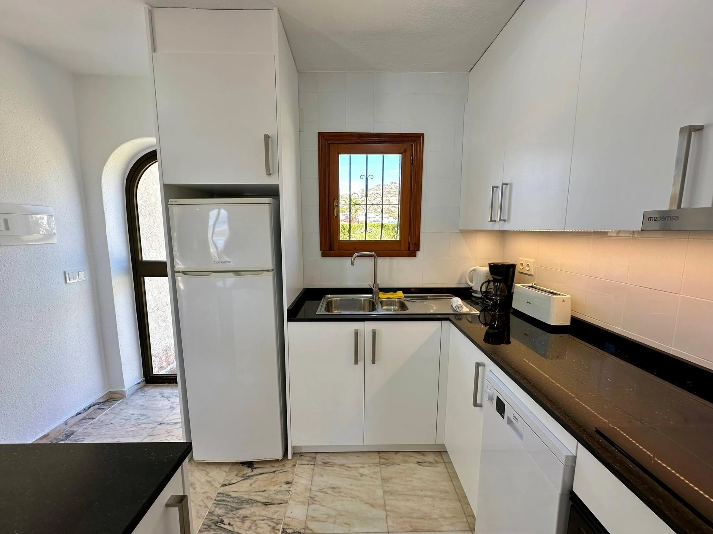 refrigerator-freezer, coffee machine, electric kettle and toaster Bedrooms and
