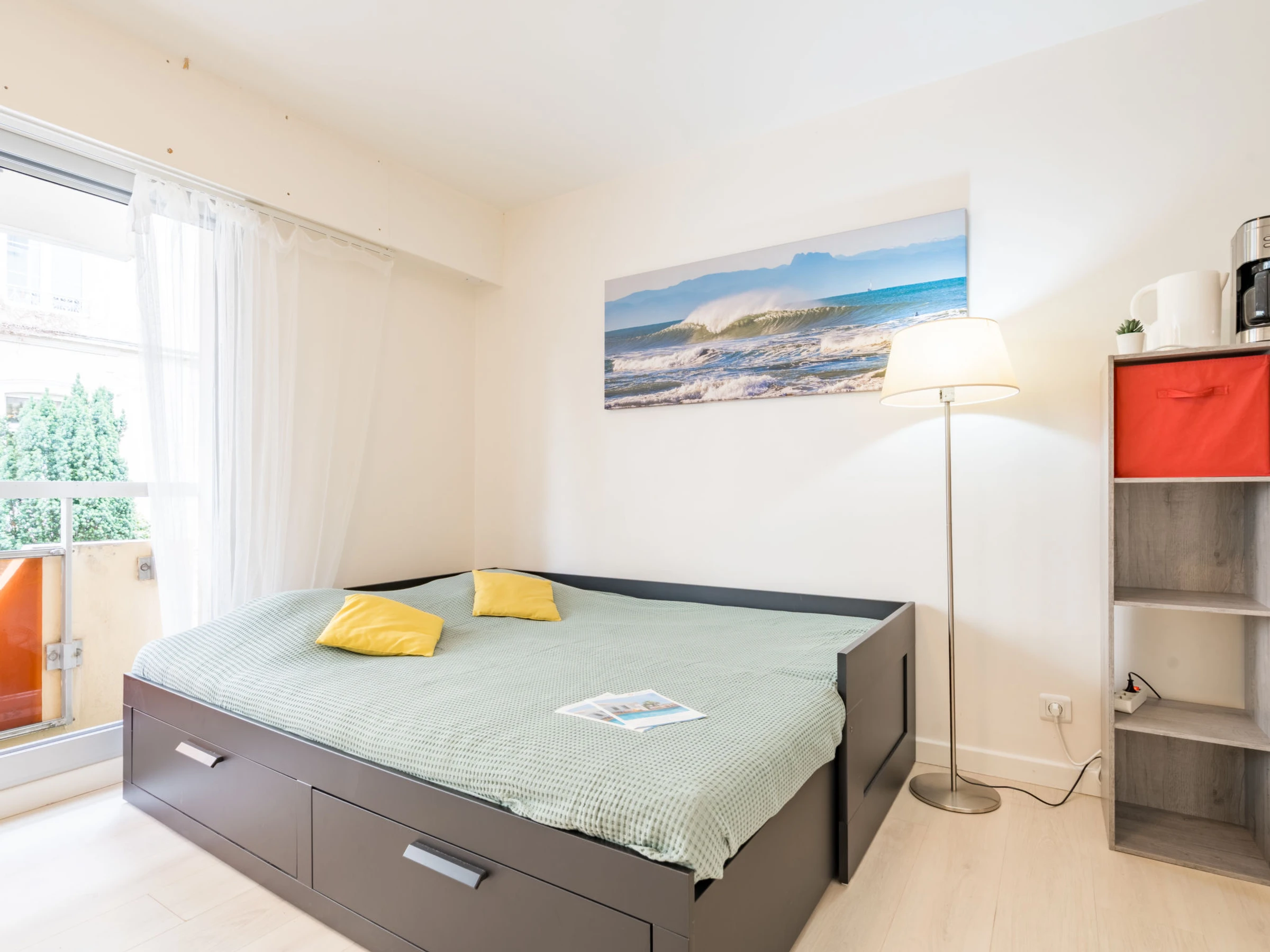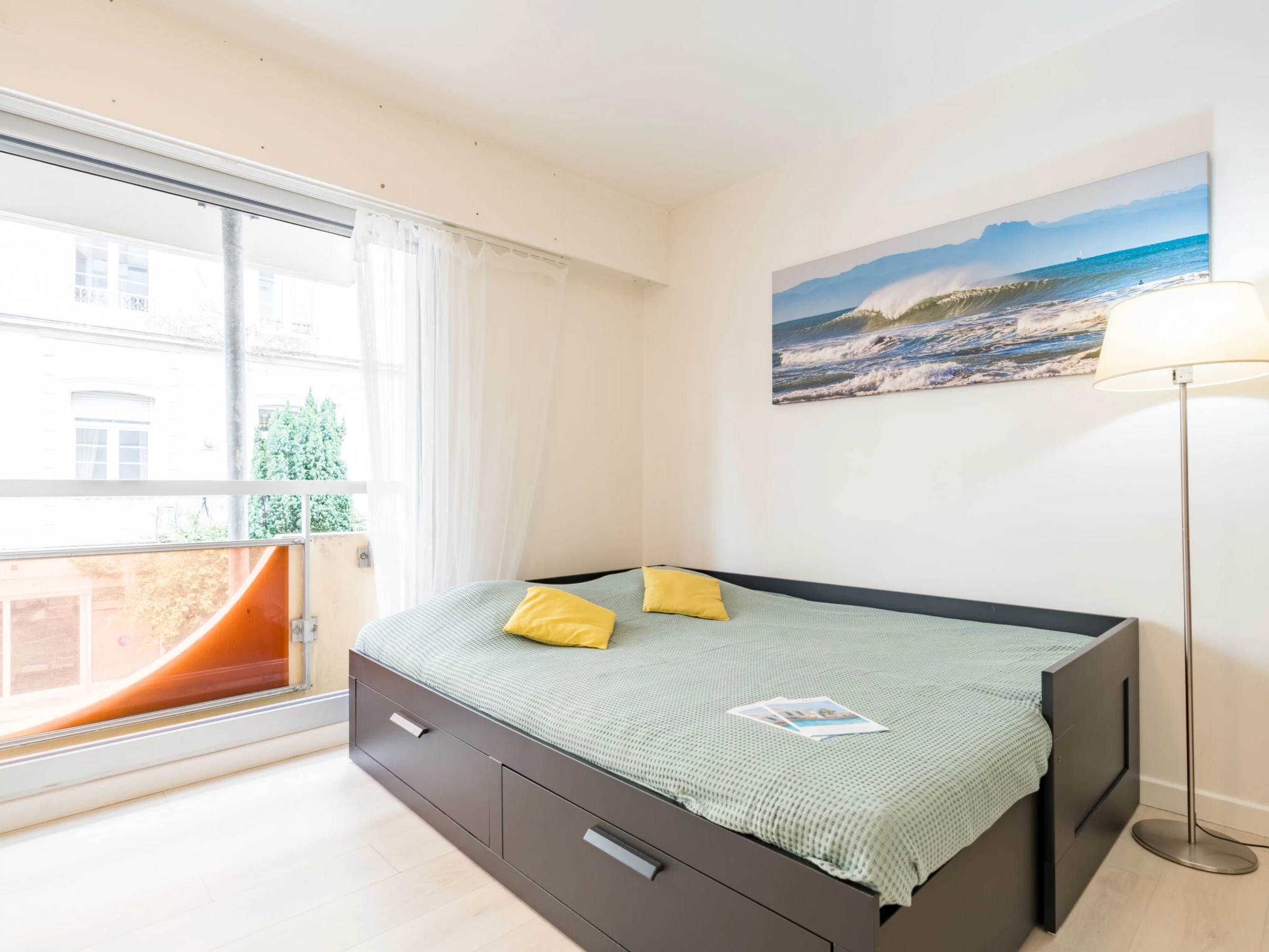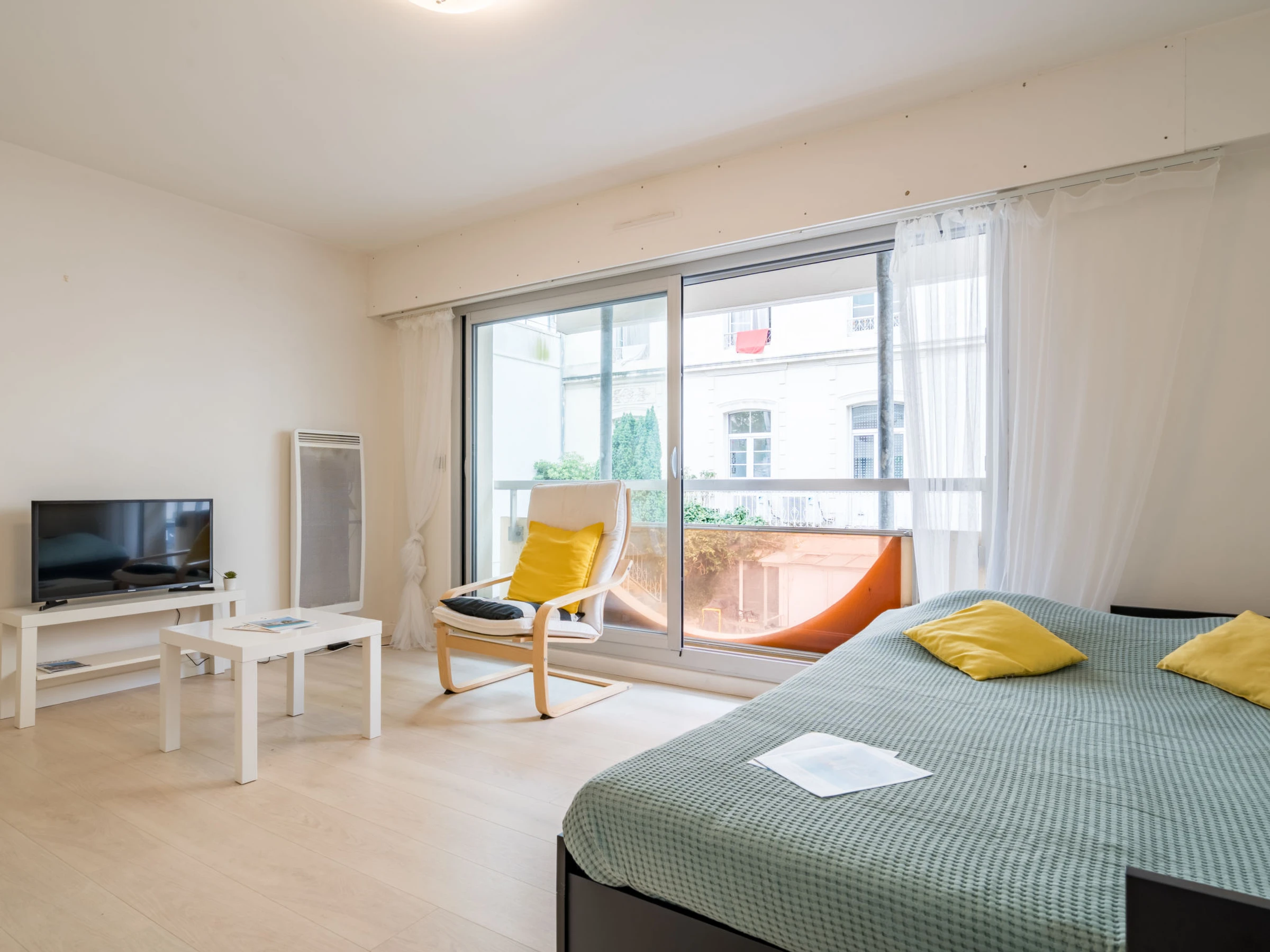 1-room studio 26 m2 on 1st floor. Bright, comfortable furnishings: living/sleeping room with 2 pull-out beds (2 x 80 cm, length 190 cm). Kitchenette (dishwasher, toaster, kettle, microwave, electric coffee machine). Shower/WC. Electric heating. Facilities: washing machine, iron, hair dryer. Internet (WiFi, extra). Please note: non-smokers only. Smoke alarm. Offer by a private individual according to Art. 155, IV of CGI. [hidden]