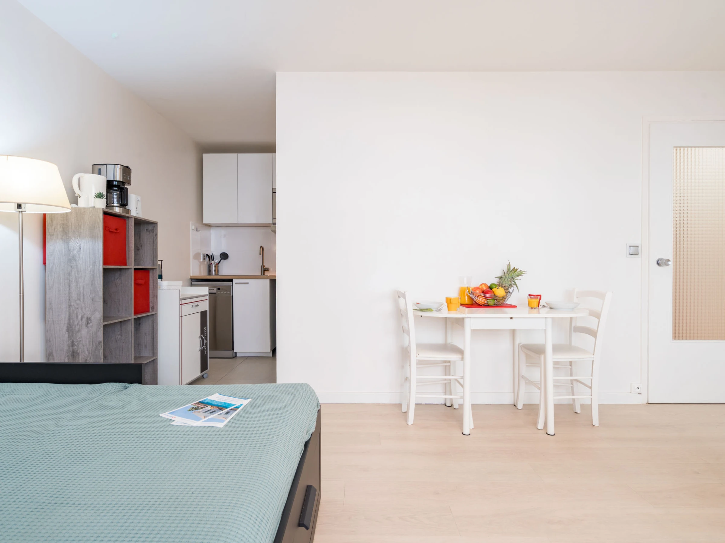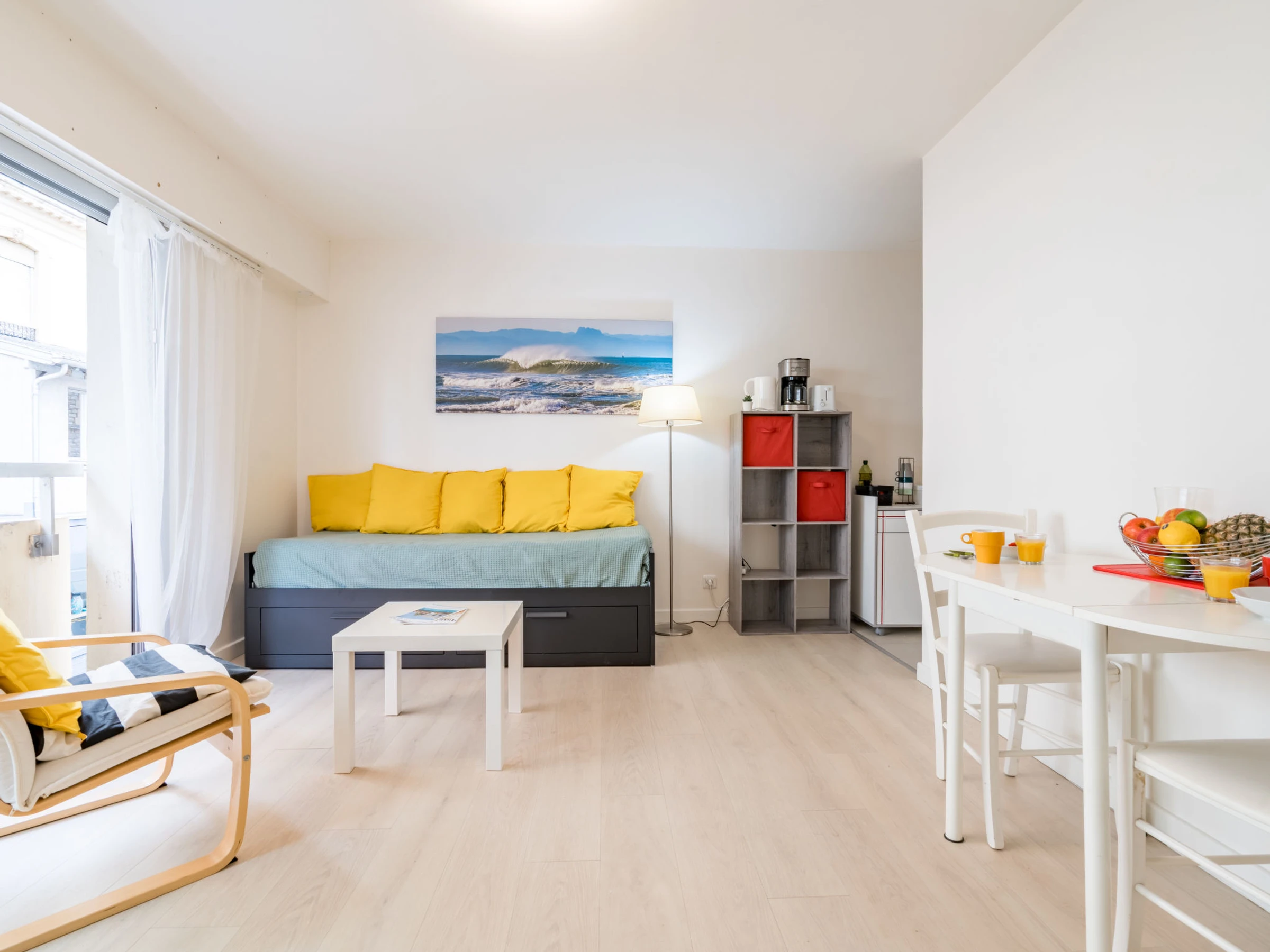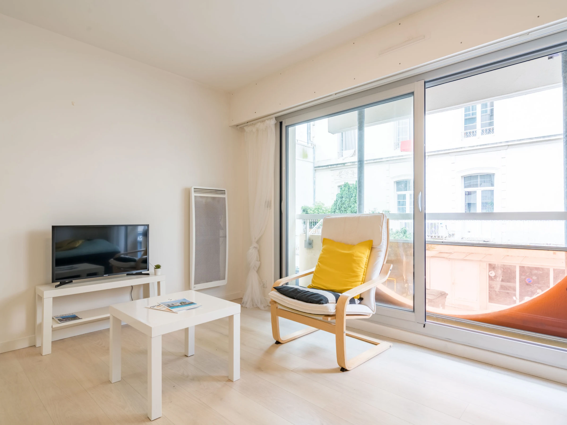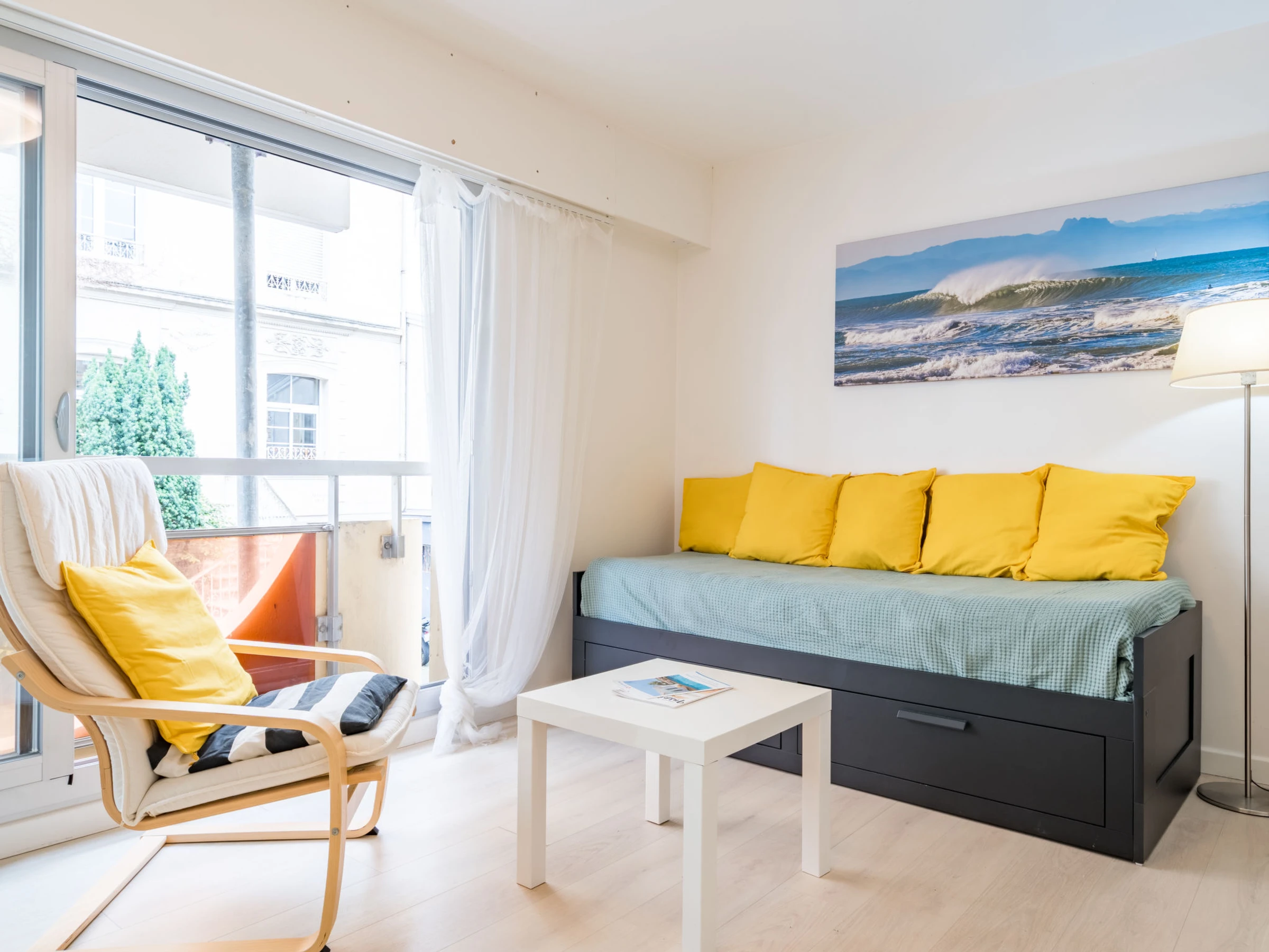 1-room studio 26 m2 on 1st floor. Bright, comfortable furnishings: living/sleeping room with 2 pull-out beds (2 x 80 cm, length 190 cm). Kitchenette (dishwasher, toaster, kettle, microwave, electric coffee machine). Shower/WC. Electric heating. Facilities: washing machine, iron, hair dryer. Internet (WiFi, extra). Please note: non-smokers only. Smoke alarm. Offer by a private individual according to Art. 155, IV of CGI. [hidden]