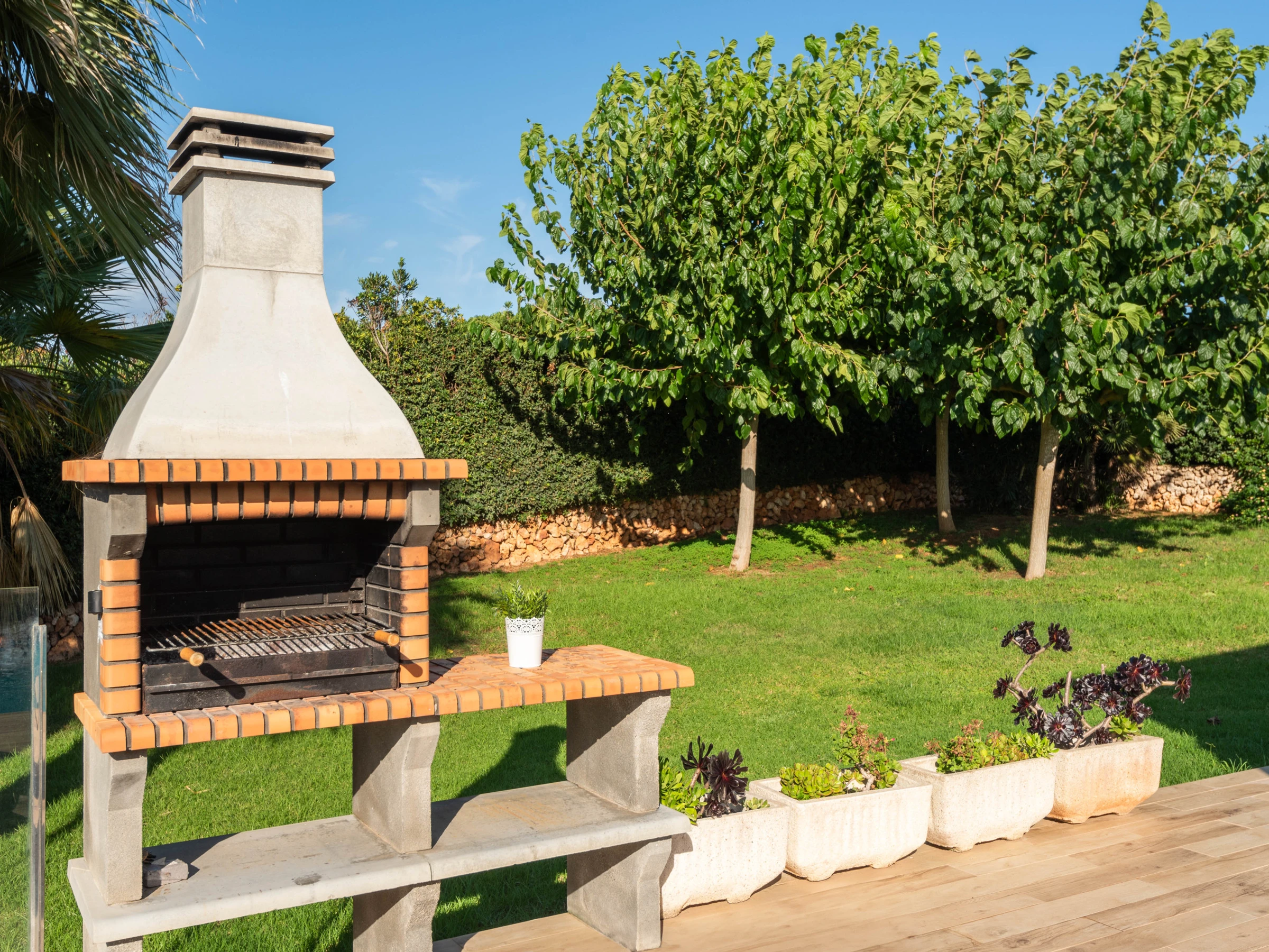 The exterior of the apartment features a beautiful garden, garden furniture, and a terrace, where you can relax and enjoy sea views. The property also has a barbecue, perfect for enjoying outdoor meals with family.