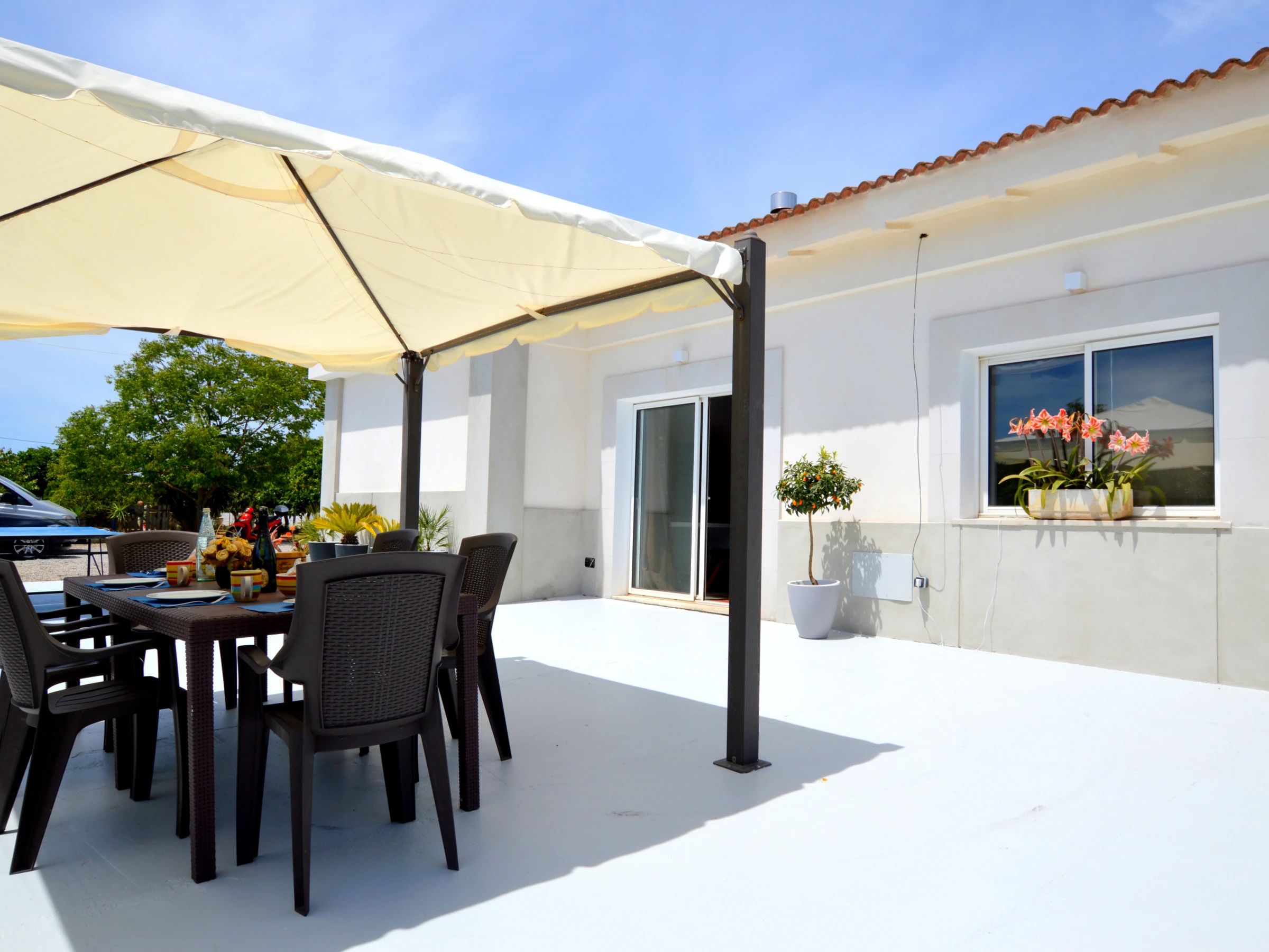 The house is distributed on a single floor, with a spacious and comfortable living-dining room next to a fully equipped kitchen with everything necessary and direct access to the exterior terrace.