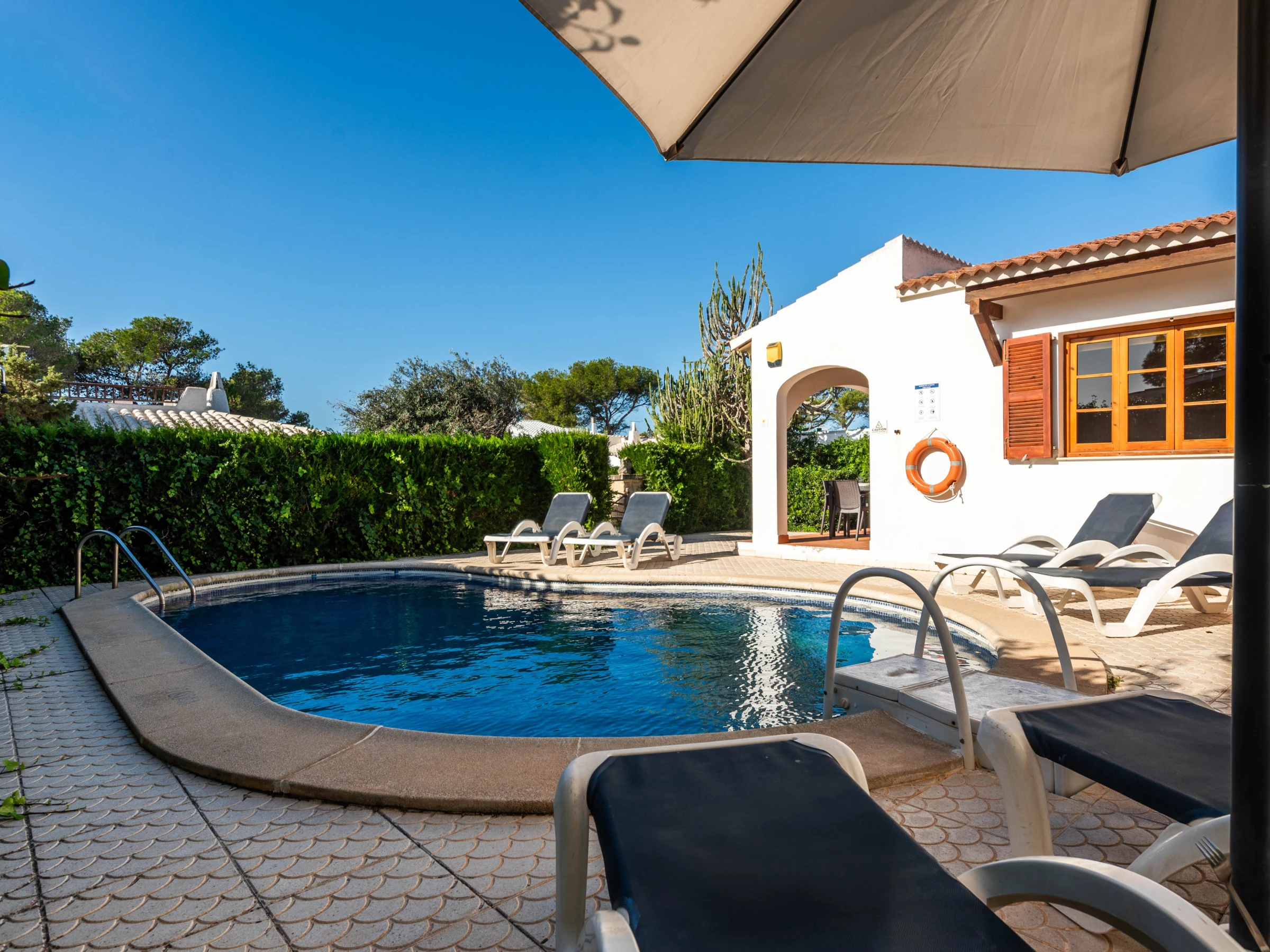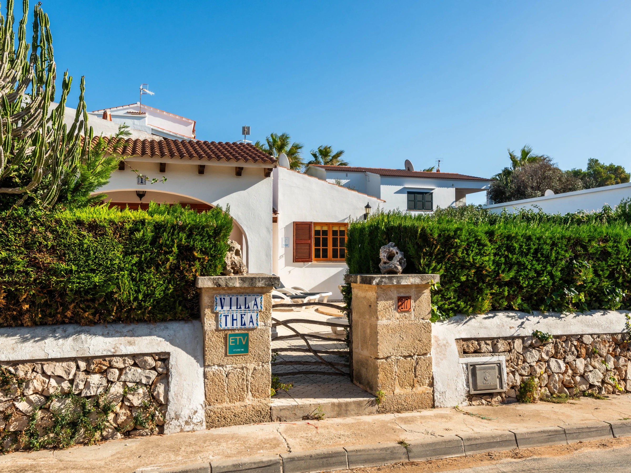 Villa Thea is perfectly located in the coveted Cala Blanca complex, a short distance from all services, including two fine white sandy beaches. With a fully equipped kitchen with dishwasher, electric oven, ceramic hob, microwave, capsule and Italian coffee machine, fridge with freezer, washing machine, toaster, kettle.