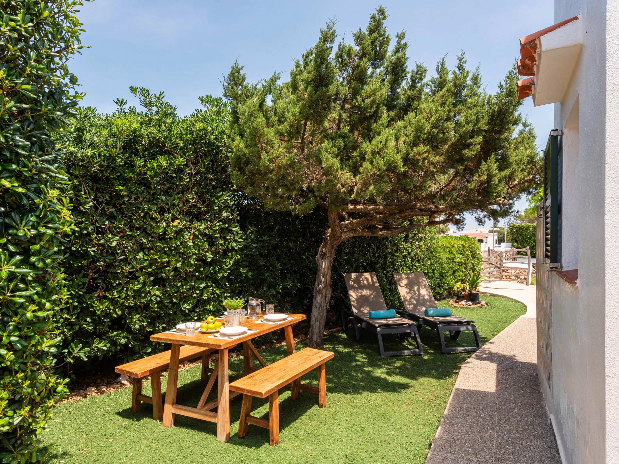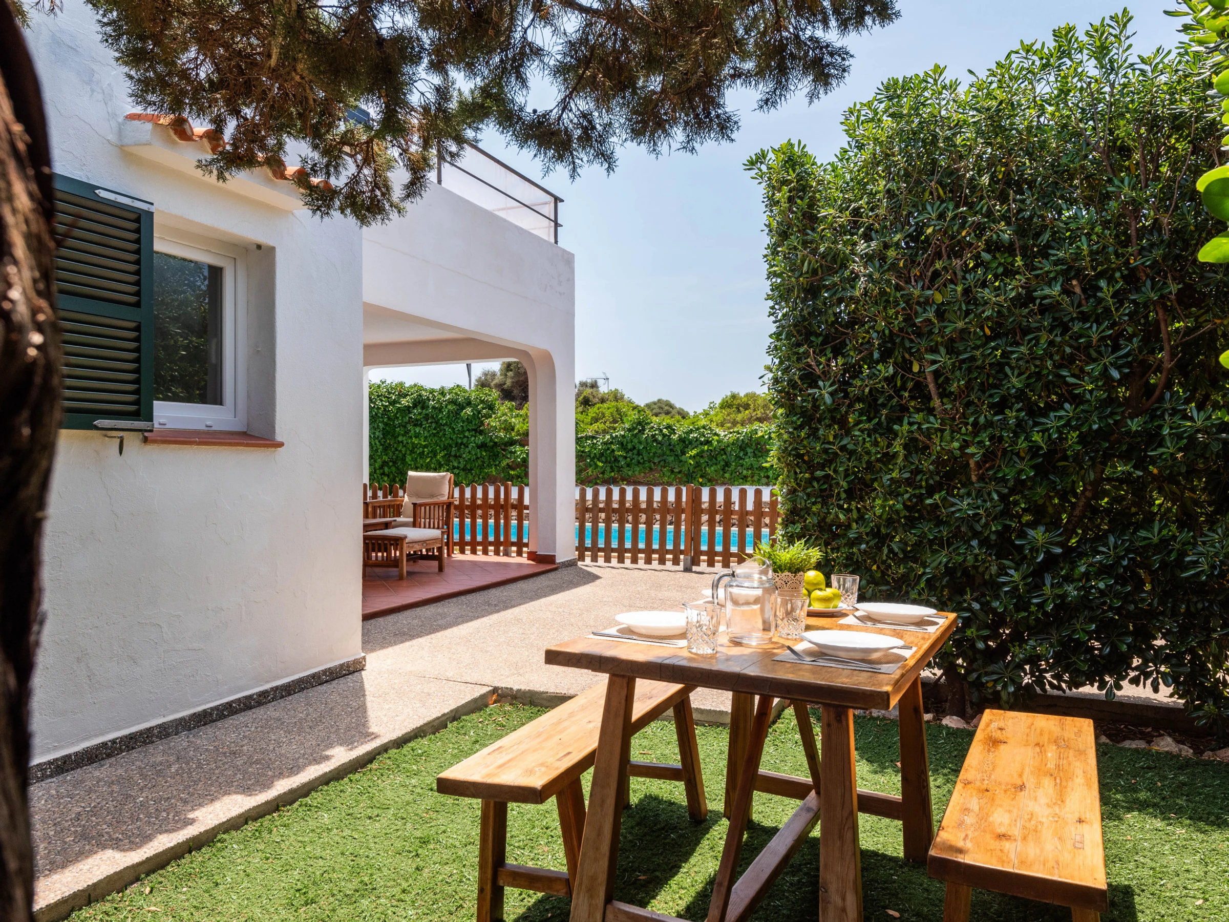 Cosy and welcoming semi-detached villa located in a quiet area of the Calan Blanes urbanisation. It features a private swimming pool with garden and brick barbecue.