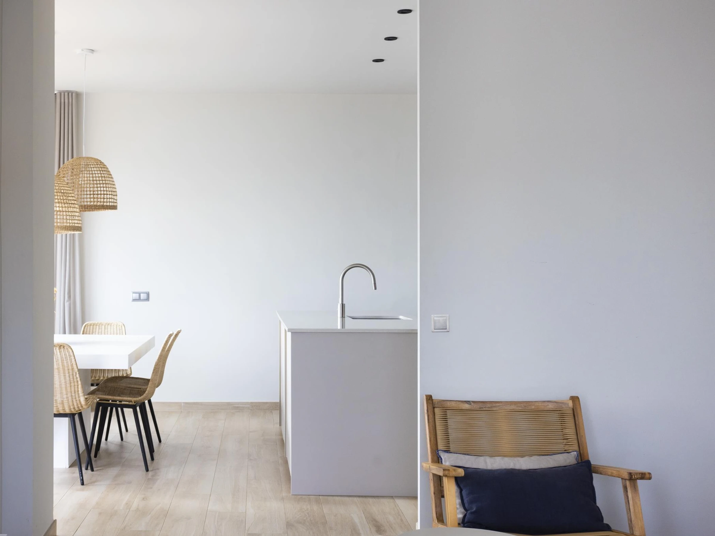 The kitchen and the living room merge into an open space, creating a cozy environment to meet and share unforgettable moments. The kitchen is fully stocked with modern appliances and cookware, allowing you to prepare delicious home-cooked meals during your stay. In addition, the apartment has high-speed Wi-Fi, so you can be connected at all times, and air conditioning to ensure your comfort at any time of the year.