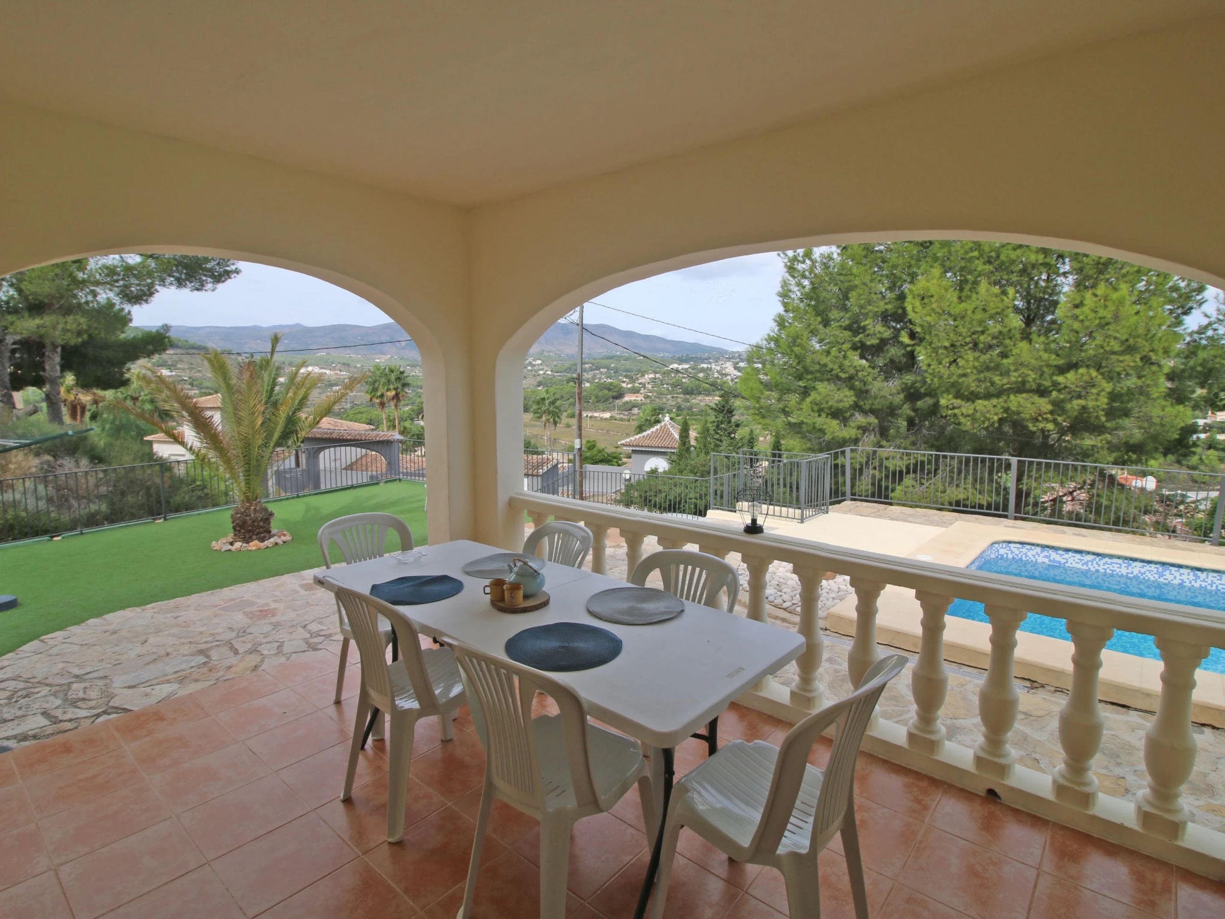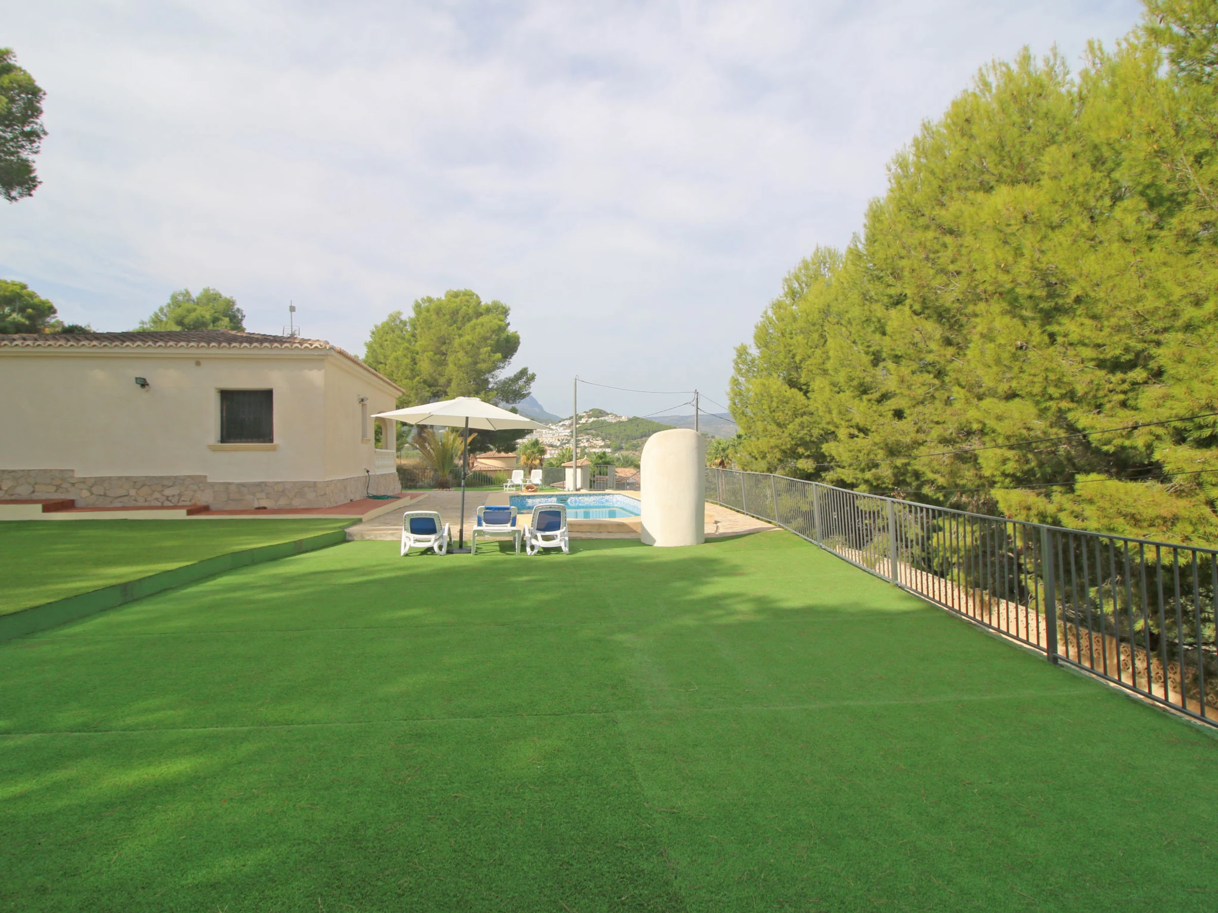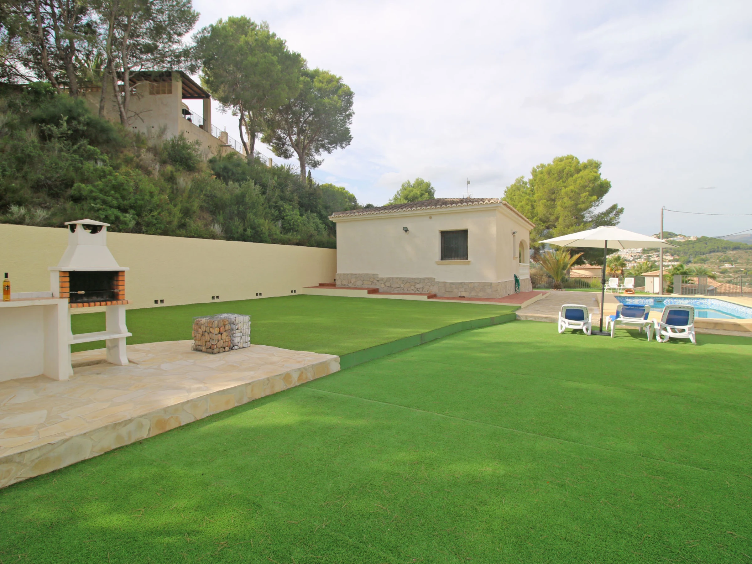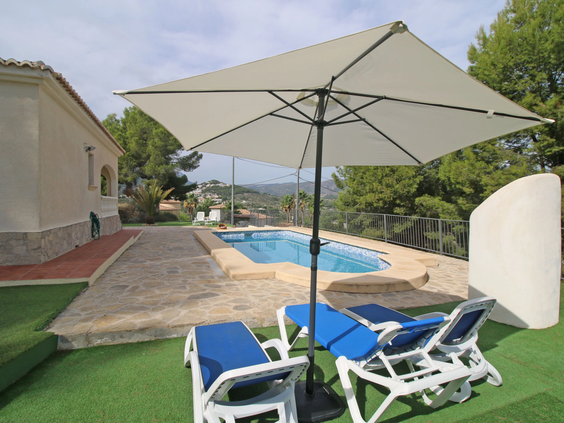 La Vallesa: Small, simple single-family house "Villa Sandra". 3.2 km from the centre of Calpe, in a quiet position, traffic calmed area, 2.5 km from the sea, 2.5 km from the beach. Private: property 1'020 m2 (fenced), garden with lawn, swimming pool angular (8 x 4 m, seasonal availability: [hidden] - [hidden] with internal staircase. Outdoor shower. Supermarket 2 km, restaurant 1.8 km, bar 1.8 km, café 2.5 km, bus stop 1 km, sandy beach "Playa de la Fossa" 3 km. Nearby attractions: Aqualandia, Mundormar, Terra Mítica, Terra Natura, y Benidorm Palace (Benidorm). Hiking paths: Peñón de Ifach, Sierra de Oltà.