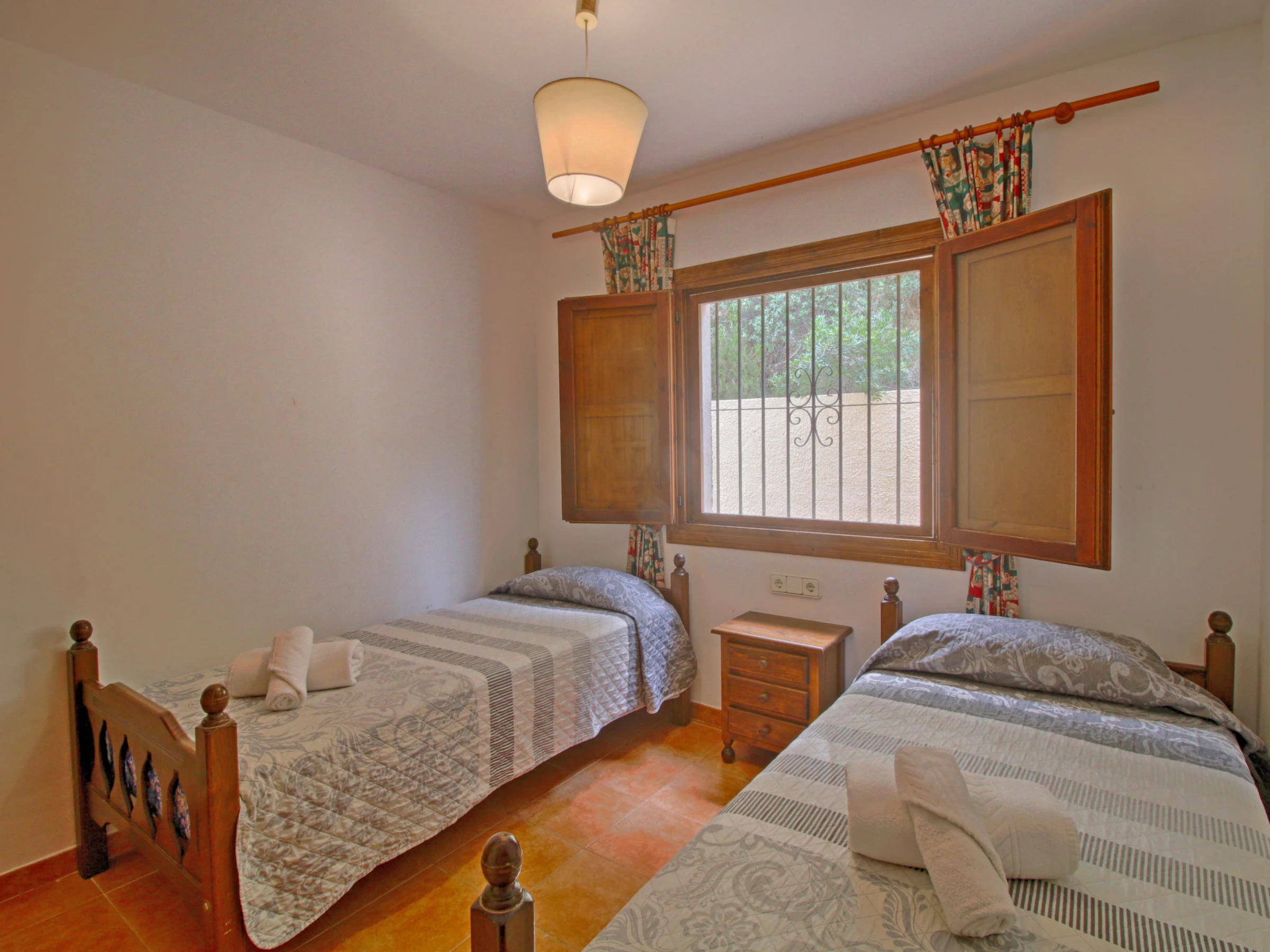 "Villa Sandra", 3-room house 108 m2. Bright: living/dining room with satellite TV and digital TV. Exit to the terrace. 1 room with 1 french bed (135 cm, length 190 cm). 1 room with 1 french bed (150 cm, length 190 cm). 1 room with 2 beds (90 cm, length 190 cm). Kitchen (4 ceramic glass hob hotplates, toaster, kettle, electric coffee machine). Bath/WC, sep. WC. No heating option. Terrace. Terrace furniture, barbecue, deck chairs (4). View of the swimming pool. Facilities: washing machine, iron, hair dryer. Internet (WiFi, free). Parking (fenced). Suitable for families. [hidden] // Reg. Nr.: ESFCTU00000302900048305400000000000000000[hidden]1