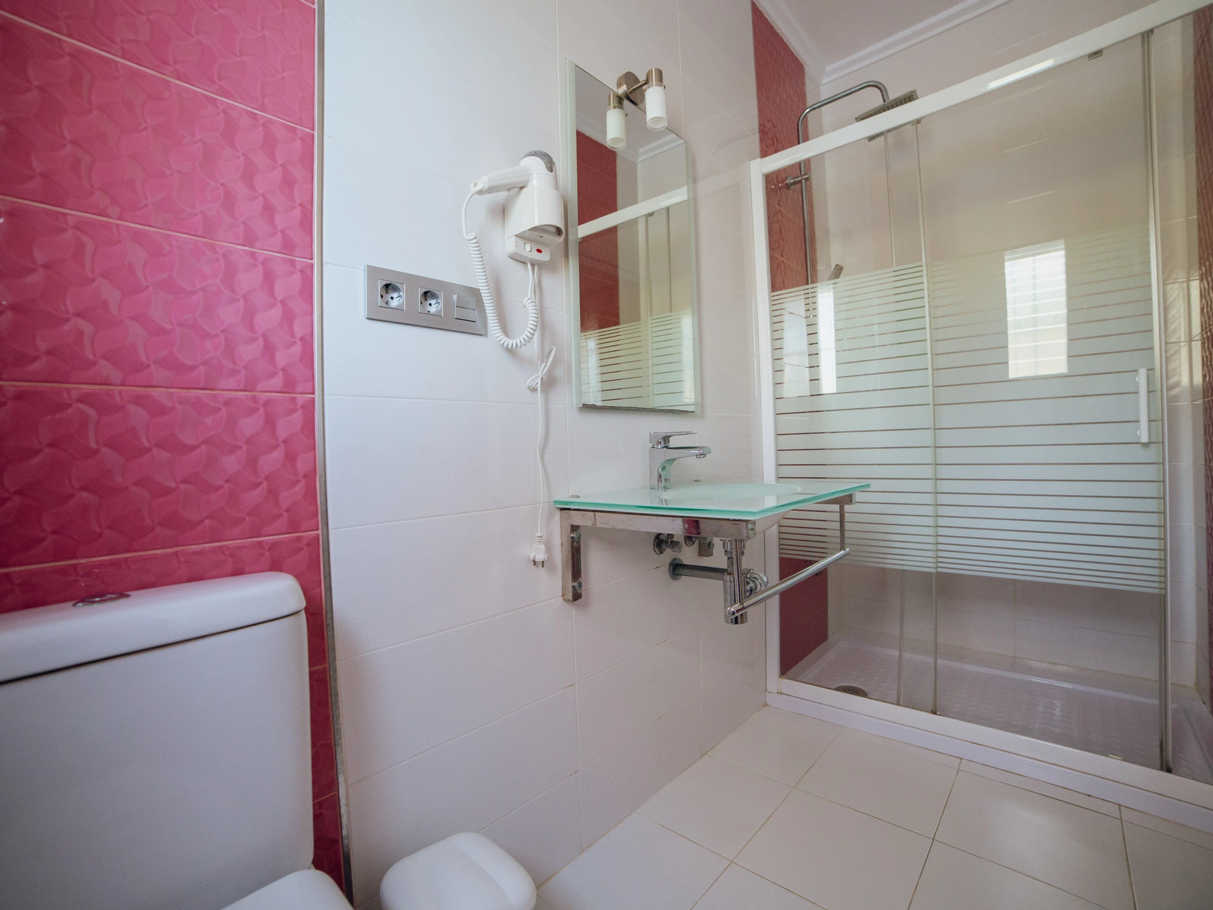 The MAIN FLOOR offers a cozy atmosphere with a living-dining room, SAT/TDT TV, air conditioning and a fully equipped open kitchen with ceramic hob and dishwasher. Two bedrooms with double beds (one with an en-suite bathroom), two bedrooms with two single beds each, and a bathroom with a shower and bathtub. The air conditioning in the reception on this floor guarantees a pleasant atmosphere.