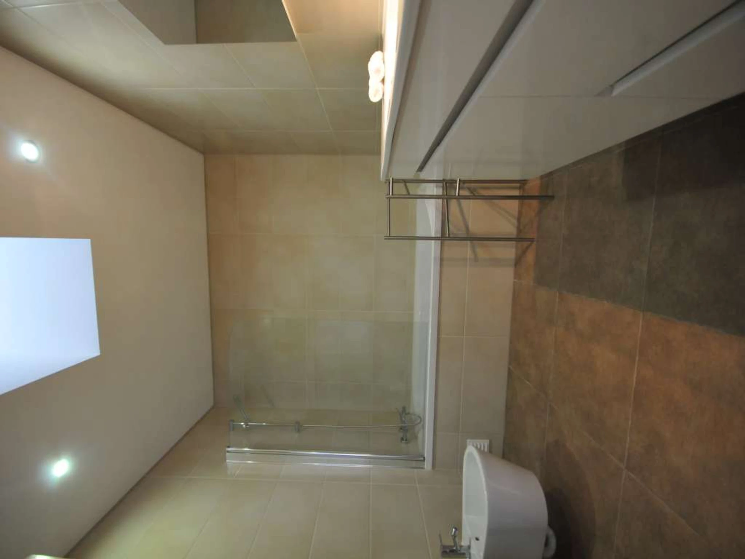 Accommodating up to 10 individuals, the villa comprises five bedrooms and four bathrooms. On the lower floor, a double bedroom opens onto an outdoor terrace, while an adjacent shower room provides added convenience. Another bedroom on this floor features a set of bunk beds, an en-suite shower room, and a door leading to the outdoor terrace. A dedicated laundry room with a washing machine completes this level.