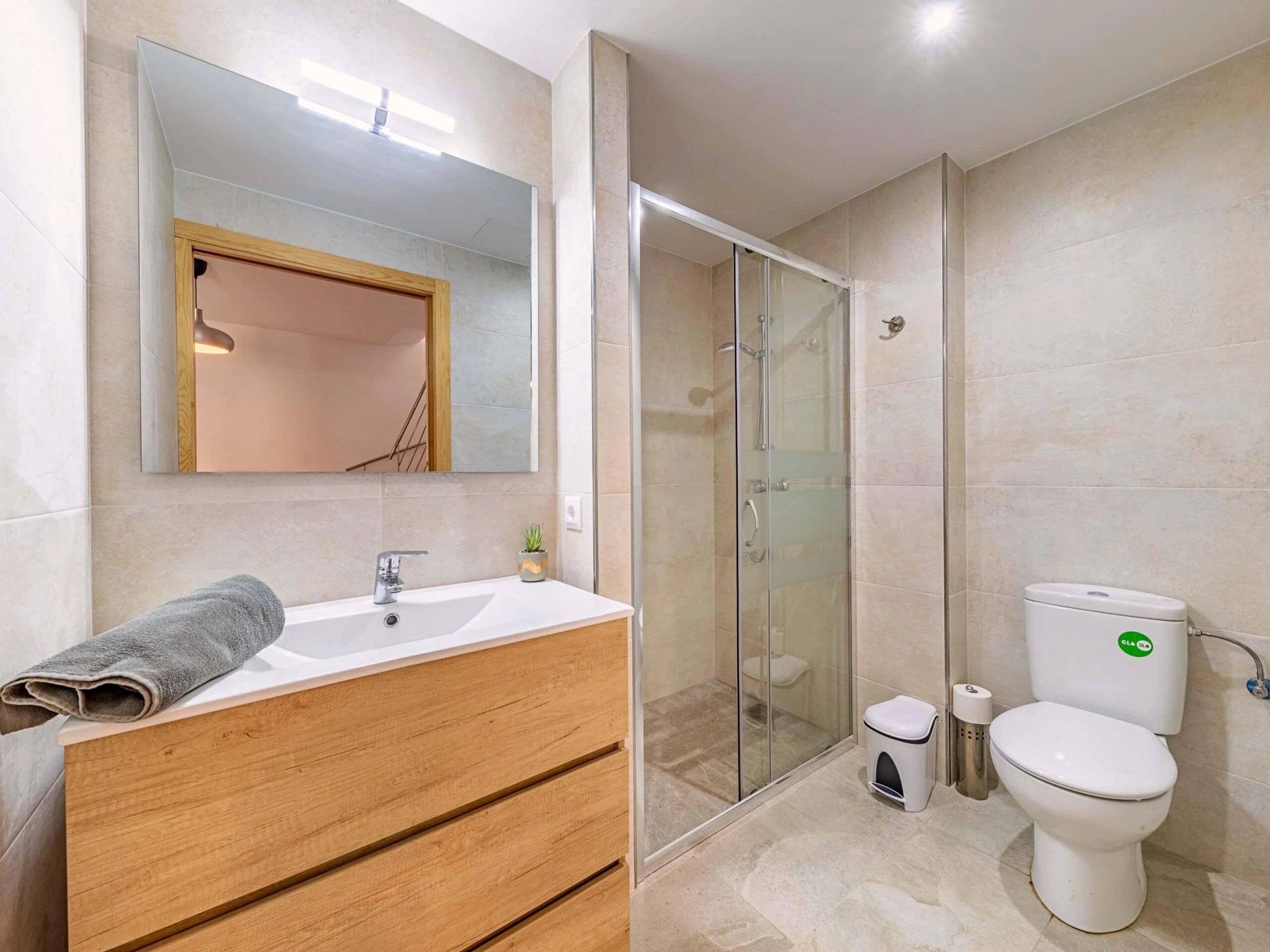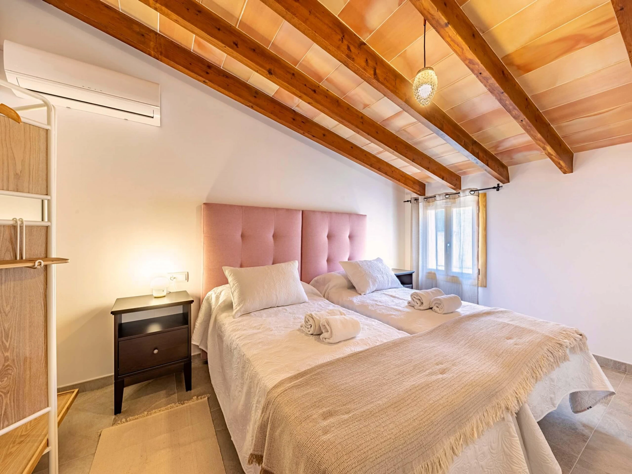 Villa Font 39, a cosy refuge in the heart of Campanet, is a charming village house with a private pool, located in a privileged location in the traditional village of Campanet, in the centre of Mallorca. This villa has been completely restored to offer a unique holiday experience, surrounded by the peace and traditions of an authentic village. Perfect for those seeking to disconnect from stress and enjoy a Mallorcan lifestyle, Font 39 is the ideal destination for a relaxing holiday. With 3 bedrooms and 2 bathrooms, this villa can accommodate up to 6 people. Additionally, shops, restaurants, and local services are just a few steps away. The villa is distributed over two floors, offering elegant and modern interiors, furnished with good taste and equipped with high-end appliances. On the ground floor, you will find a spacious living room with comfortable sofas and TV, a fully equipped kitchen and dining room, as well as a bathroom with a shower. Stairs lead to the first floor, where 3 cosy bedrooms are located: 1 double and 2 single, sharing a family bathroom with a shower. Outside, Font 39 has spacious terraces offering panoramic views of the pool, the village, and the surrounding hills. These terraces are the perfect place to relax outdoors. In addition, guests can enjoy a portable barbecue and a refreshing private pool equipped with sun loungers to rest under the sun.