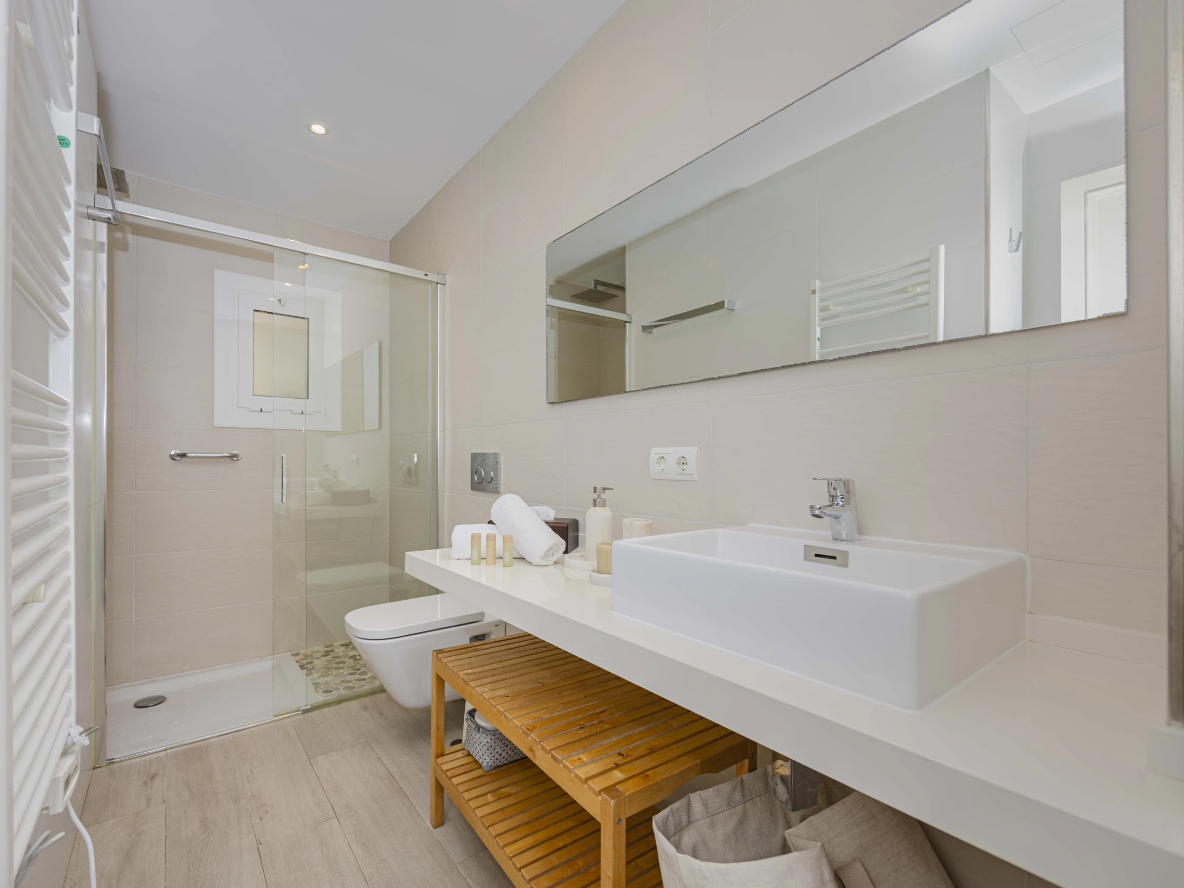 On the first floor, you can find a large area with a dining room for six, a sofa and a Smart TV, a beautiful terrace with garden furniture, ideal for relaxing at sunset. In the left area we have a newly renovated bathroom and a fully equipped kitchen and a large terrace with an outdoor table and BBQ.