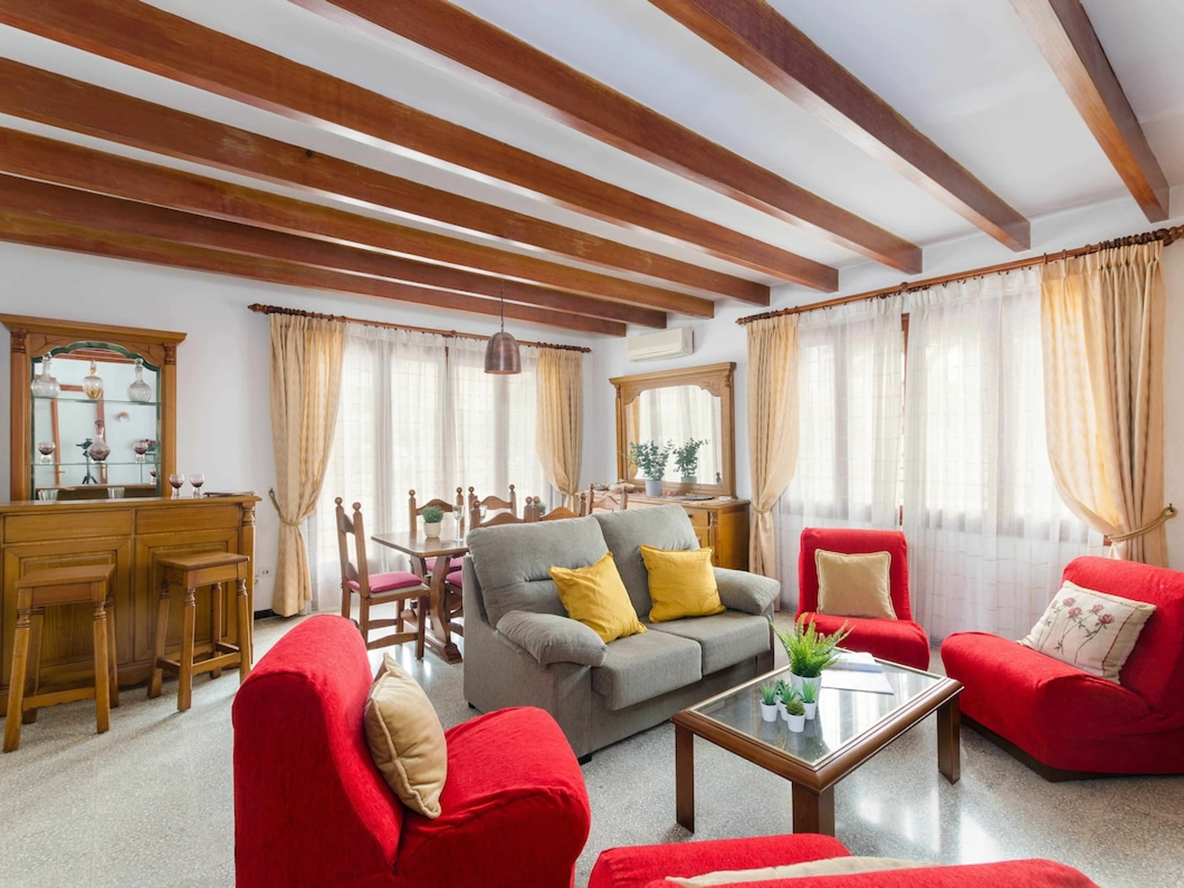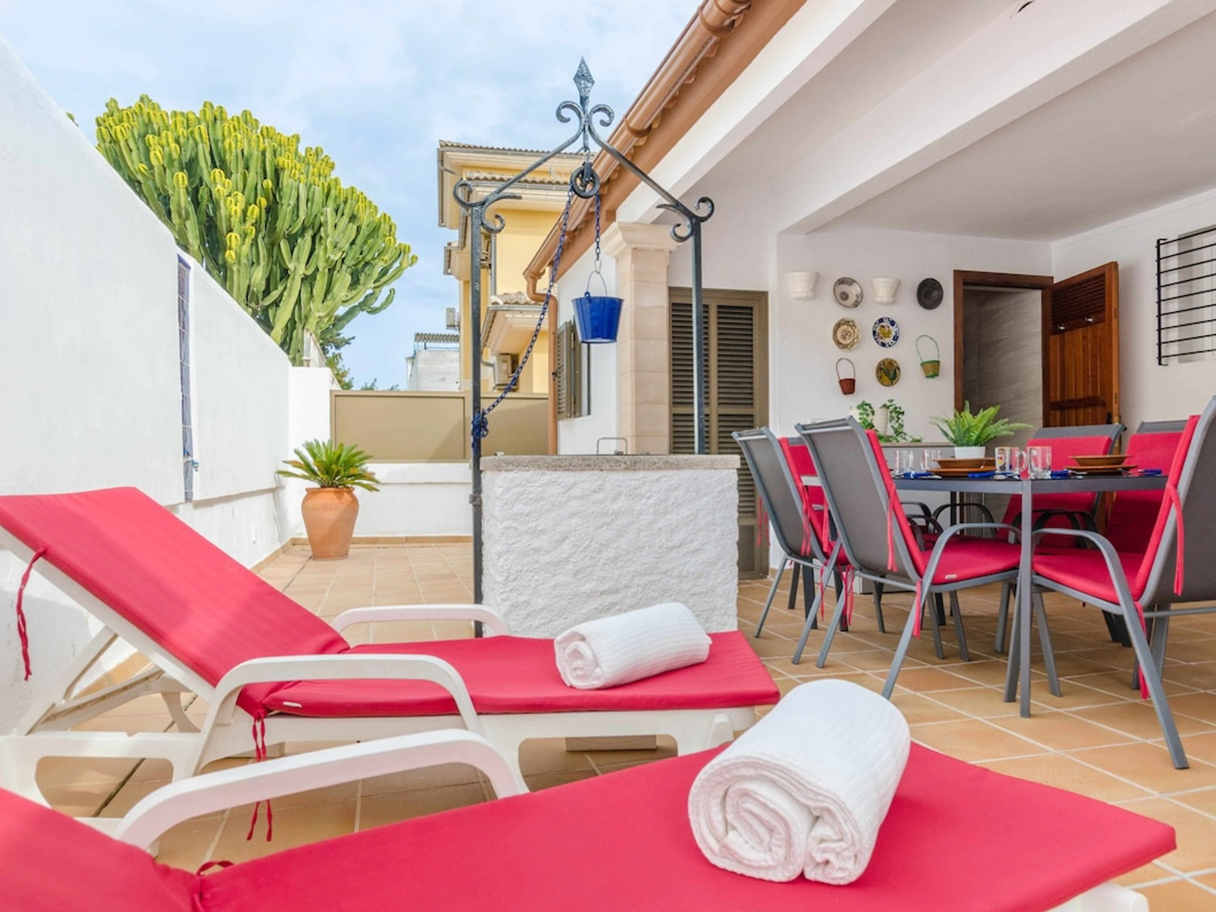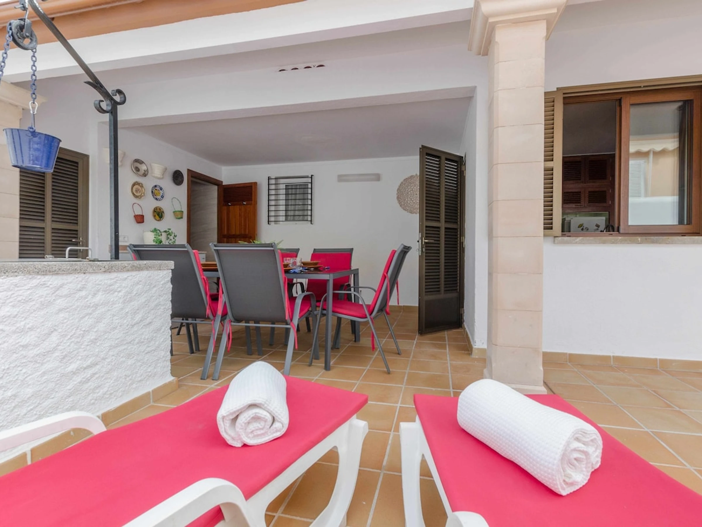 This chalet is located 3 minutes walking from the beach and is perfect for enjoying unforgettable holidays of sun and sea. Can Picafort offers various catering, shopping and leisure services for both adults and children. In addition to the fine sandy beach that extends several kilometres to Puerto de Alcúdia, Can Picafort is situated between two natural parks, S'Albufera and Son Real, so you can enjoy activities such as hiking or Nordic walking, horse rides through dune forests and pine woods. We also recommend visiting the old town of Alcúdia or playing golf in l'Alcanada.