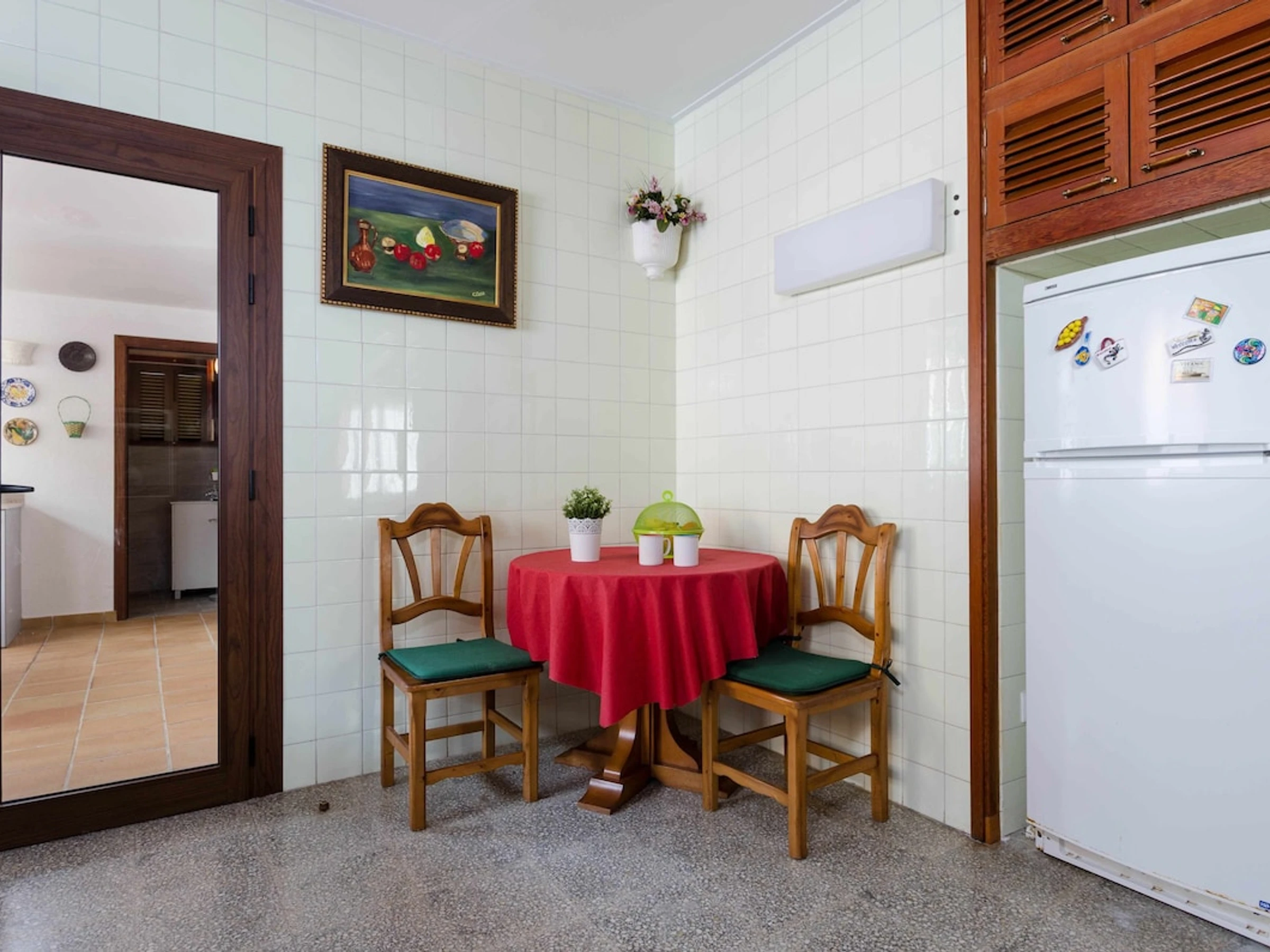 The kitchen is equipped with a ceramic hob, electric oven, dishwasher, fridge and complete kitchenware to cook during your stay.