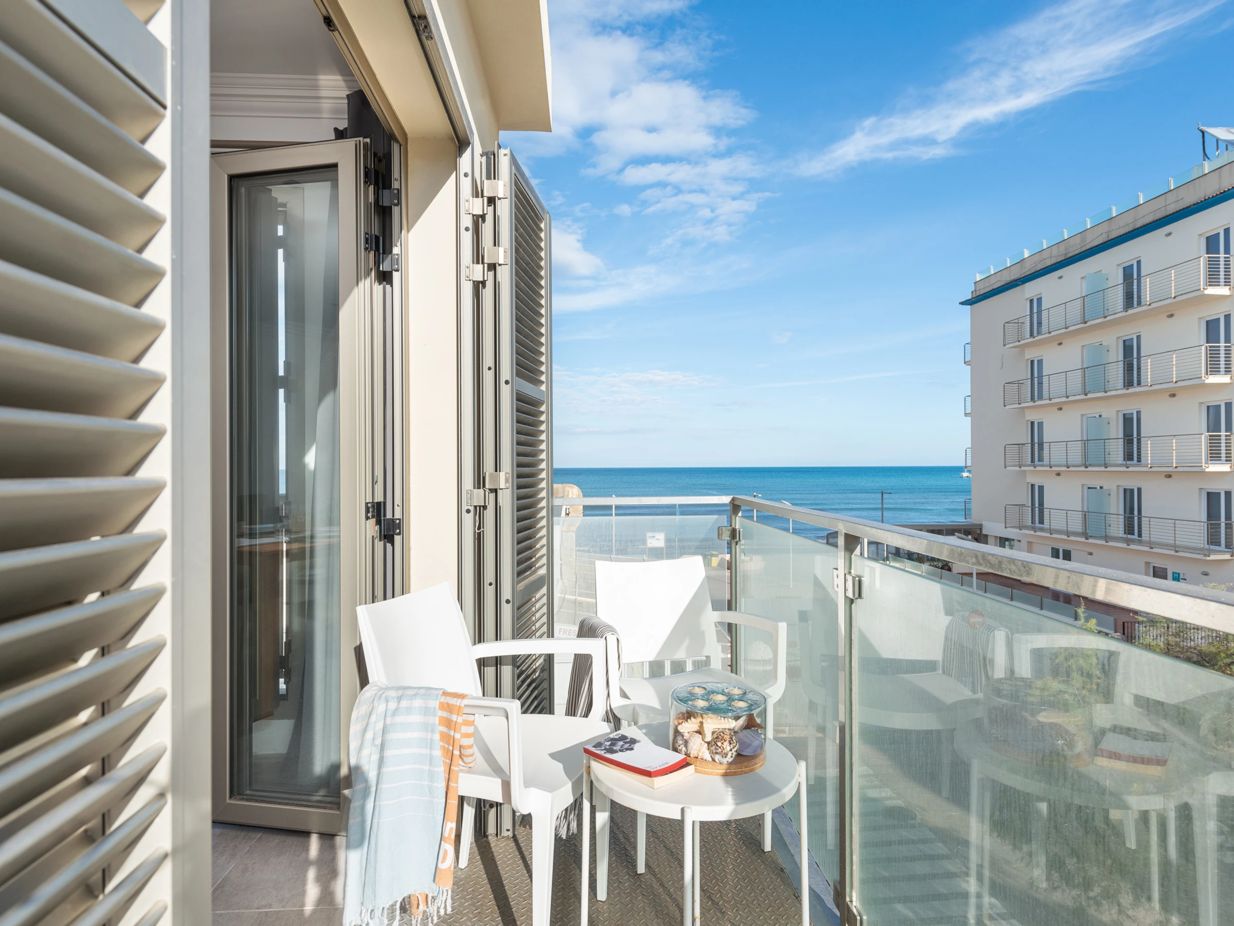 The accommodation is very comfortable, air conditioning in the living room and bedrooms, well-equipped kitchen, two bathrooms, sea views and a perfect location.