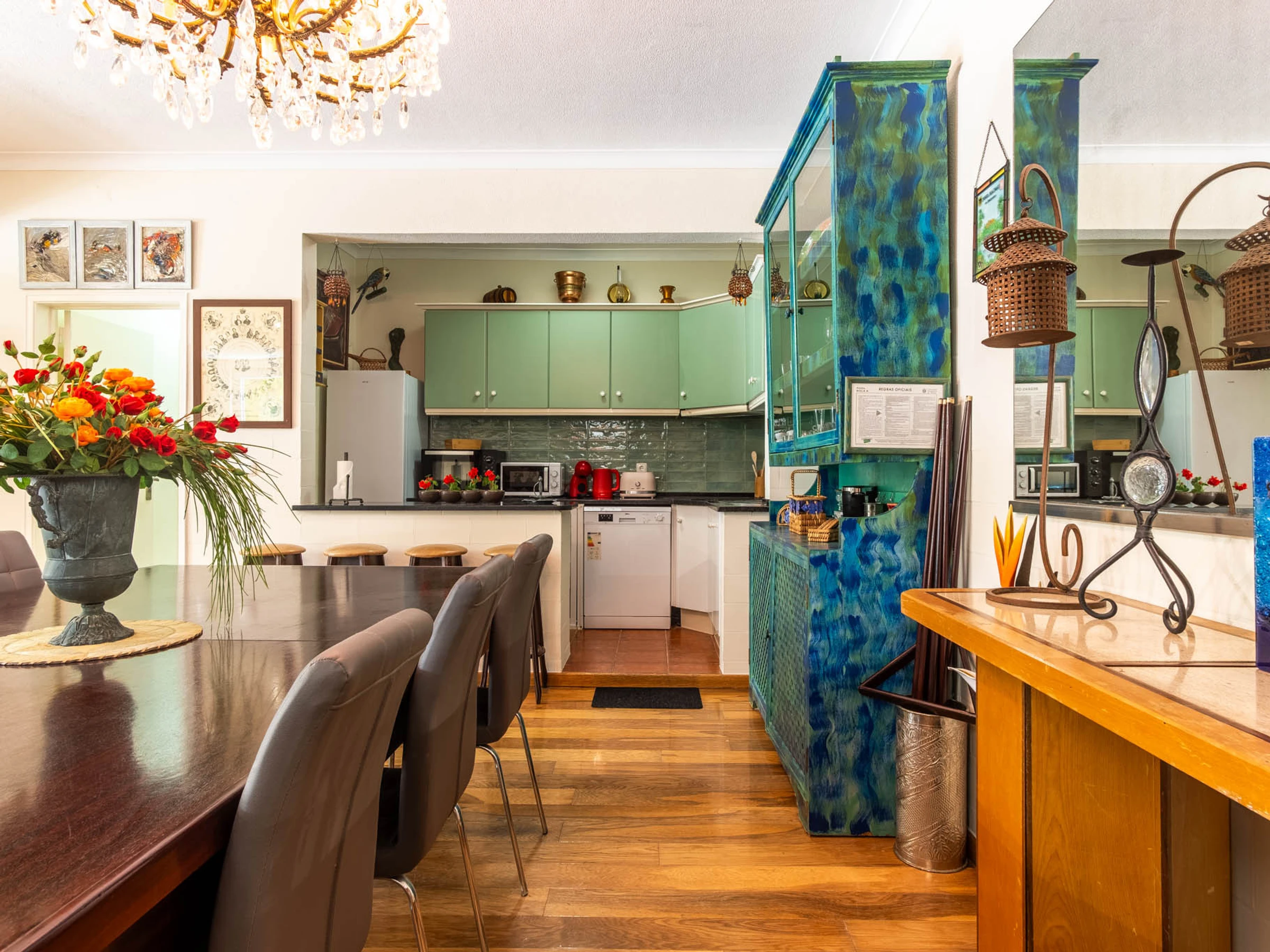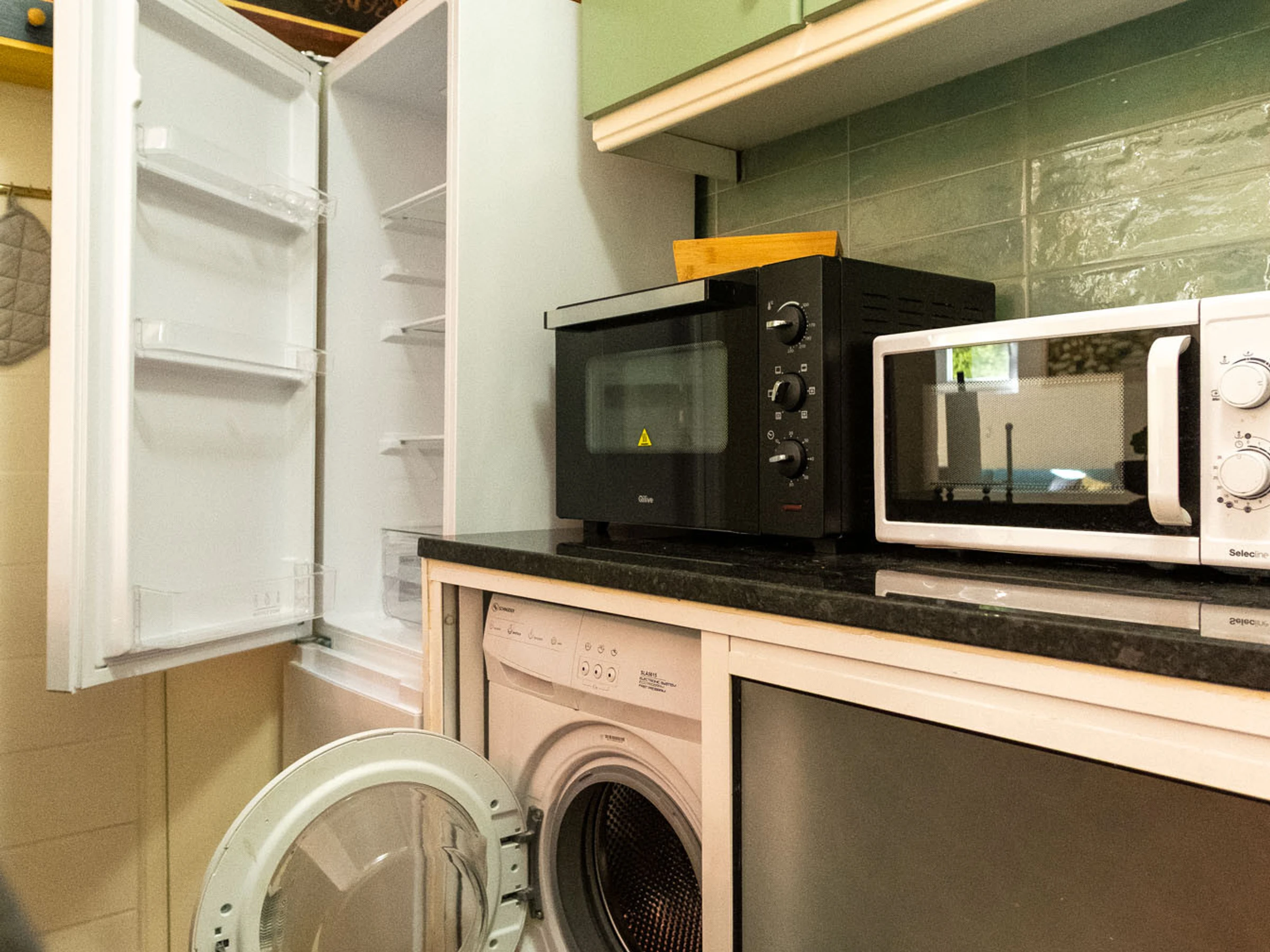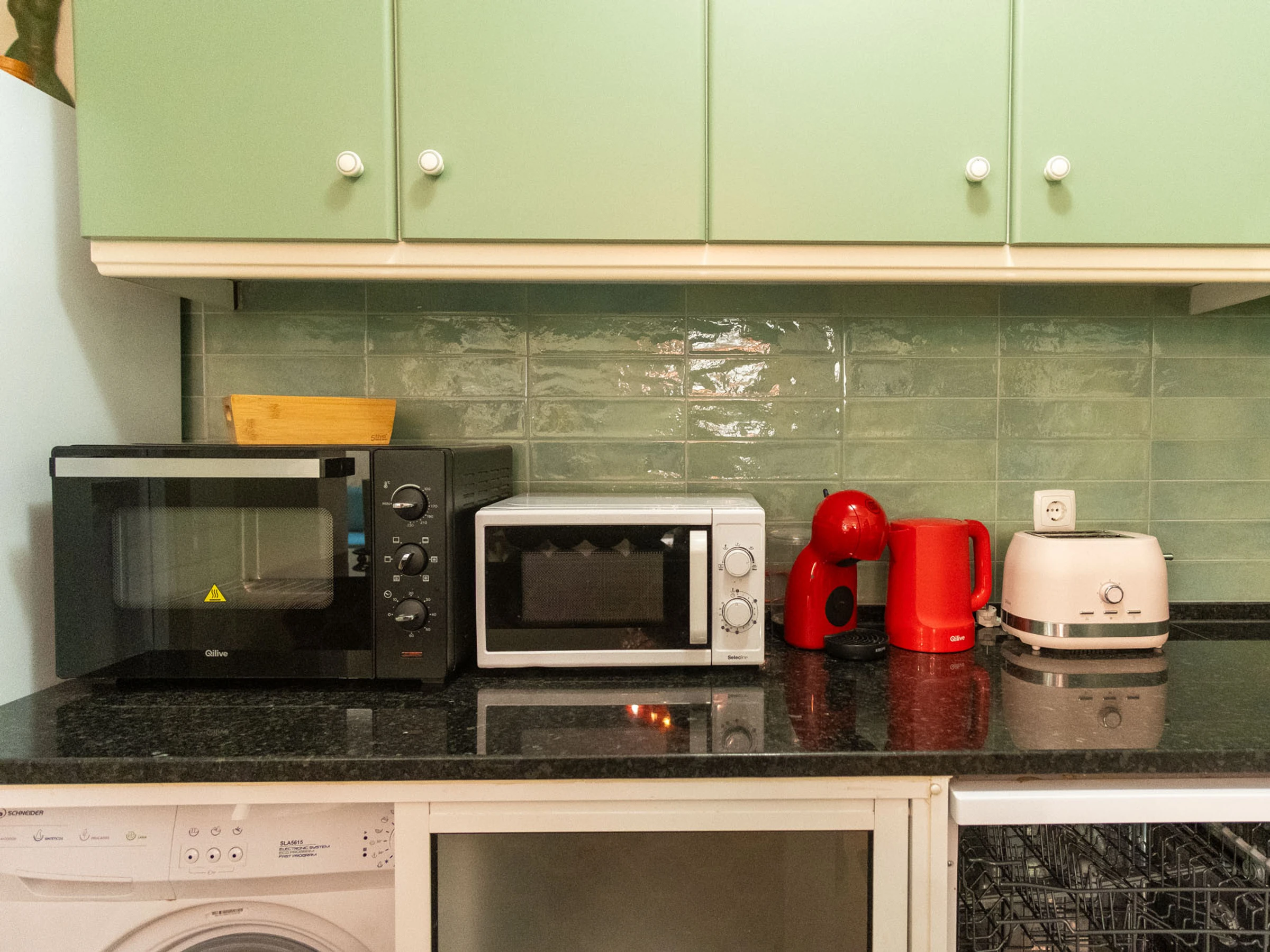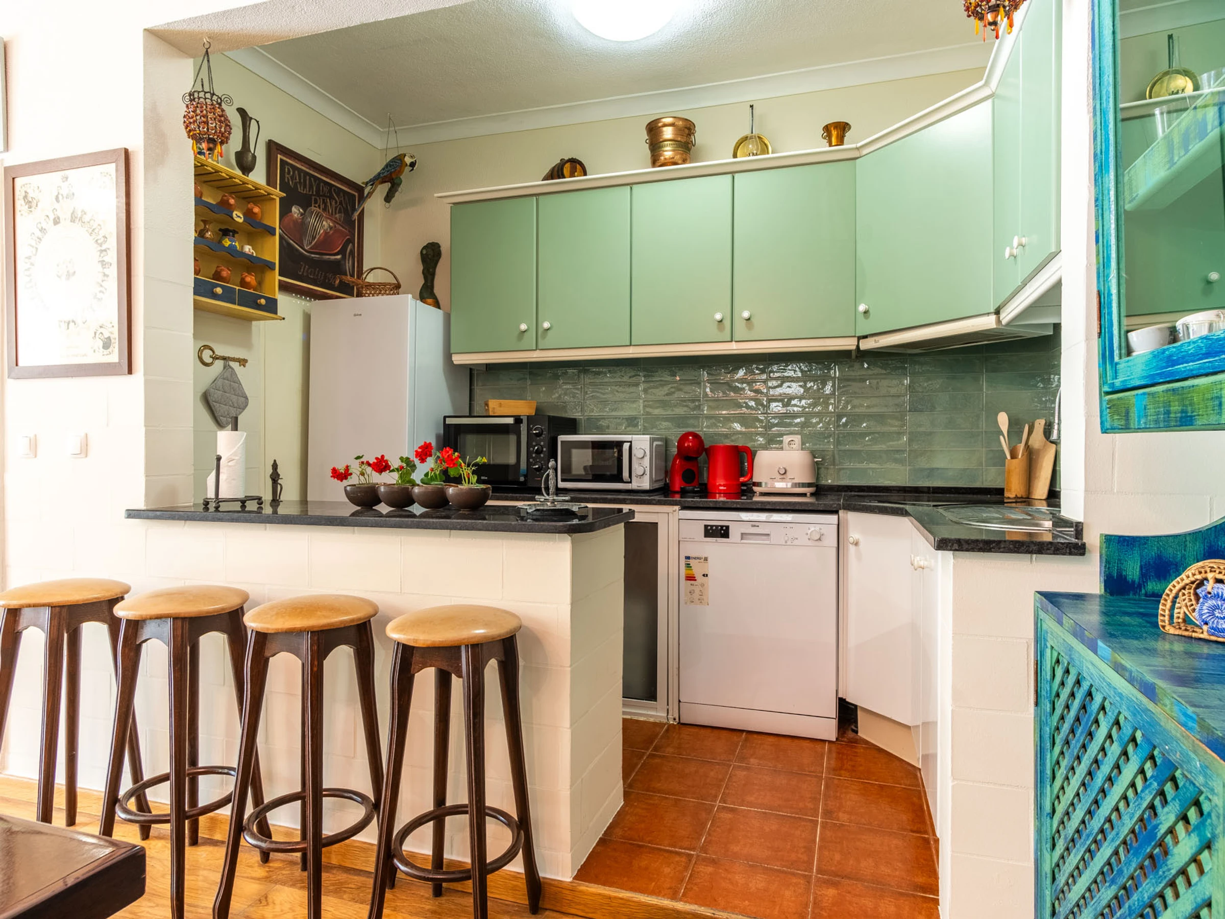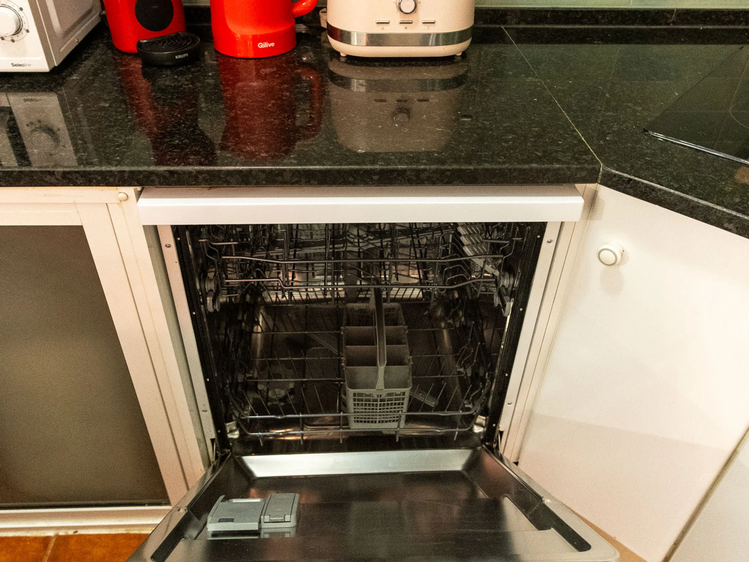 The kitchen, is equipped with refrigerator, microwave, oven, freezer, dishwasher, dishes/cutlery, kitchen utensils, coffee machine, toaster, kettle and juicer.