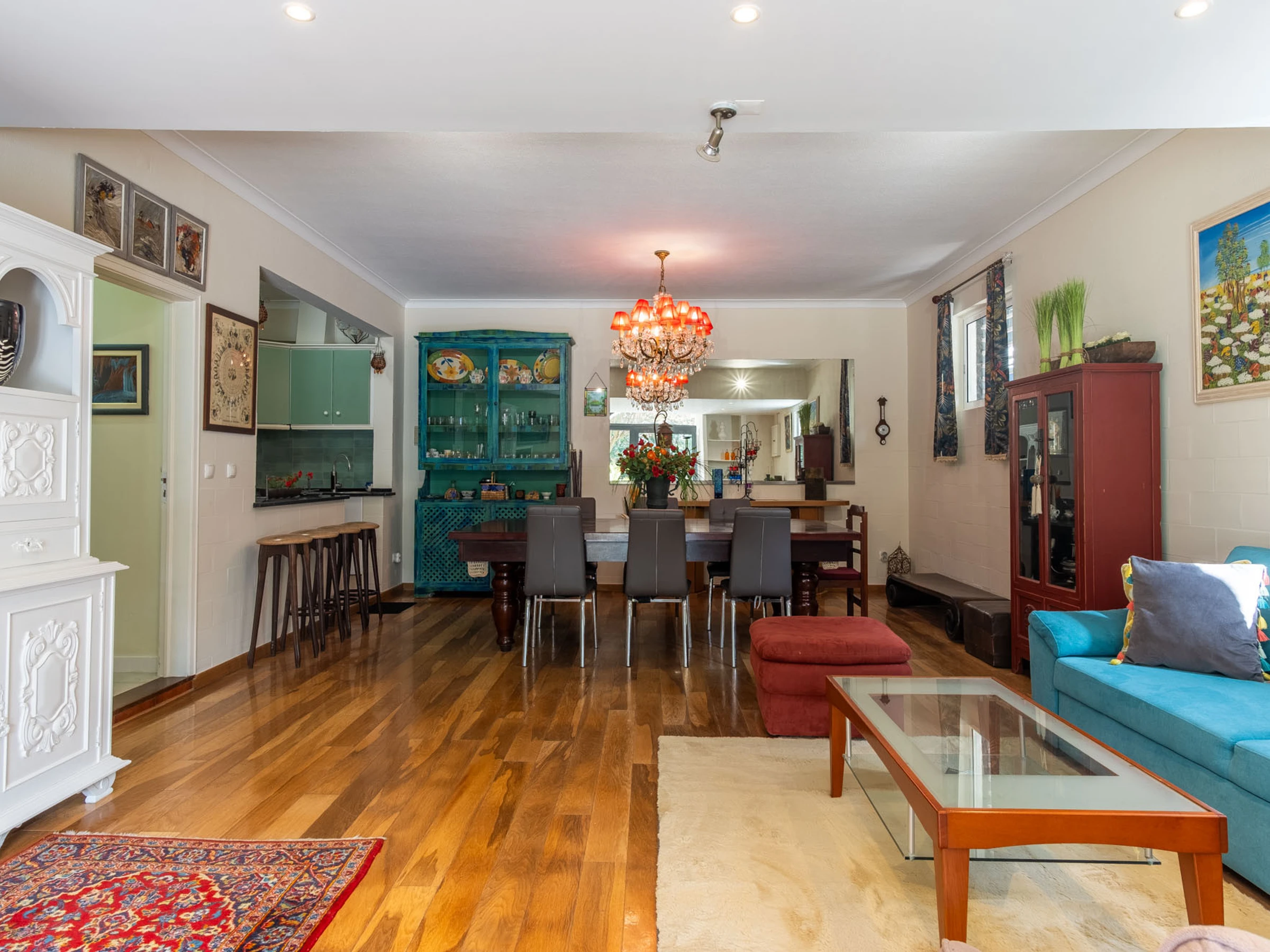 The apartment in Cascais has 3 bedrooms and capacity for 6 people.