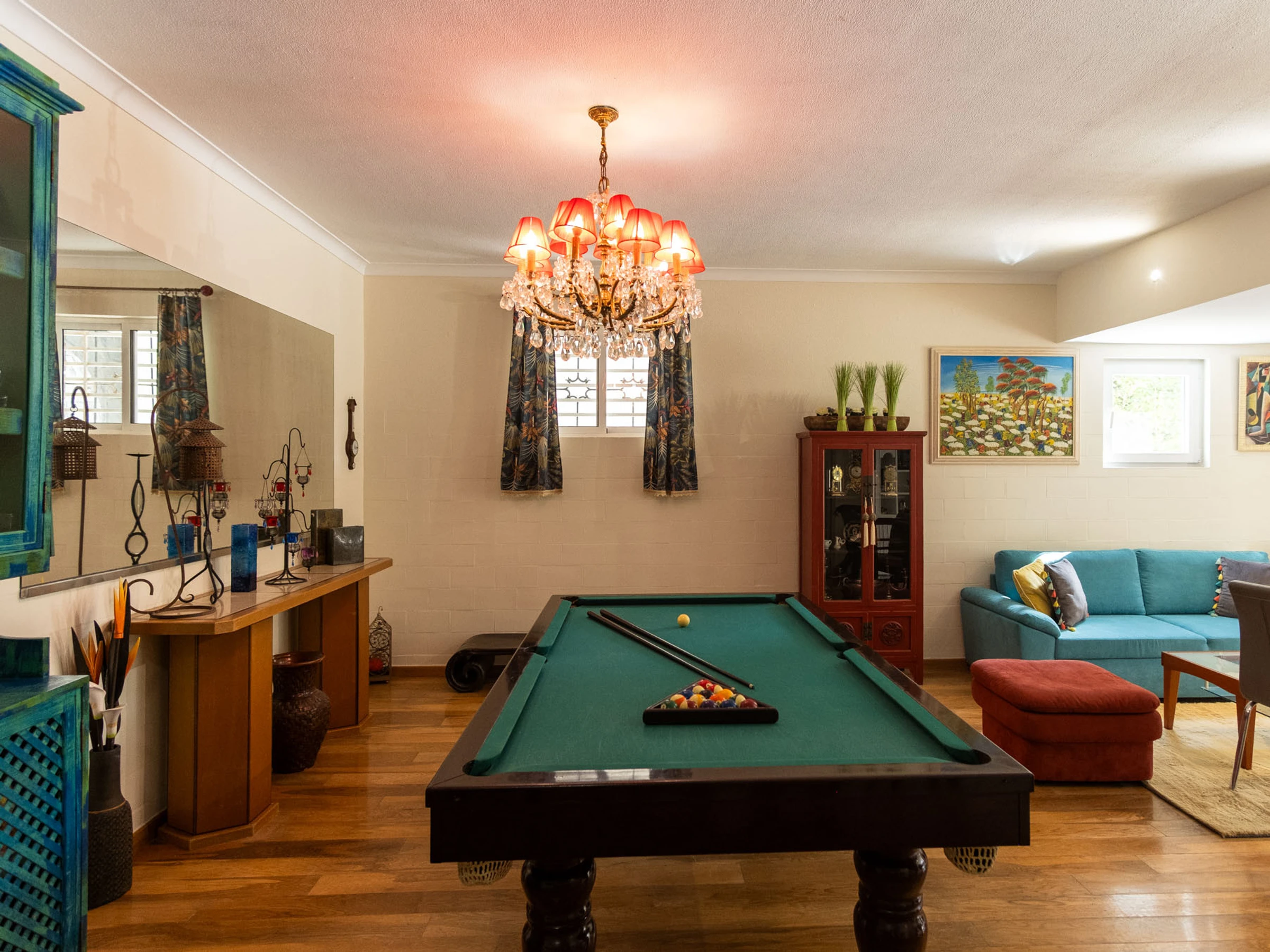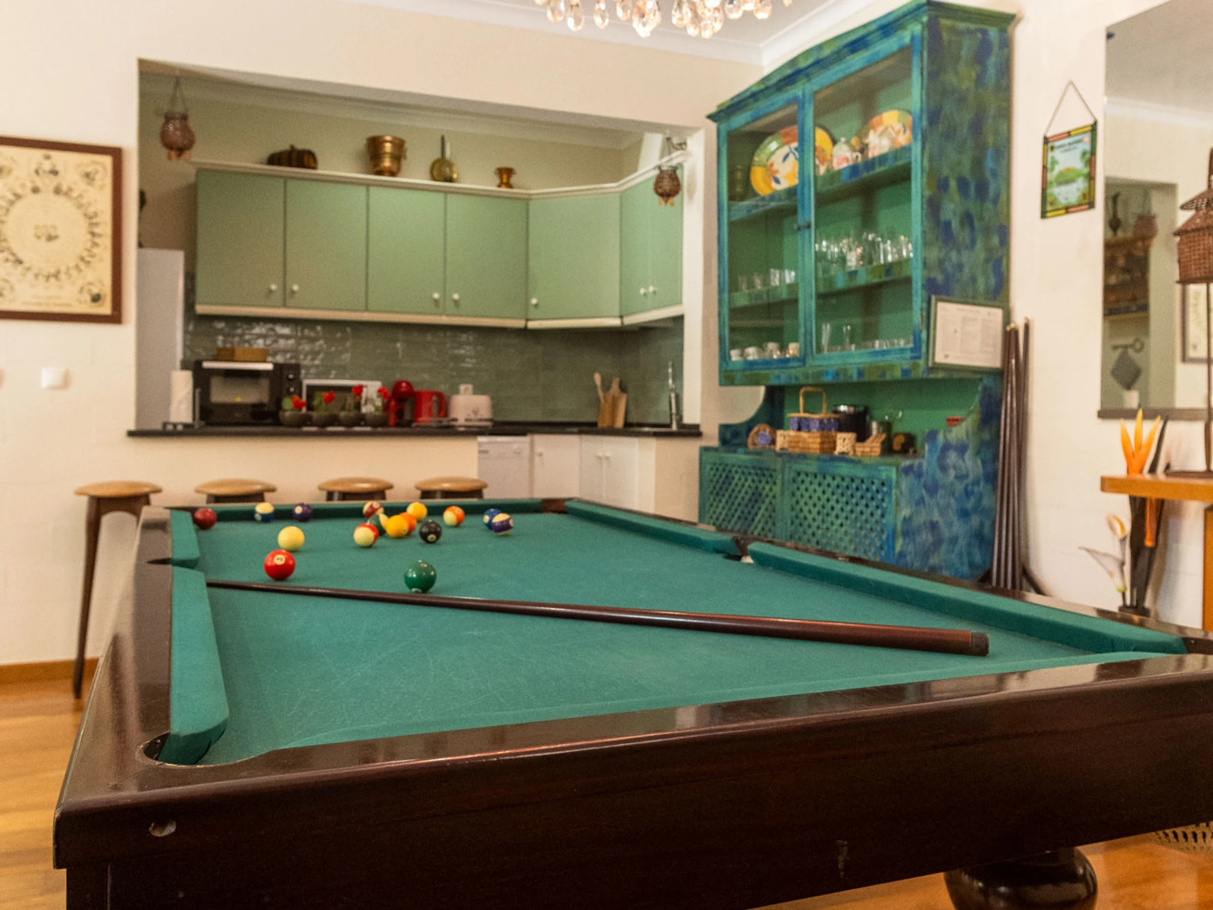The accommodation is equipped with the following items: garden, garden furniture, fenced garden, washing machine, barbecue, iron, internet (Wi-Fi), hair dryer, electric heating, swimming pool private, open-air parking in the same building, 3 fans, 1 TV.