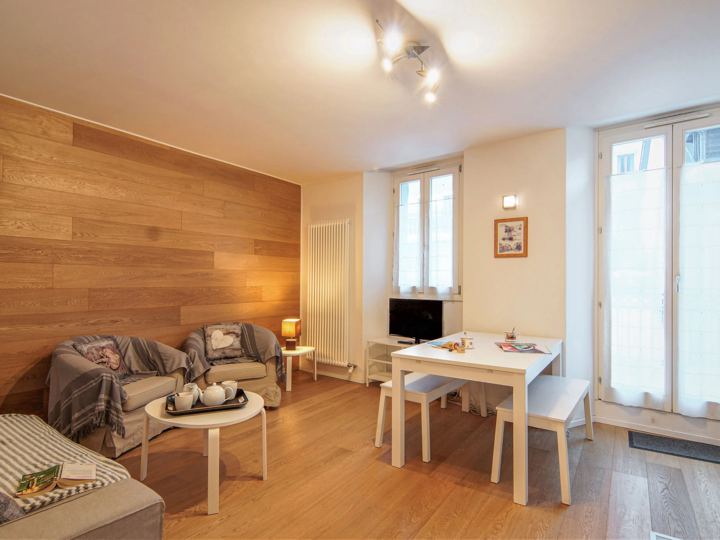 Residence "Le Paccard", 5 storeys. In the centre, in a pedestrian area. In the complex: lift, central heating system. Public car park at 450 m. Supermarket 20 m, bar, bakery 5 m, café, bus stop 200 m, railway station "chamonix Mont-Blanc" 500 m. Golf course (18 hole) 3.2 km, tennis 1 km, sports centre 800 m, skisport facilities 1 km, ski bus stop 200 m, ski school 450 m, cross country ski track 900 m, ice rink 800 m. Nearby attractions: Téléphérique de l'Aiguille du Midi 600 m, Train du Montenvers Mer de Glace 1.2 km.