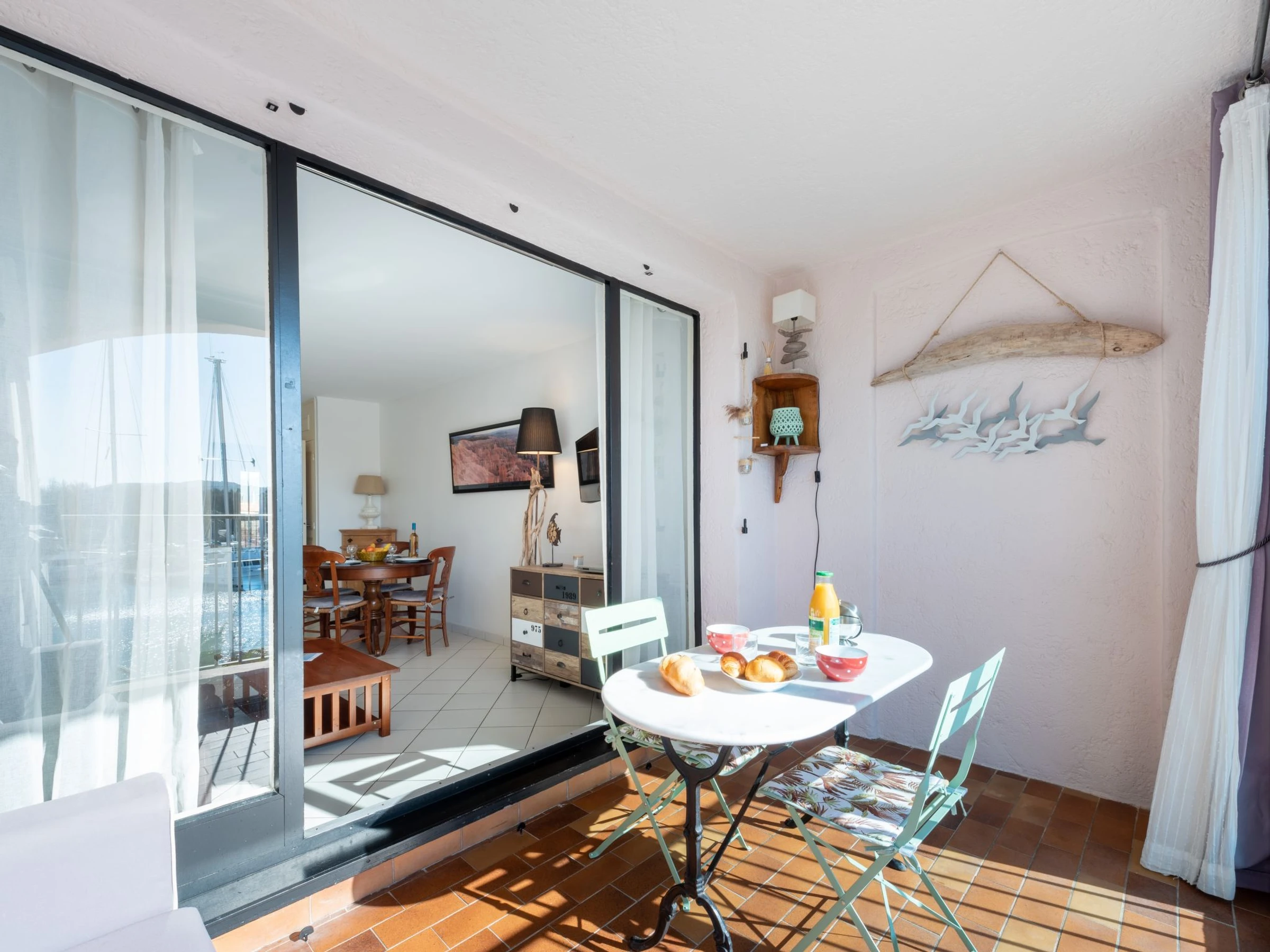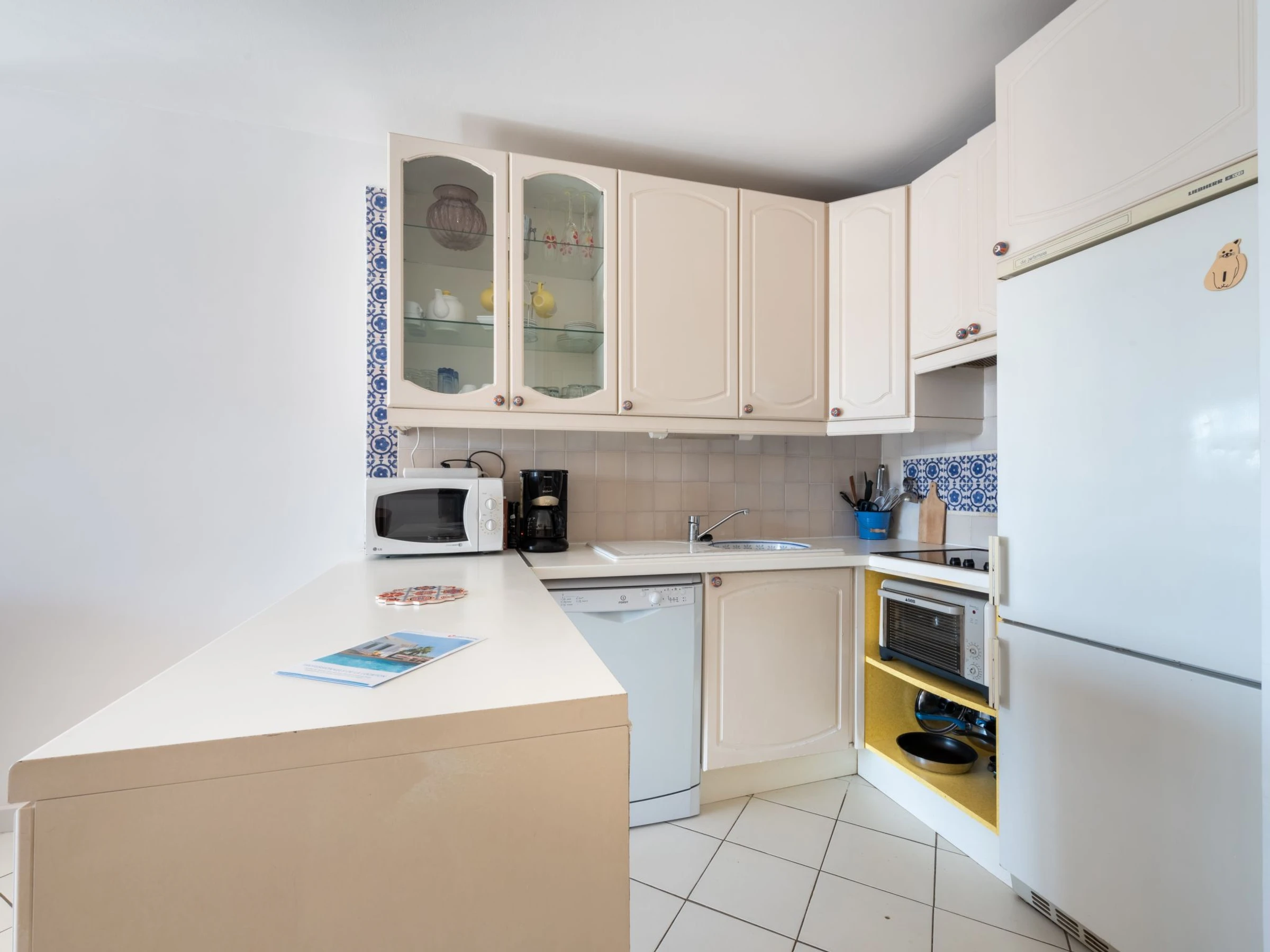 "Les Cascadelles 13", 2-room apartment 47 m2 on 2nd floor. Beautiful furnishings: living/dining room with 1 double sofabed (140 cm, length 190 cm), TV (flat screen). Exit to the loggia. 1 room with 1 bed (80 cm, length 190 cm), 1 french bed (160 cm, length 200 cm). Exit to the balcony. Kitchenette (mini-oven, dishwasher, 4 ceramic glass hob hotplates, toaster, kettle, microwave, freezer, electric coffee machine). Shower, sep. WC. Electric heating. Balcony 2 m2. Beautiful view of the port. Facilities: washing machine, iron, hair dryer. Internet (WiFi, extra). Please note: non-smoking house. Maximum 1 small pet/ dog allowed. Smoke alarm.