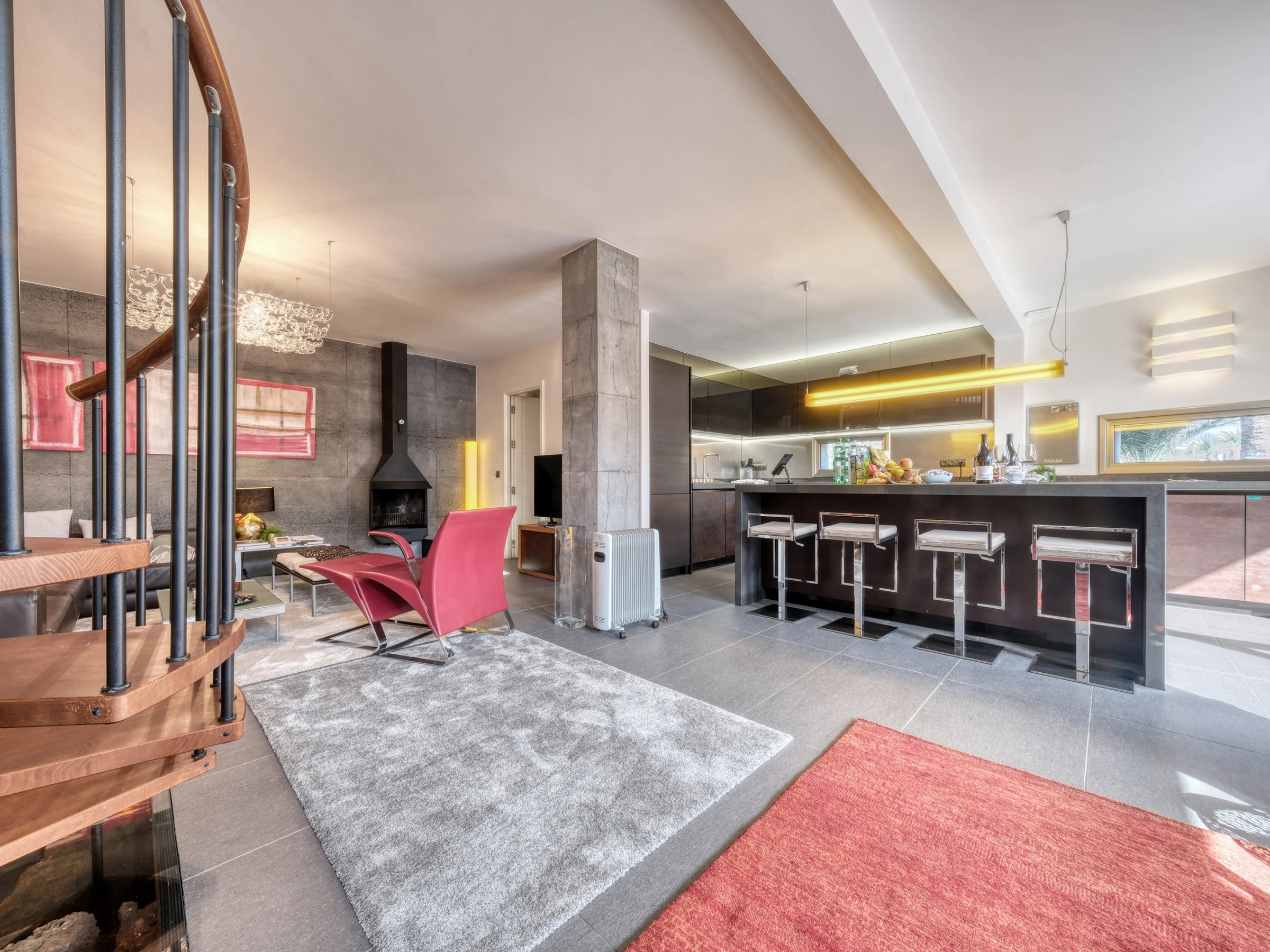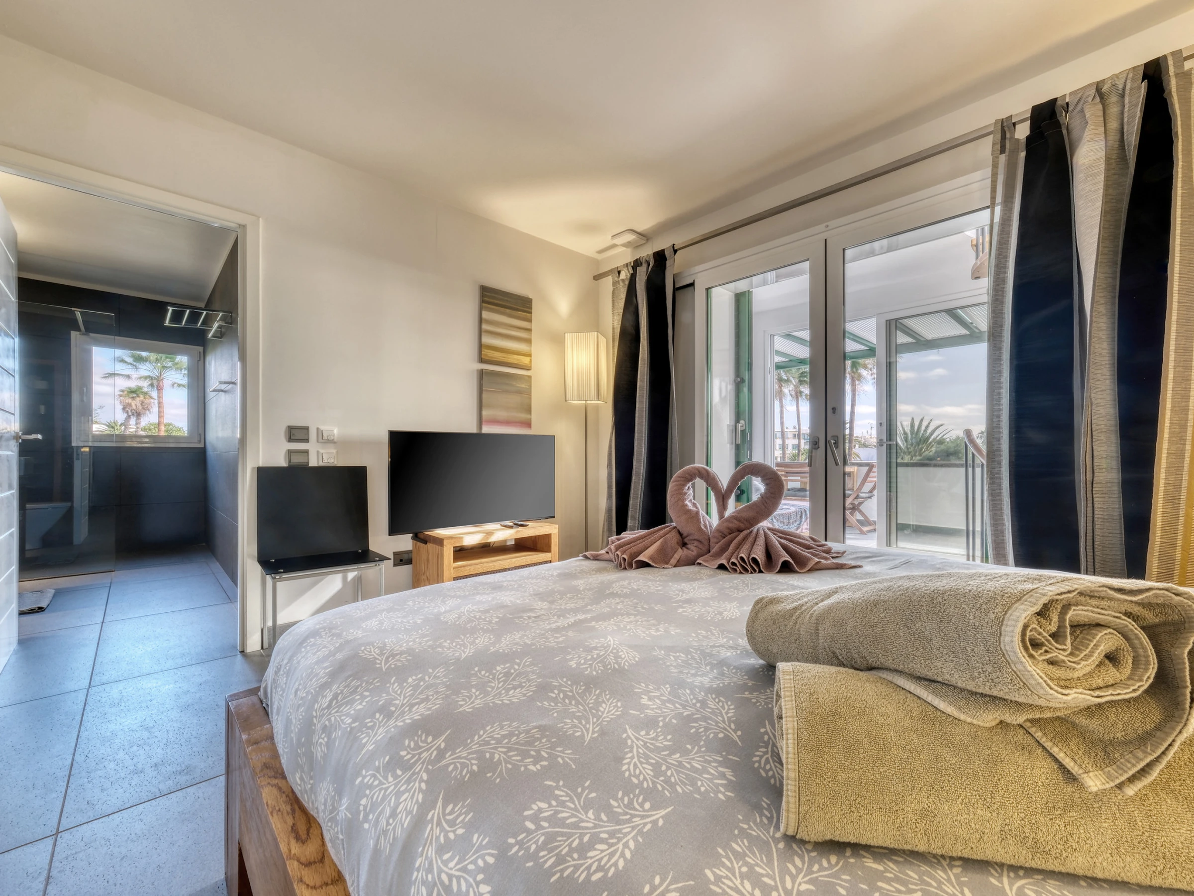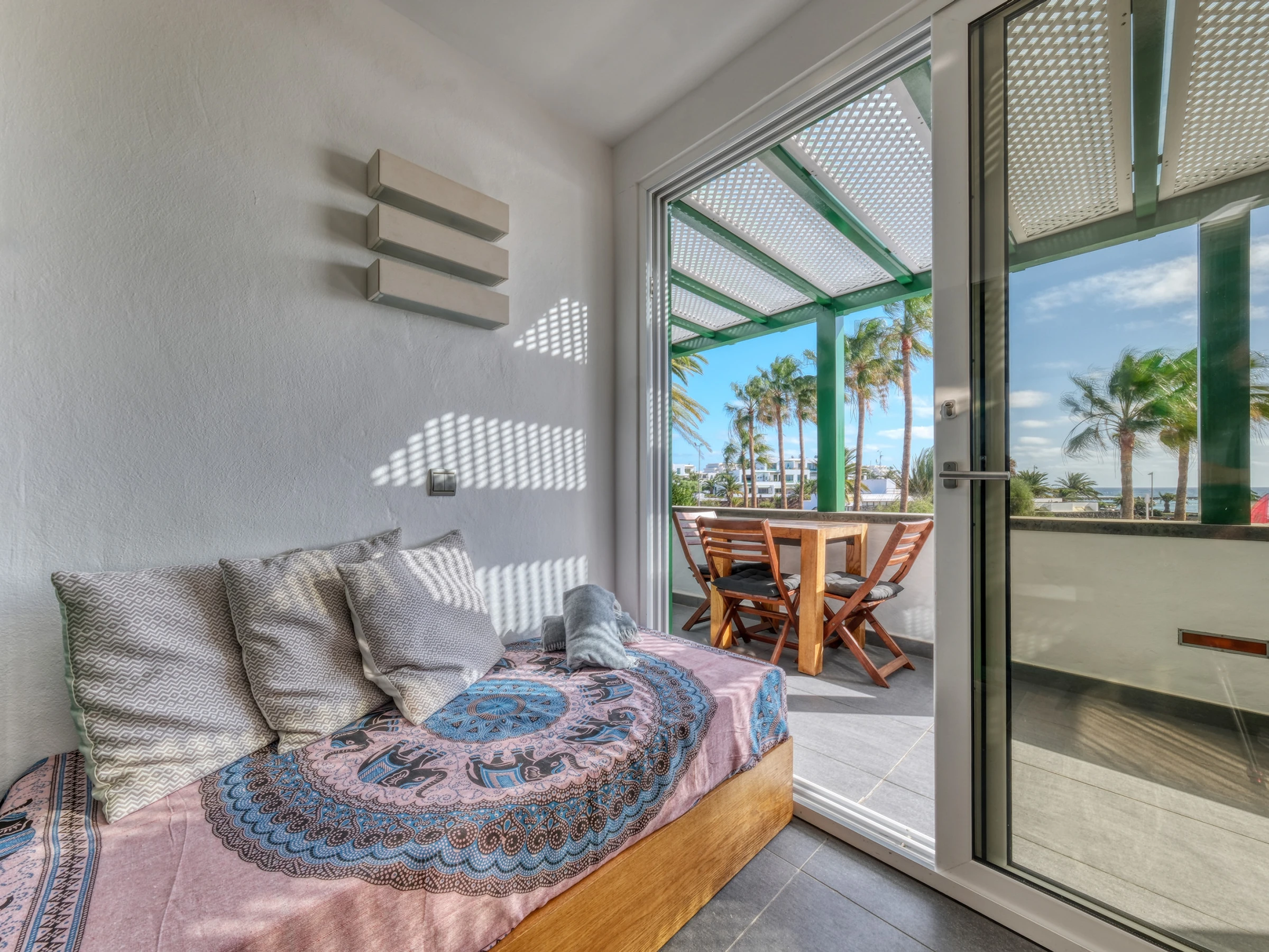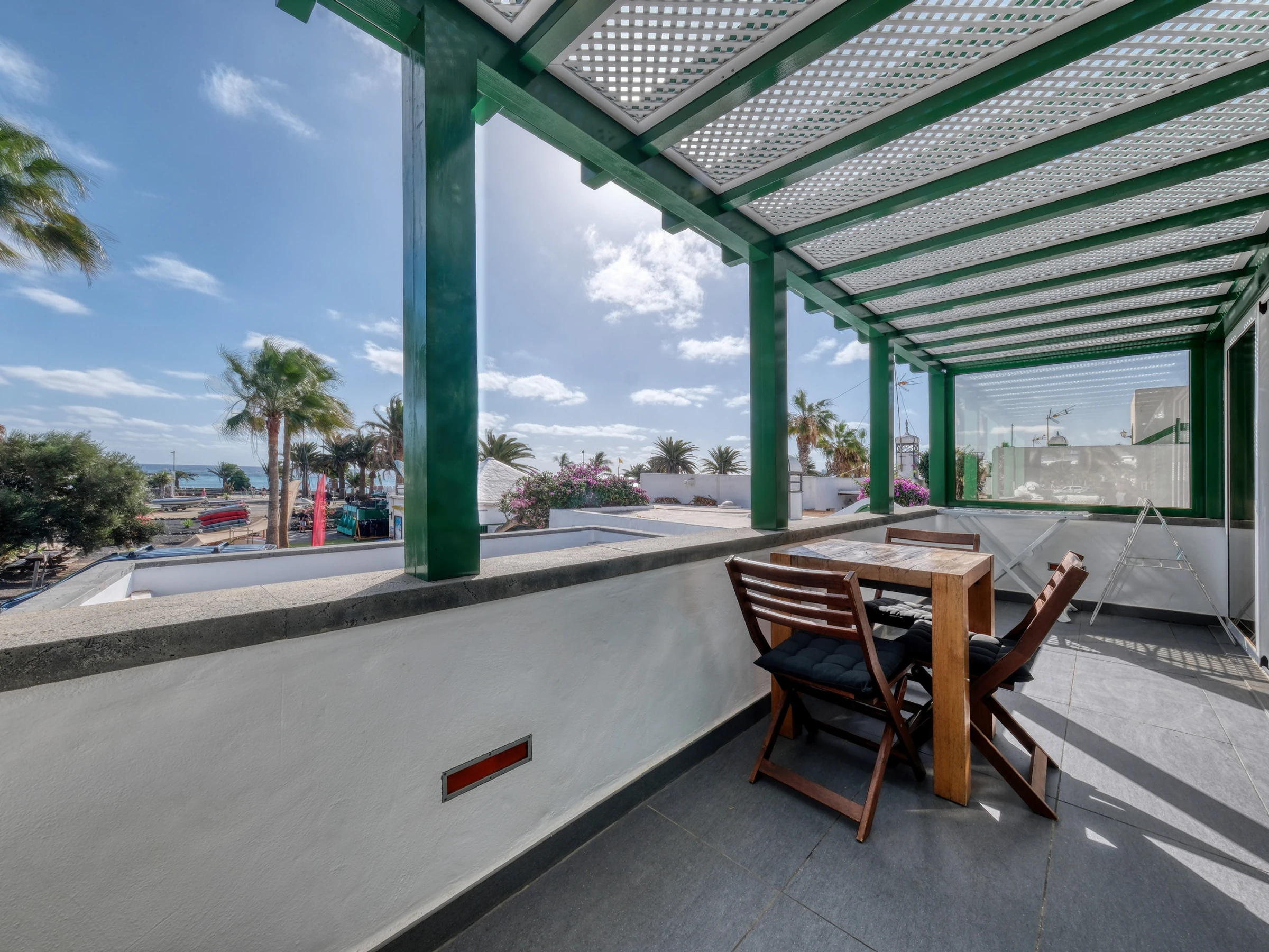 Casita Malvika is an exclusive and charming sea-view apartment located on the beachfront. Casita Malvika combines luxury, comfort and modern design in a privileged setting, just a few steps from the ocean and in a quiet area ideal for relaxation. In its surroundings, you will find everything necessary for a perfect stay: supermarkets, restaurants, leisure areas and ample parking available. Distributed over two open floors, this bright dwelling offers direct access from the ground floor to a pleasant terrace equipped with a comfortable outdoor sofa, ideal for relaxing outdoors. On the ground floor, you will also find a bathroom equipped with a washing machine and shower tray. Inside, a spacious American-style living-kitchen stands out, with a flat-screen television, international channels and a fireplace, creating a warm and welcoming atmosphere. The kitchen is fully equipped with an induction hob, oven, microwave, coffee maker, and all the necessary kitchenware to make you feel at home. Casita Malvika has two elegant bedrooms with double beds and flat-screen televisions with international channels. Both bedrooms share a modern bathroom with a shower tray and hairdryer. On the upper floor, you will find a fantastic terrace with privileged views of Las Cucharas beach, equipped with a table and sofa that invite relaxation. Casita Malvika is the ideal place to disconnect and enjoy unforgettable holidays in an idyllic setting, with all the comforts and convenience of your own home. Bed linen and towels are included for your stay.