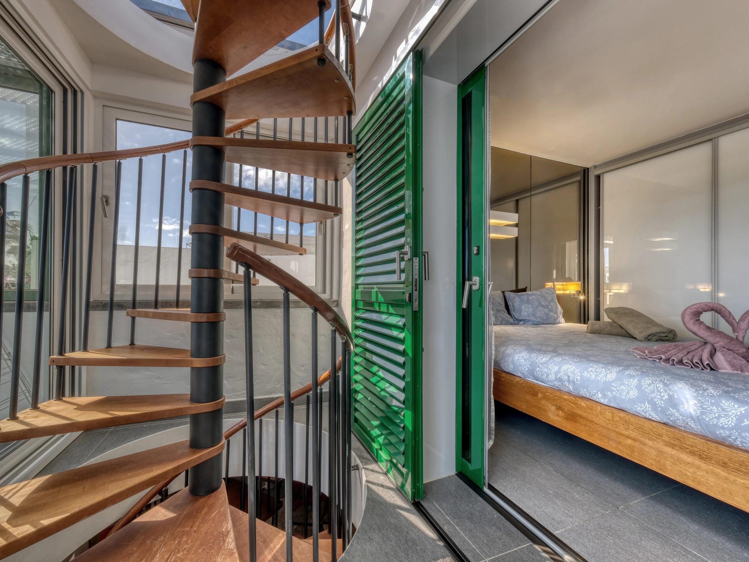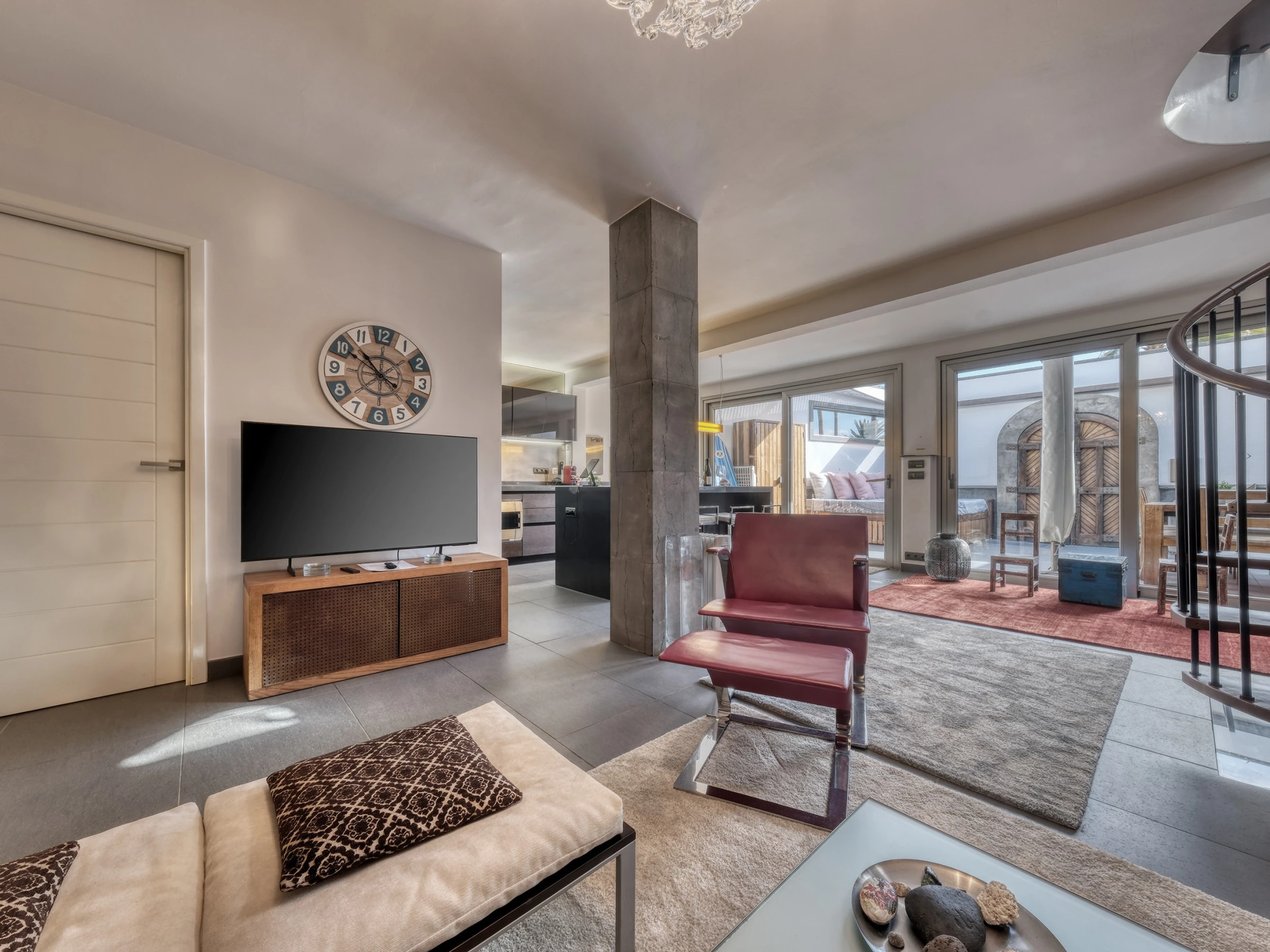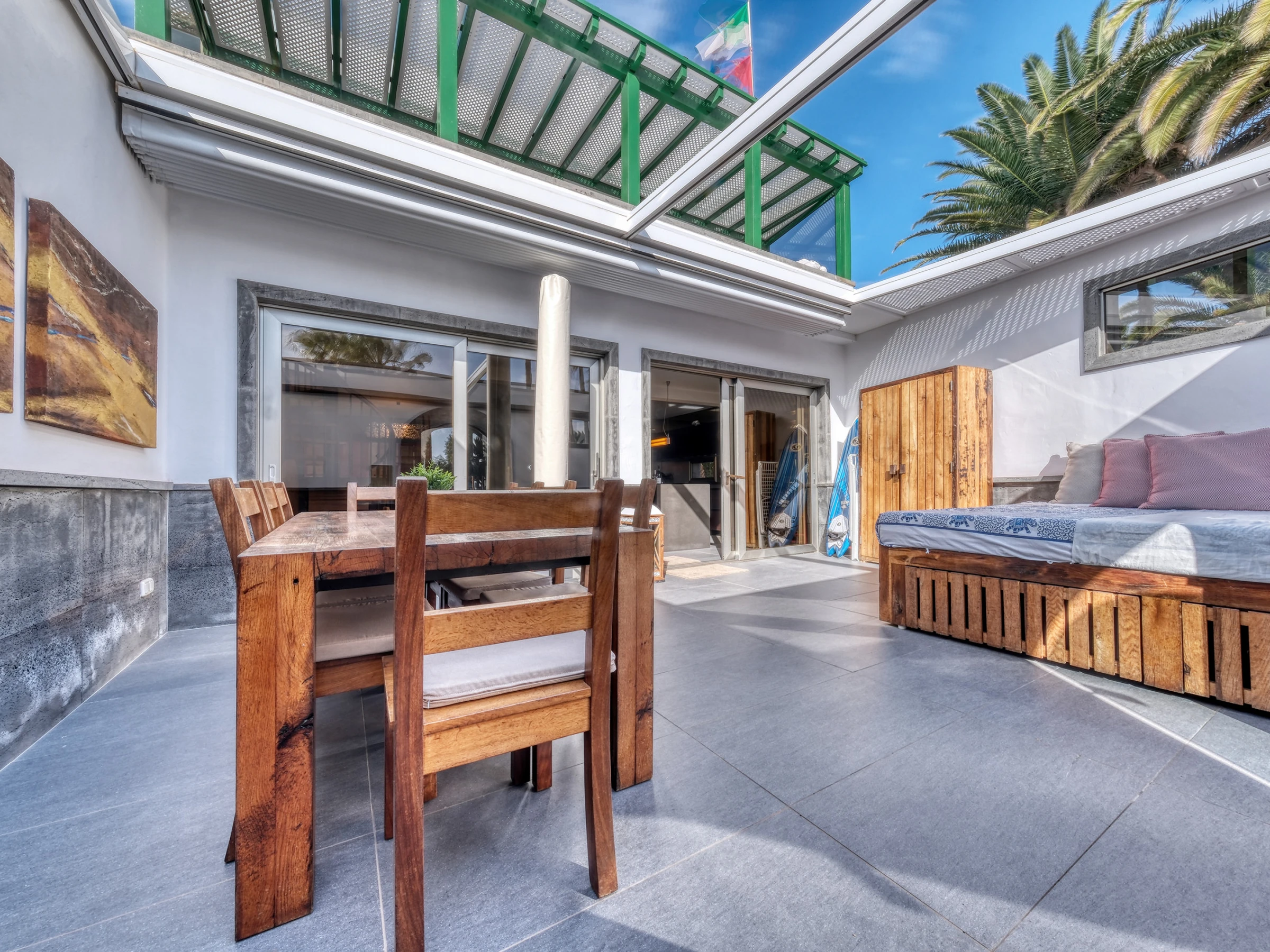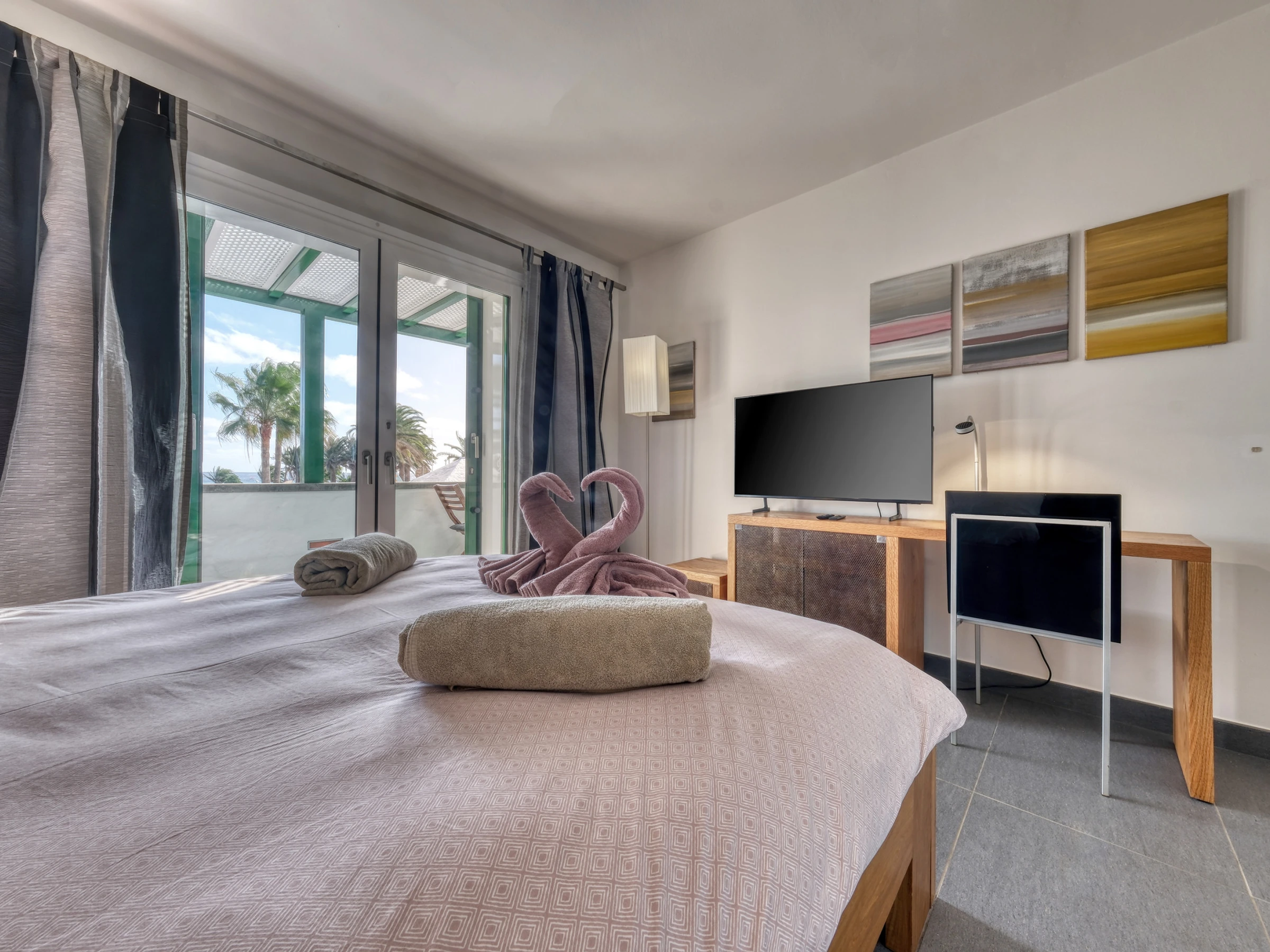 Casita Malvika is an exclusive and charming sea-view apartment located on the beachfront. Casita Malvika combines luxury, comfort and modern design in a privileged setting, just a few steps from the ocean and in a quiet area ideal for relaxation. In its surroundings, you will find everything necessary for a perfect stay: supermarkets, restaurants, leisure areas and ample parking available. Distributed over two open floors, this bright dwelling offers direct access from the ground floor to a pleasant terrace equipped with a comfortable outdoor sofa, ideal for relaxing outdoors. On the ground floor, you will also find a bathroom equipped with a washing machine and shower tray. Inside, a spacious American-style living-kitchen stands out, with a flat-screen television, international channels and a fireplace, creating a warm and welcoming atmosphere. The kitchen is fully equipped with an induction hob, oven, microwave, coffee maker, and all the necessary kitchenware to make you feel at home. Casita Malvika has two elegant bedrooms with double beds and flat-screen televisions with international channels. Both bedrooms share a modern bathroom with a shower tray and hairdryer. On the upper floor, you will find a fantastic terrace with privileged views of Las Cucharas beach, equipped with a table and sofa that invite relaxation. Casita Malvika is the ideal place to disconnect and enjoy unforgettable holidays in an idyllic setting, with all the comforts and convenience of your own home. Bed linen and towels are included for your stay.