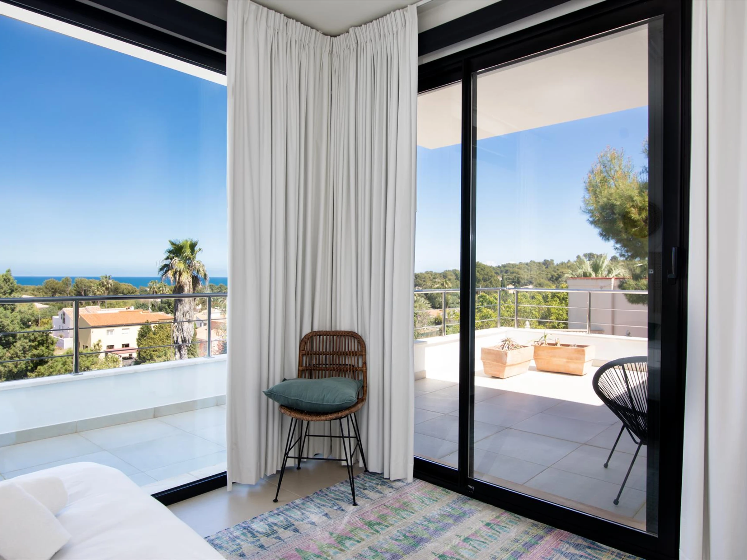 * Bedroom with large double bed, air conditioning, sea view and access to the