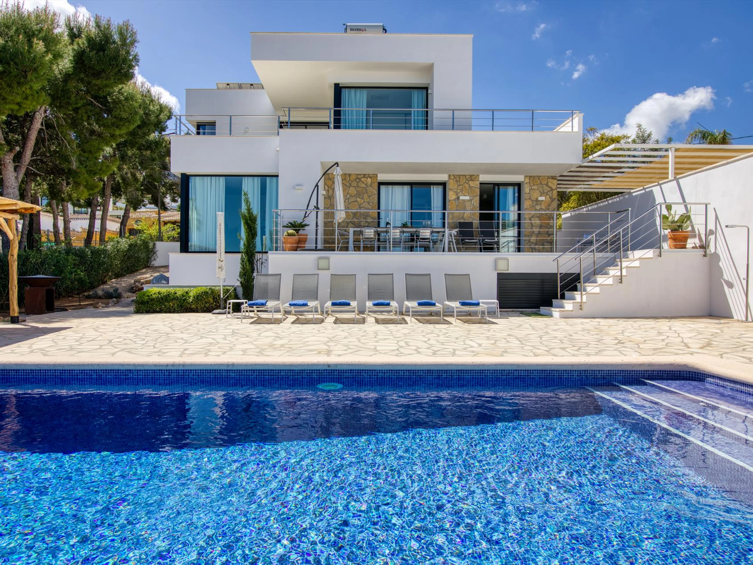Modern holiday villa, recently new built in 2017, with private pool in Denia, on the Spanish Costa Blanca, not far from the harbour and the beach Marineta Cassiana.