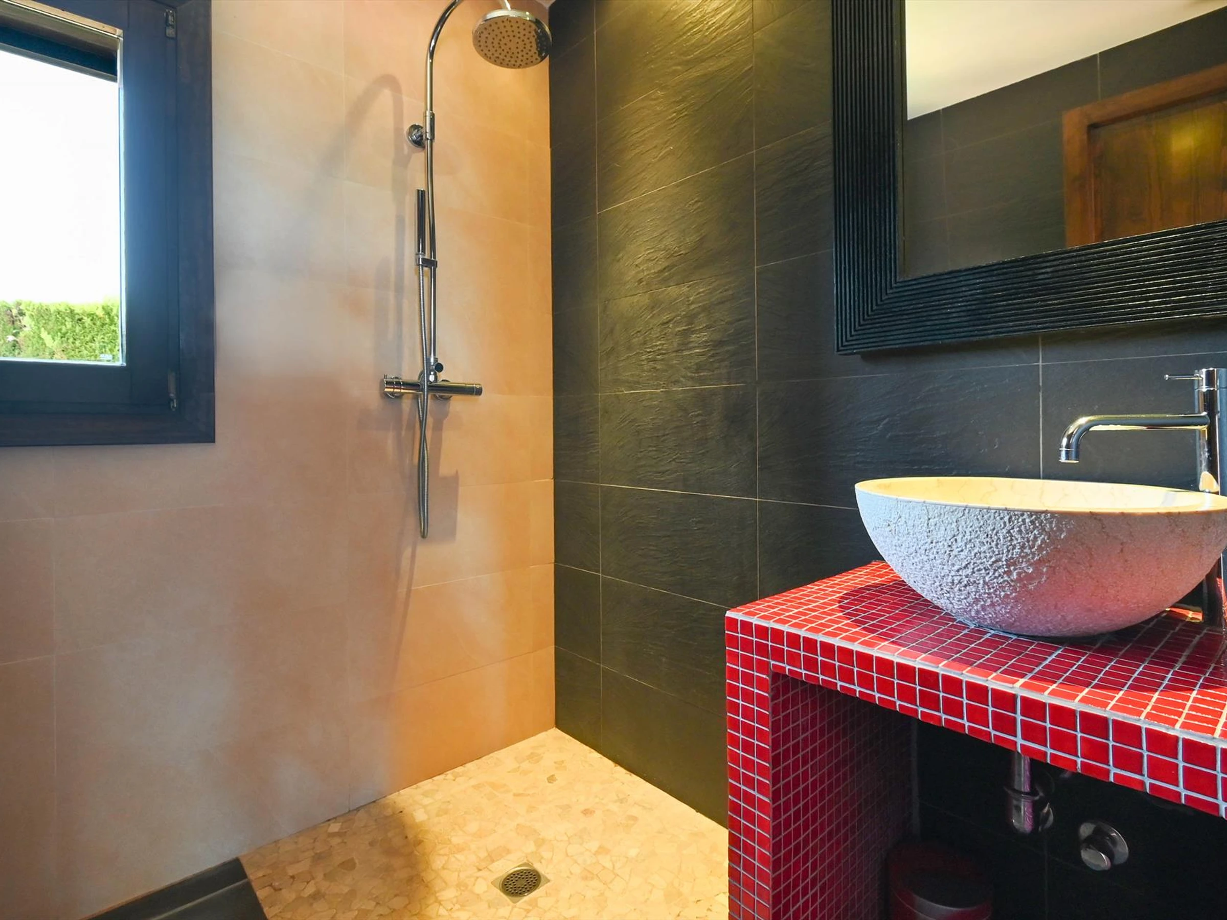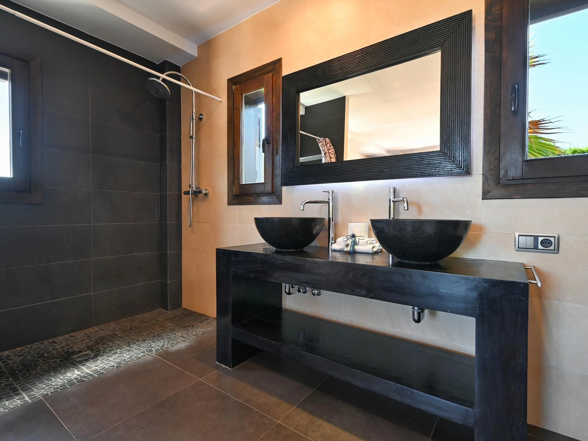 * bathroom with single washbasin and showerExterior of this luxury villa