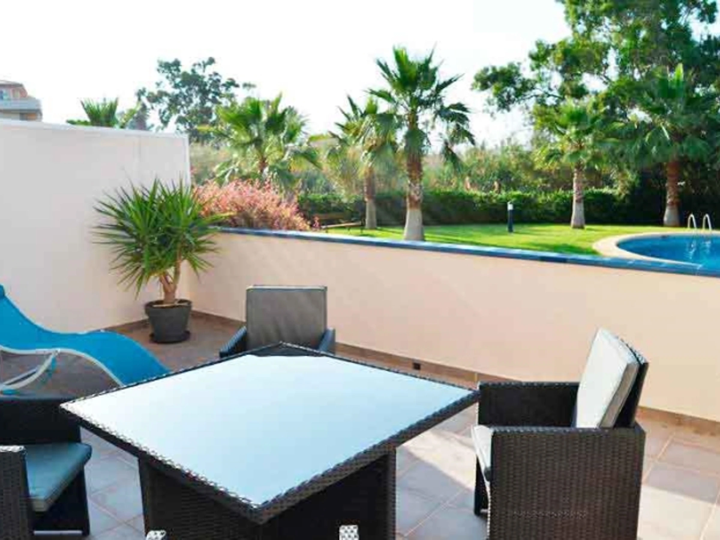 The apartment in Denia has 2 bedrooms and has capacity for 6 people. The 85 m² apartment is tastefully and modernly furnished and is located on the beachfront, overlooking the garden and the pool. It is located in an ideal area for families. It has a 15 m² private terrace and a communal + children's pool (maximum depth 1.8 m, minimum depth 0.5 m). It is located 50 m from Las Marinas bus station, 70 m from Els Molins sandy beach, 2 km from a supermarket, 3 km from Els Poblets city, 6 km from Denia city, 6 km from Feria de Denia en Verano amusement park/theme park, 7 km from Oliva Nova Golf golf course, 100 km from Valencia airport, and 100 km from Alicante airport.