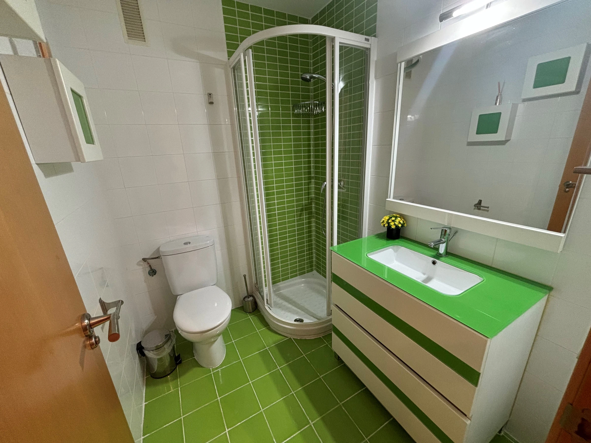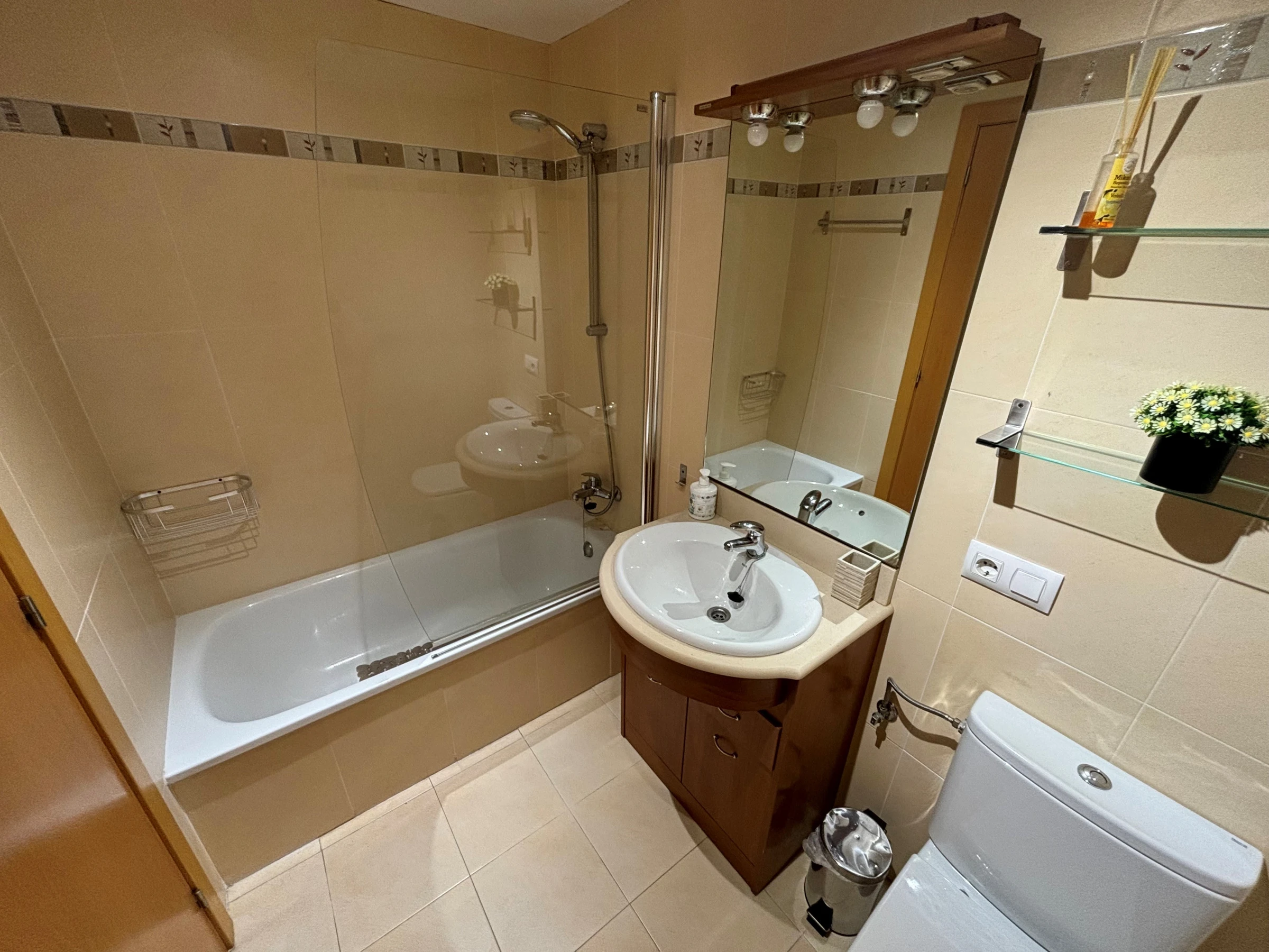 It has an elevator, garden, washing machine, iron, air conditioning throughout the house, community+children's pool, open-air parking in the same building, 1 television.