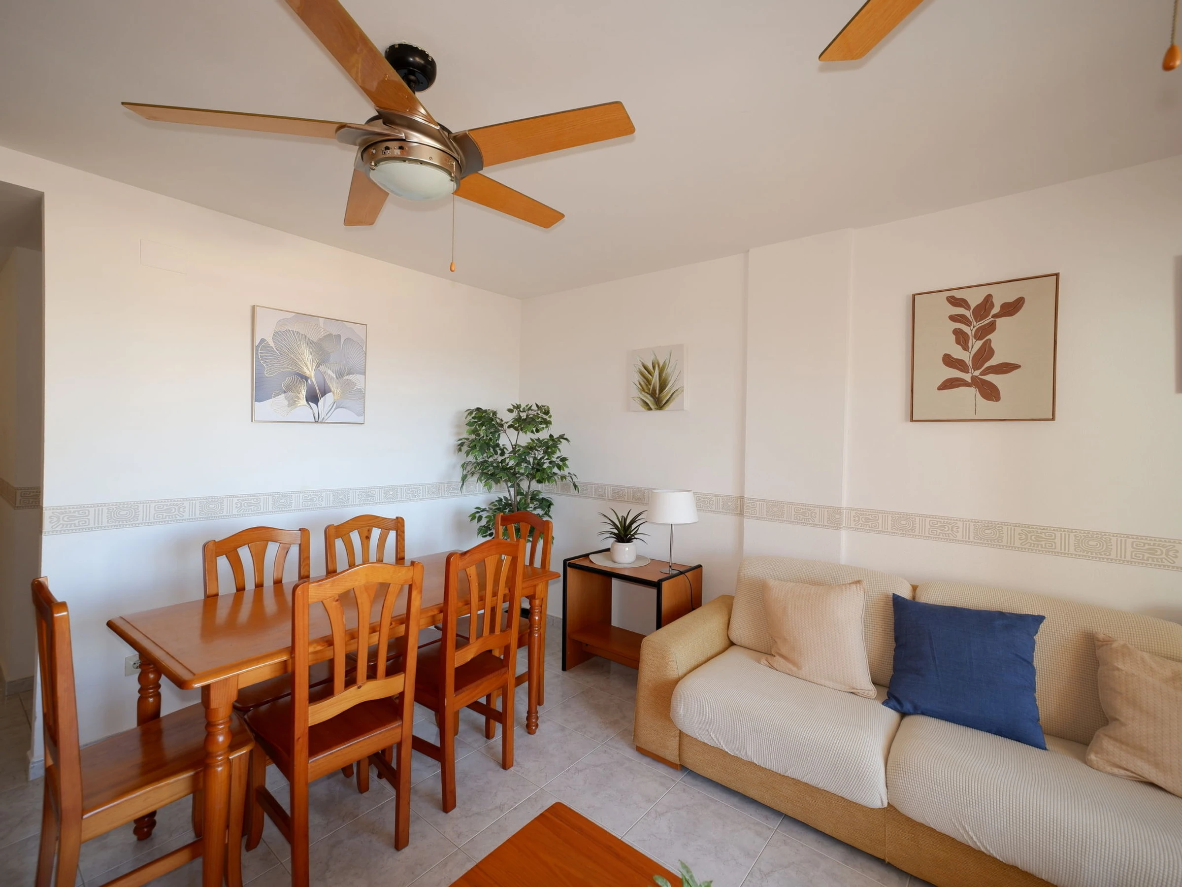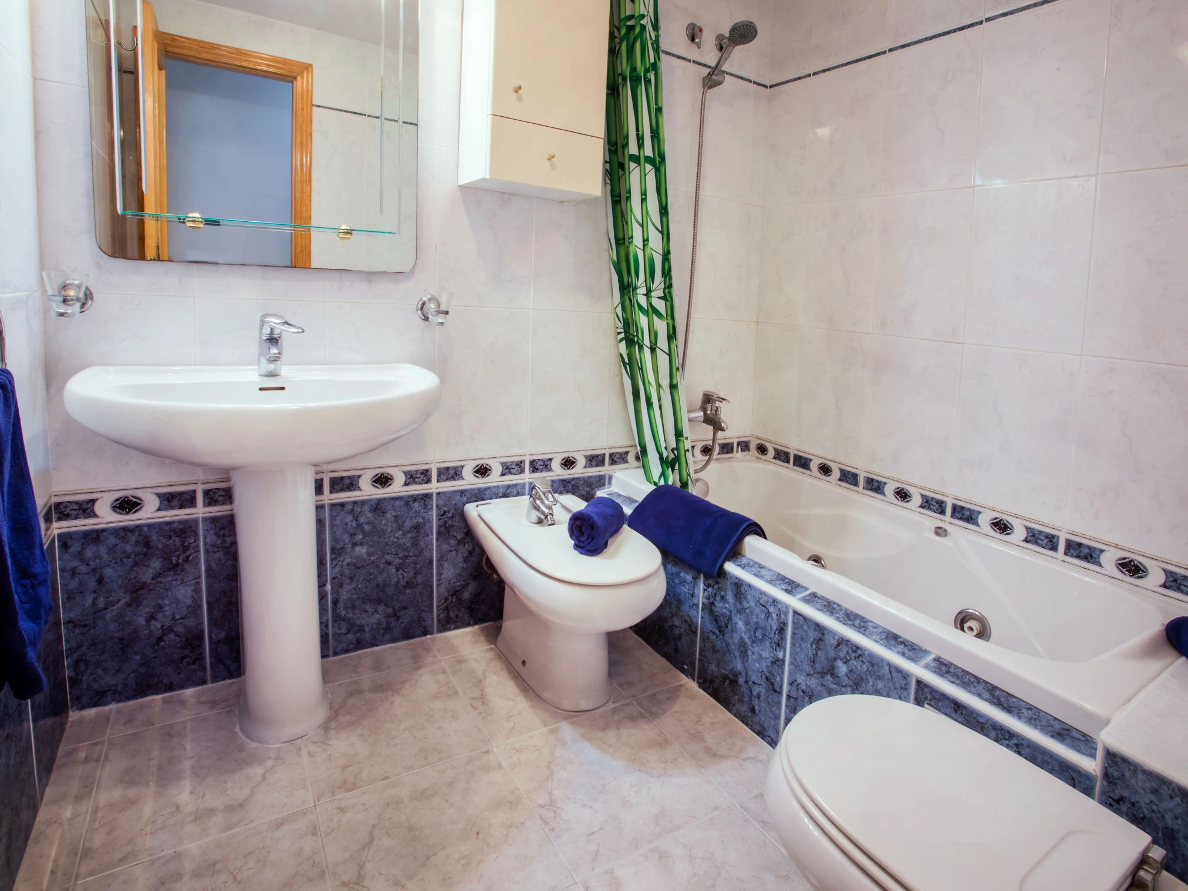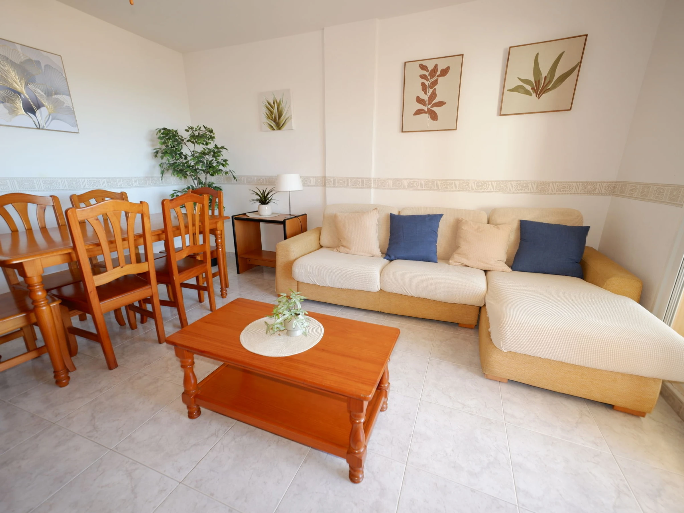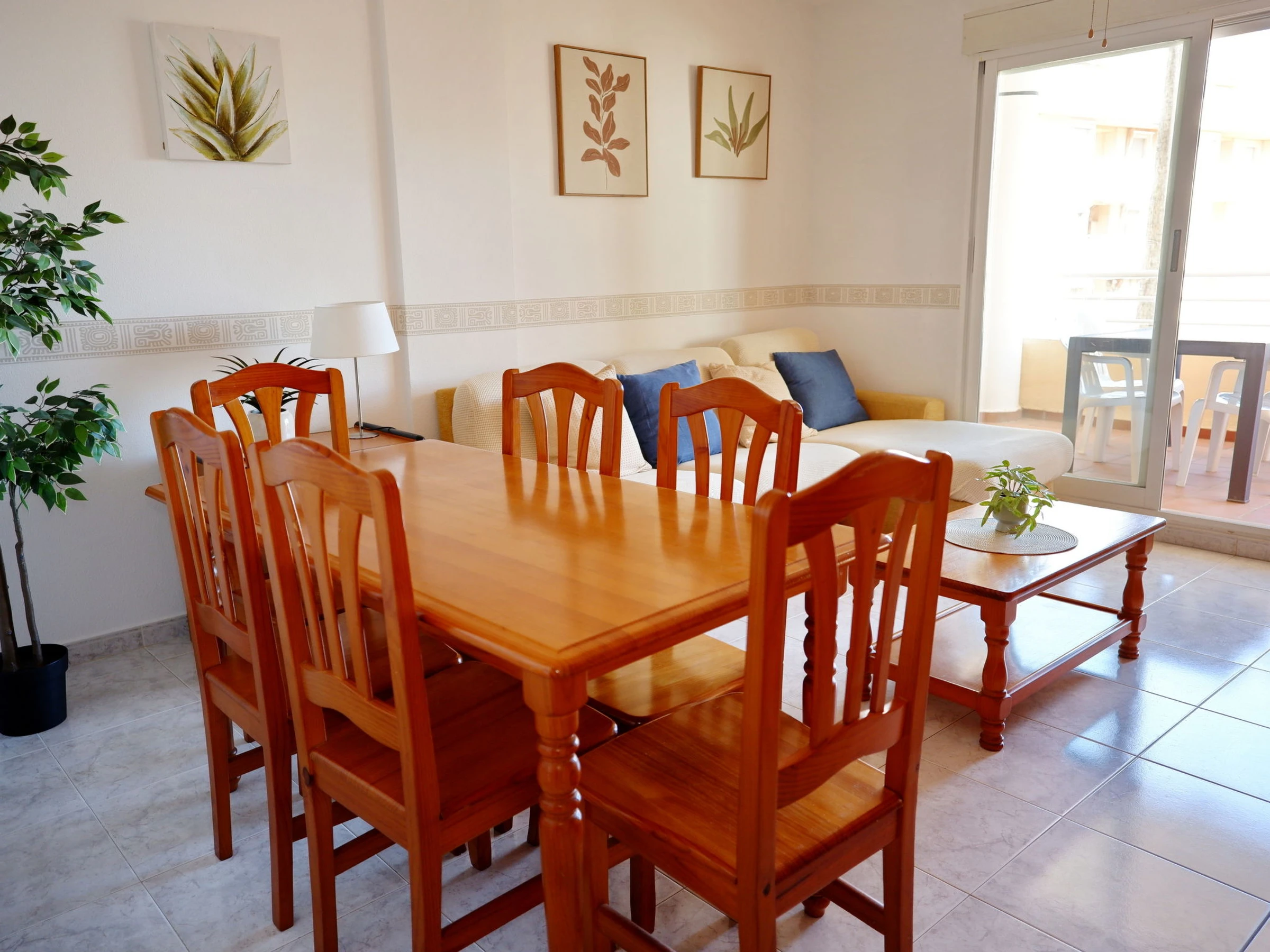 "Dainium", 3-room apartment 70 m2. Spacious, comfortable and cosy furnishings: living/dining room with digital TV, air conditioning, fan and forced-air heating. Exit to the terrace. 1 room with 1 french bed (150 cm, length 200 cm), digital TV, air conditioning, fan and forced-air heating. 1 room with 1 bed (90 cm, length 190 cm), 1 french bed (135 cm, length 190 cm), fan. Kitchen (oven, 4 ceramic glass hob hotplates, toaster, microwave, freezer, electric coffee machine). Bath/bidet/WC, sep. WC. Large terrace. Terrace furniture. View of the sea. Facilities: washing machine, iron, hair dryer. Internet (WiFi, free). Parking space n 32 (roofed). Please note: TV only ES. [hidden] // Reg. Nr.: ESFCTU00000304500046903400000000000000000[hidden]7