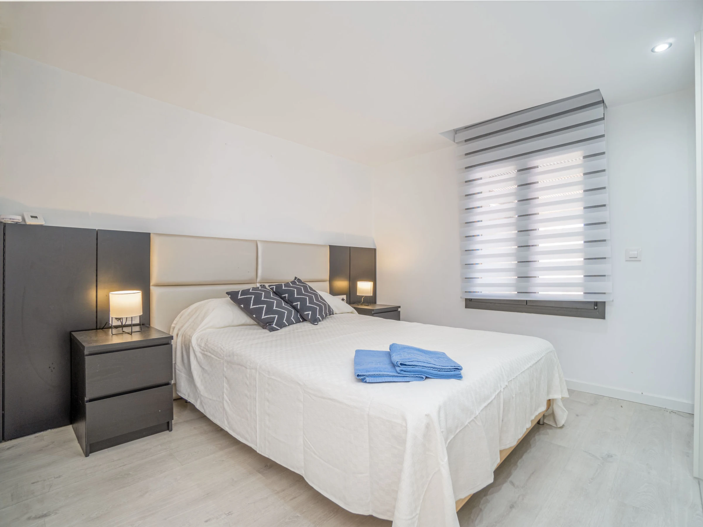 3-room house 107 m2, south facing position. Spacious and bright, fully renovated, practical and modern furnishings: living/dining room with 1 double sofabed (180 cm, length 200 cm), dining table, digital TV, flat screen, air conditioning, forced-air heating and electric shutters. Exit to the terrace, to the swimming pool, south facing position. 1 large room with Dressing room with 1 french bed (150 cm, length 190 cm), shower/WC, air conditioning, forced-air heating and electric shutters. 1 room with 2 beds (90 cm, length 190 cm), electric shutters. Kitchen (oven, dishwasher, 3 induction hot plates, toaster, kettle, microwave, freezer, electric coffee machine). Shower/WC. Large terrace. Terrace furniture. View of the canal. Facilities: washing machine, iron, hair dryer. Internet (WiFi, free). Parking (fenced 3 cars). Please note: non-smoking house. Private mooring (extra). Maximum 1 pet/ dog allowed. TV only ES. [hidden] // Reg. Nr.: ESFCTU00001702000061870800000000000000000[hidden]8