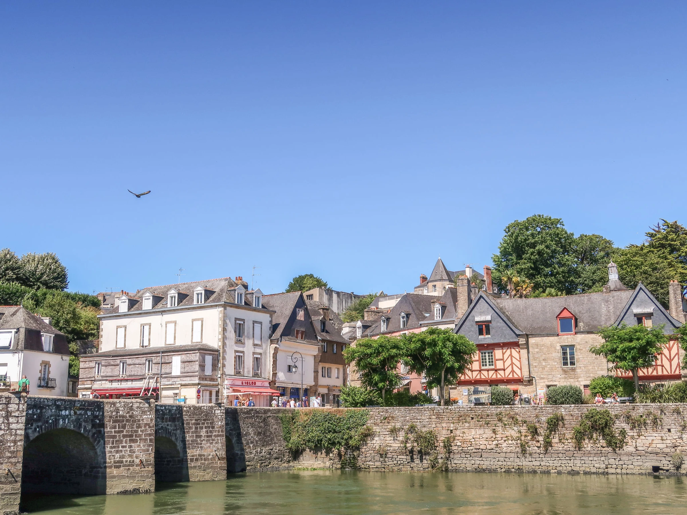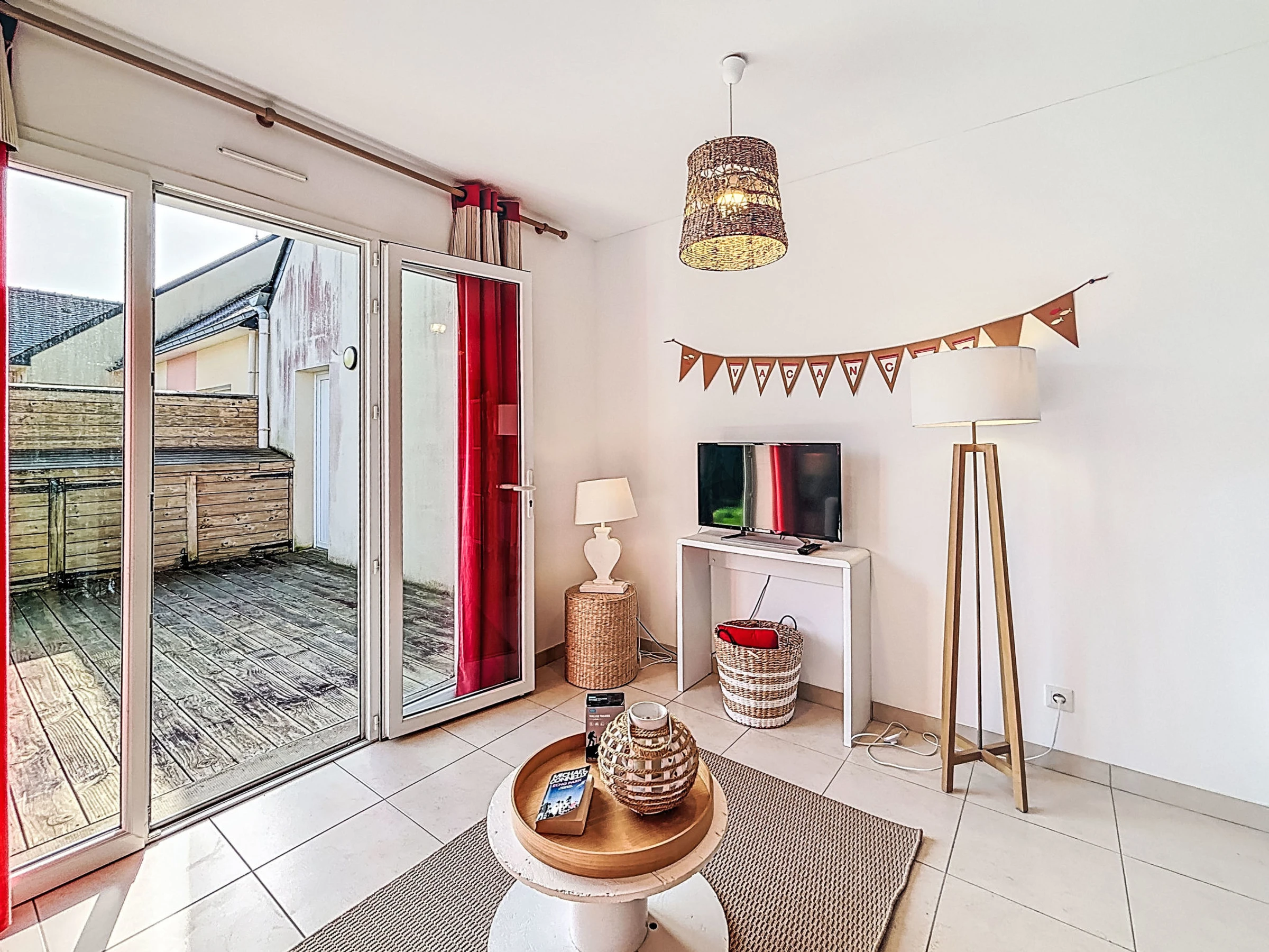 "Maison Kerlosquet", 3-room terraced house 45 m2. Comfortable furnishings: living/dining room with TV and flat screen. Exit to the terrace. Open kitchen (2 hot plates, toaster, kettle, microwave, electric coffee machine). Shower/WC. Electric heating. Upper floor: 1 room with 1 french bed (1 x 140 cm, length 190 cm). 1 room with 2 beds (90 cm, length 190 cm). Terrace, small garden. Terrace furniture. Facilities: washing machine. Internet (WiFi, free). Parking. Please note: non-smokers only. 1 pet/ dog allowed. Smoke alarm. Offer by a private individual according to Art. 155, IV of CGI. [hidden]