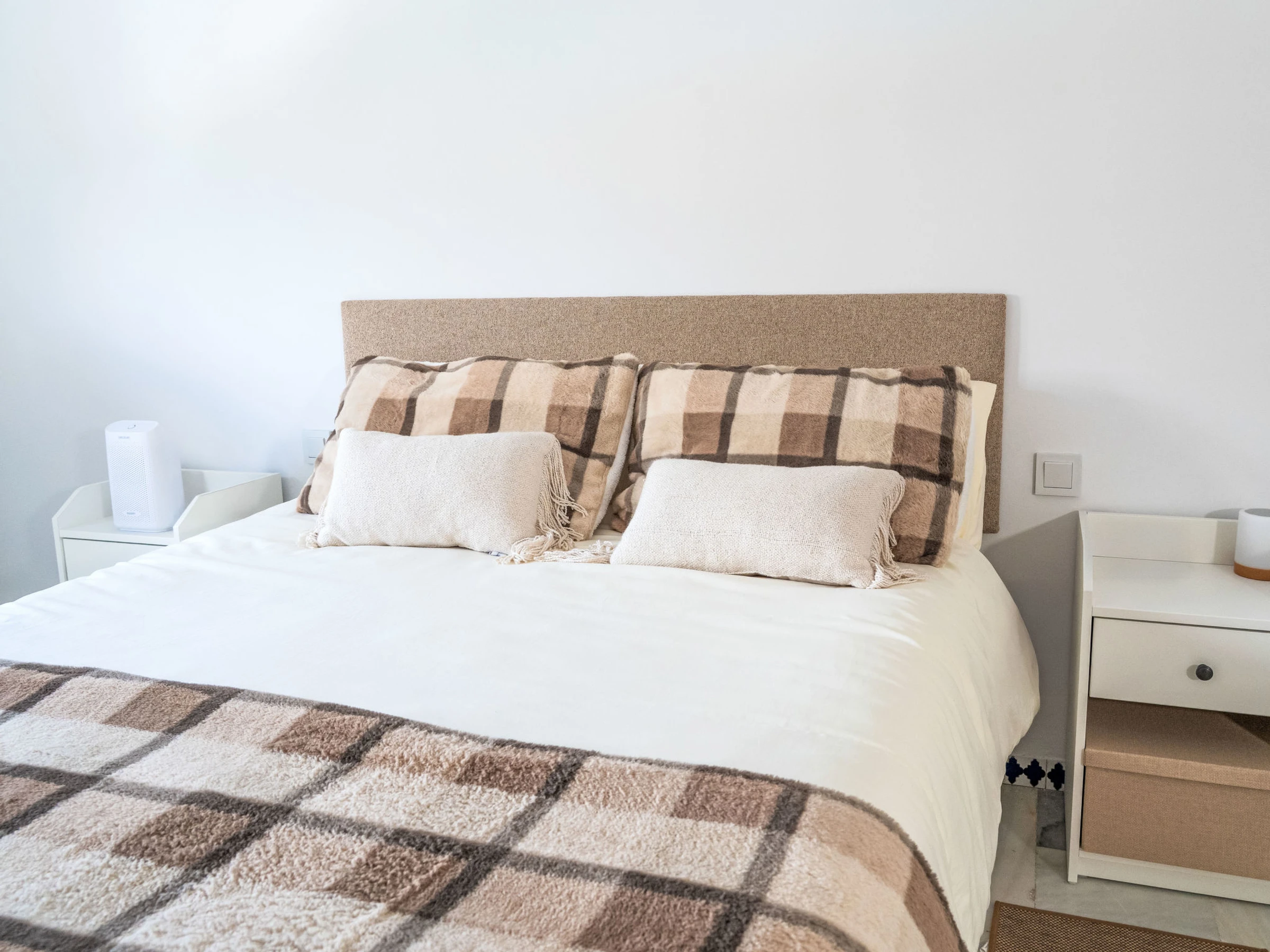 Estepona: Very beautiful, cosy apartment block "Vista Levante". 29 km from the centre of Marbella, 2 km from the centre of Estepona, 100 m from the sea, 100 m from the beach, direct access to the beach, south-east facing position. For shared use: garden with lawn, swimming pool angular fenced (12 x 4 m, depth 60 - 185 cm, seasonal availability: [hidden] - [hidden] pool opening hours: 09:00-20:00). In the house: lift. Parking at the house. Supermarket 1 km, bus stop "Arena Beach" 170 m. Golf course (18 hole) 4 km. Nearby attractions: Puerto Banús 20 km. Please note: car recommended. Suitable for families. Loading and unloading of baggage is possible at the holiday house. Airfield 80 km from the property. Neighbourhood highly sensitive to noise. Quietness and good behaviour expected.