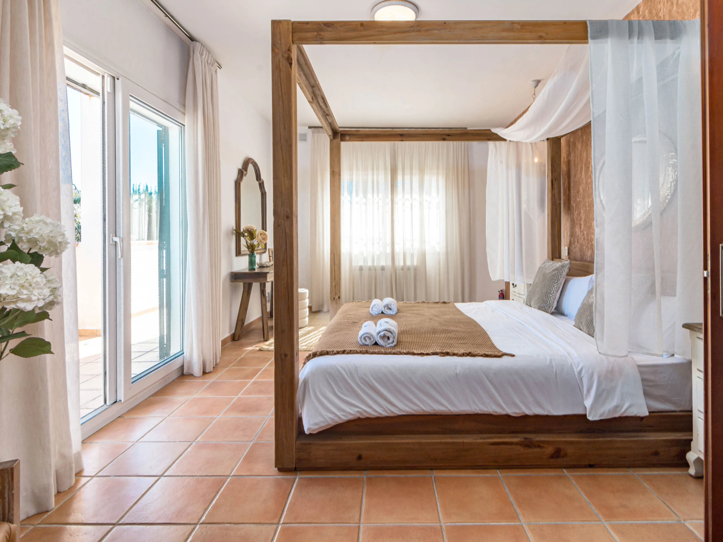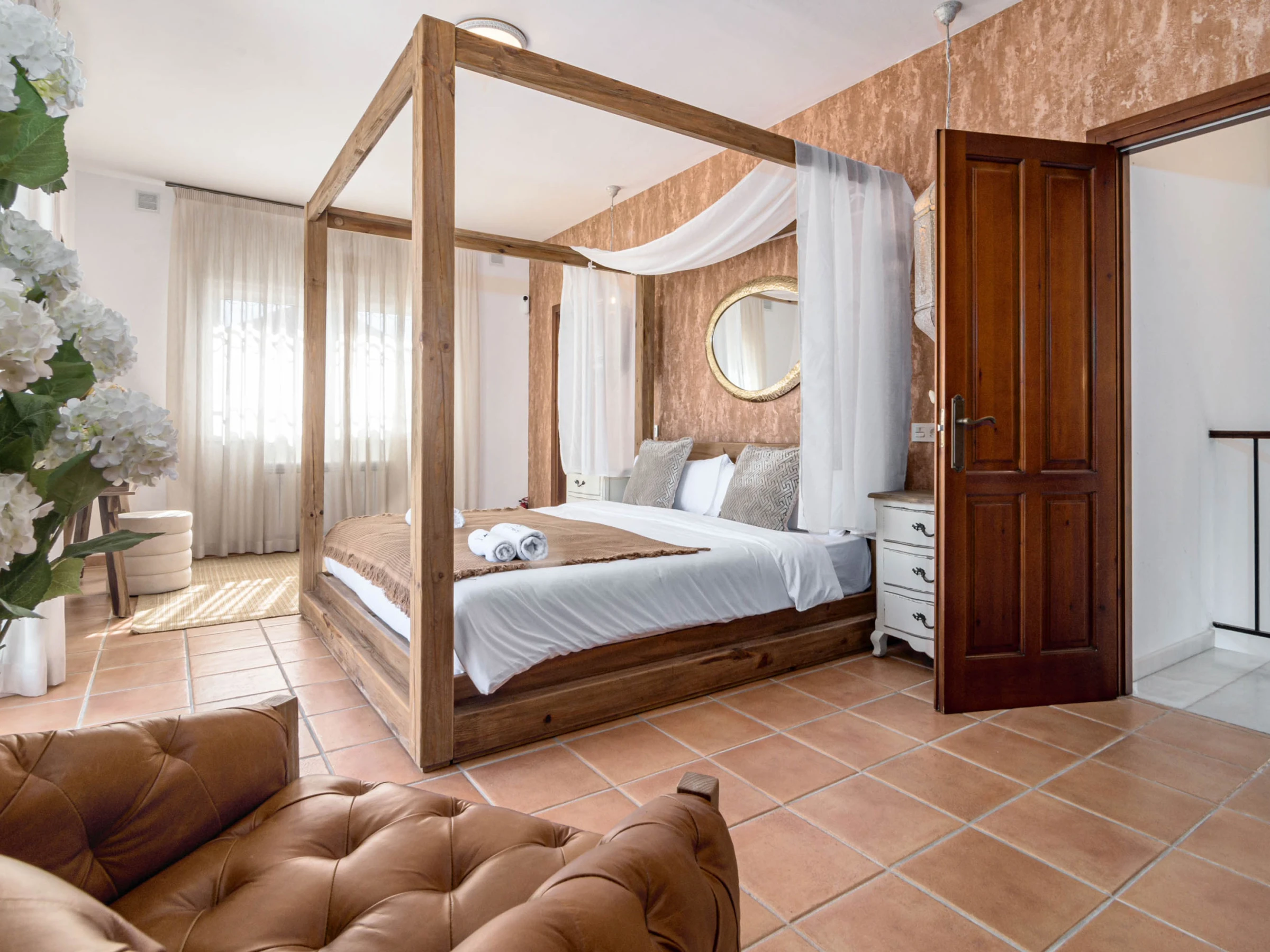 This spacious property features 4 elegantly designed bedrooms, each styled with comfort and quality in mind, including a standout master suite with a luxurious four-poster bed, alongside multiple modern bathrooms fitted with high-quality finishes and walk-in showers.