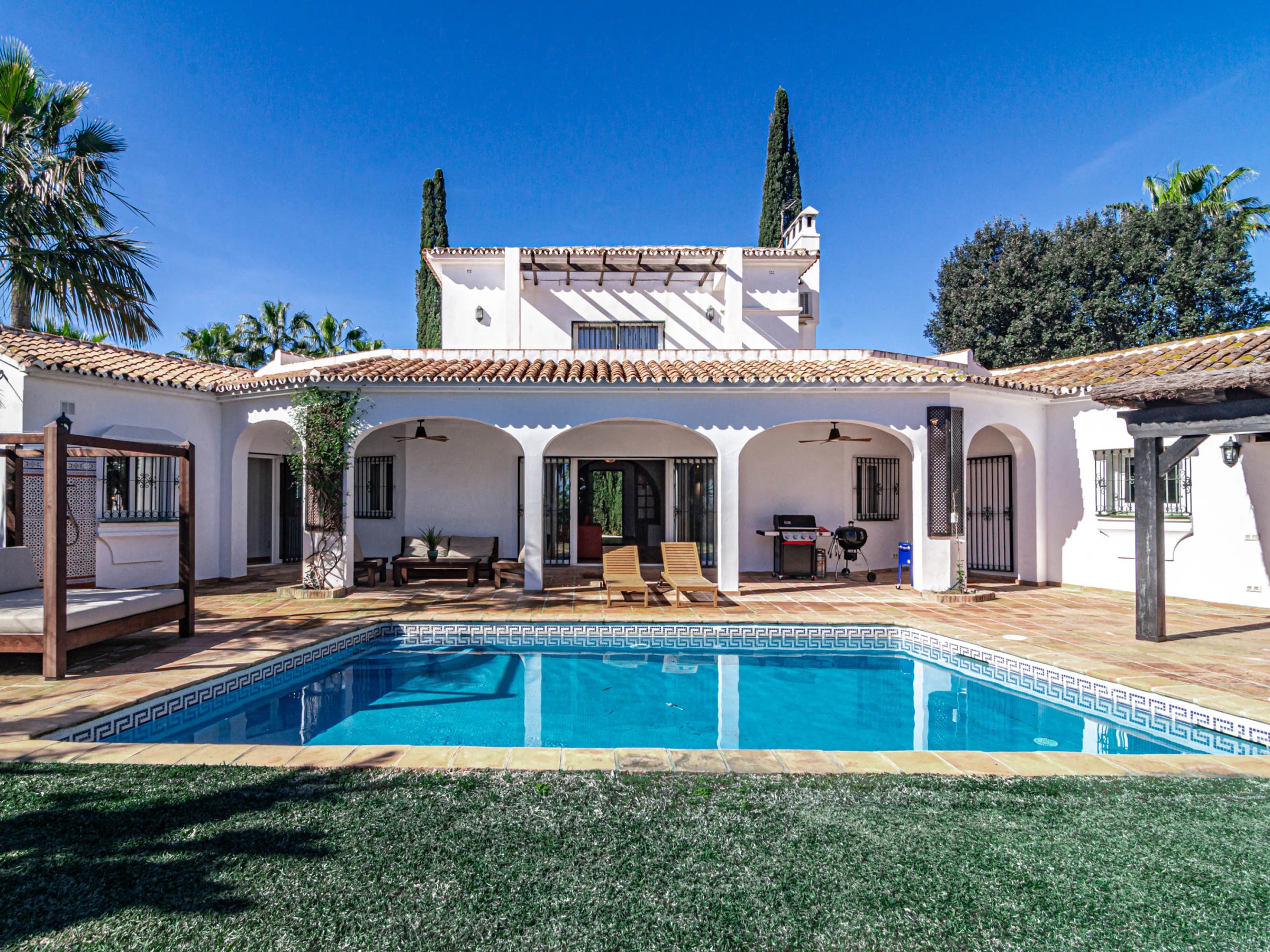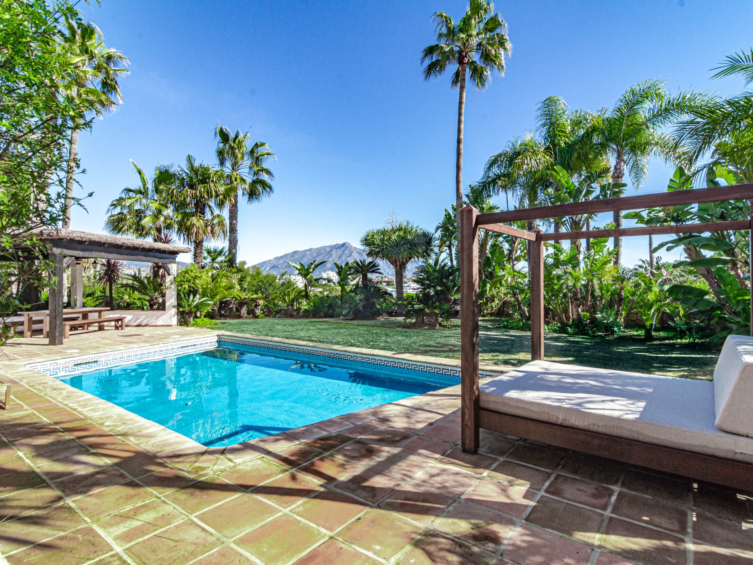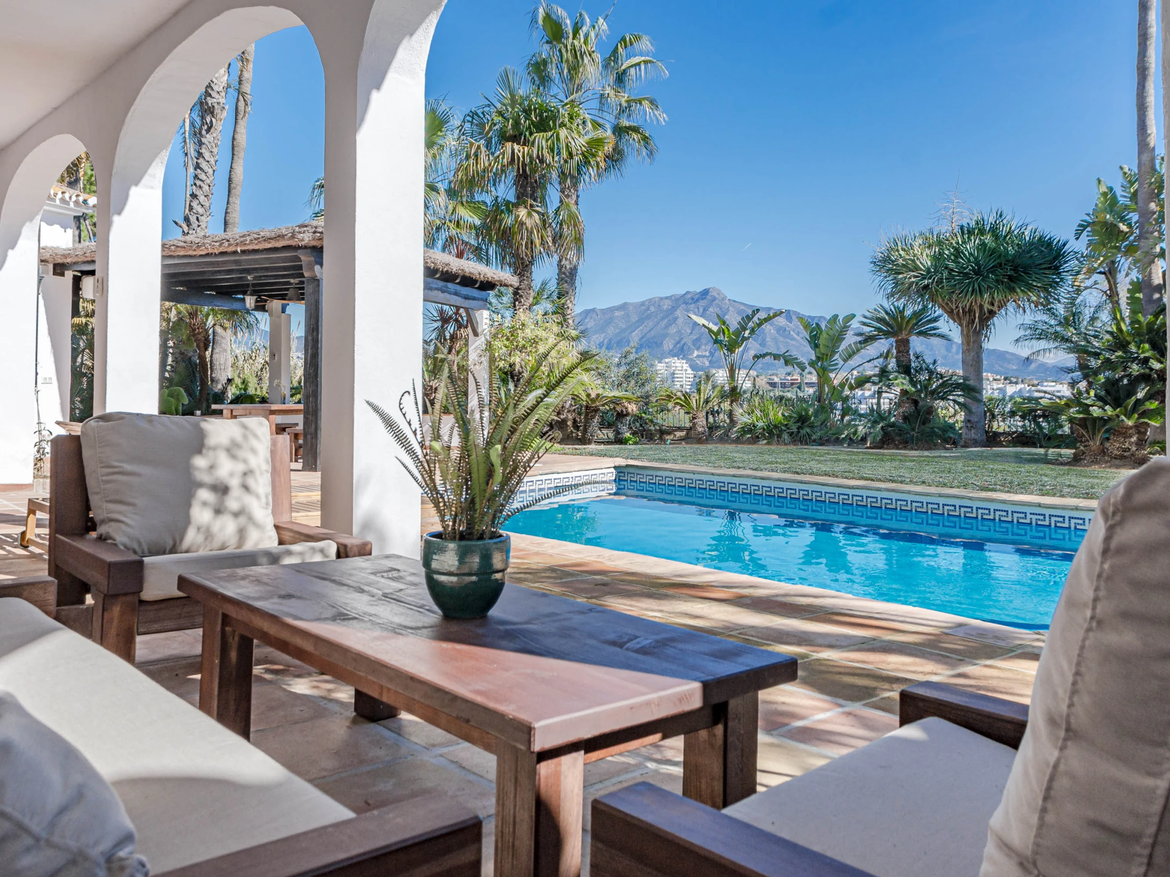 Experience the perfect blend of traditional Andalusian charm and modern comfort in this stunning private villa located in Estepona, just moments from the beach and all essential amenities, offering a true private oasis with breathtaking mountain views and beautifully landscaped surroundings.