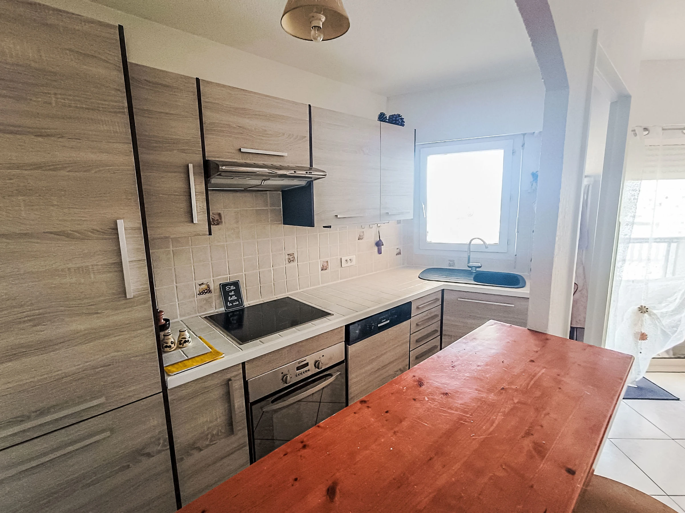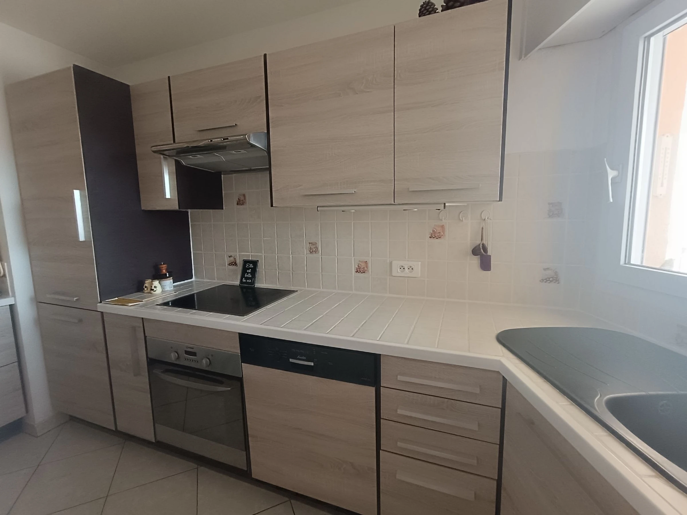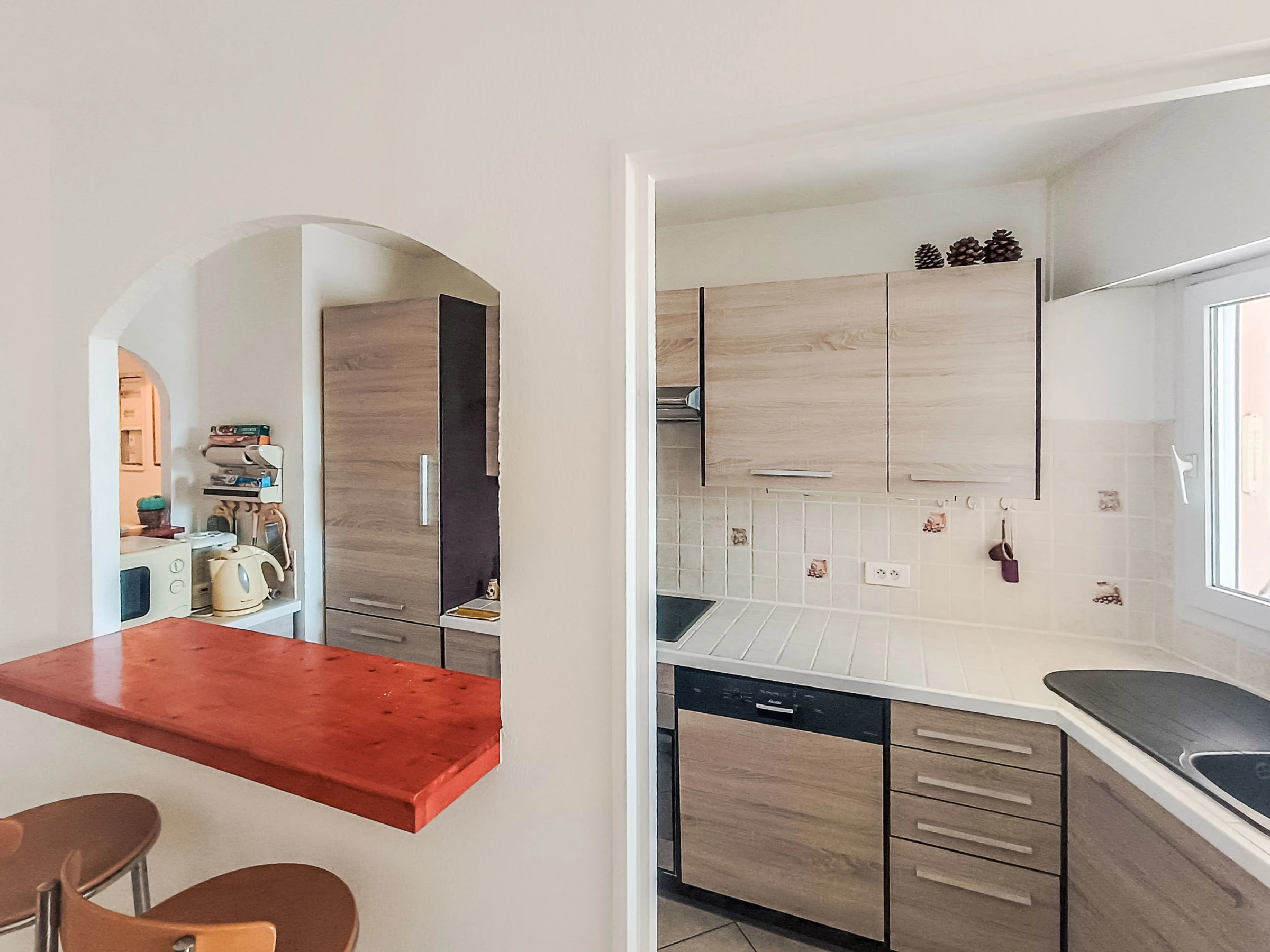 2-room apartment 45 m2 on 2nd floor. Living/dining room with 1 double sofabed (1 x 140 cm, length 190 cm), TV and electric heating. Exit to the terrace. 1 room with 1 french bed (1 x 140 cm, length 190 cm). Exit to the terrace. Open kitchen (oven, dishwasher, 3 induction hot plates, microwave, freezer, electric coffee machine). Shower, sep. WC. Terrace 5 m2. Terrace furniture. Beautiful view of the port. Facilities: washing machine. Internet (WiFi, free). Please note: non-smokers only, no parking. TV only FR. Smoke alarm.