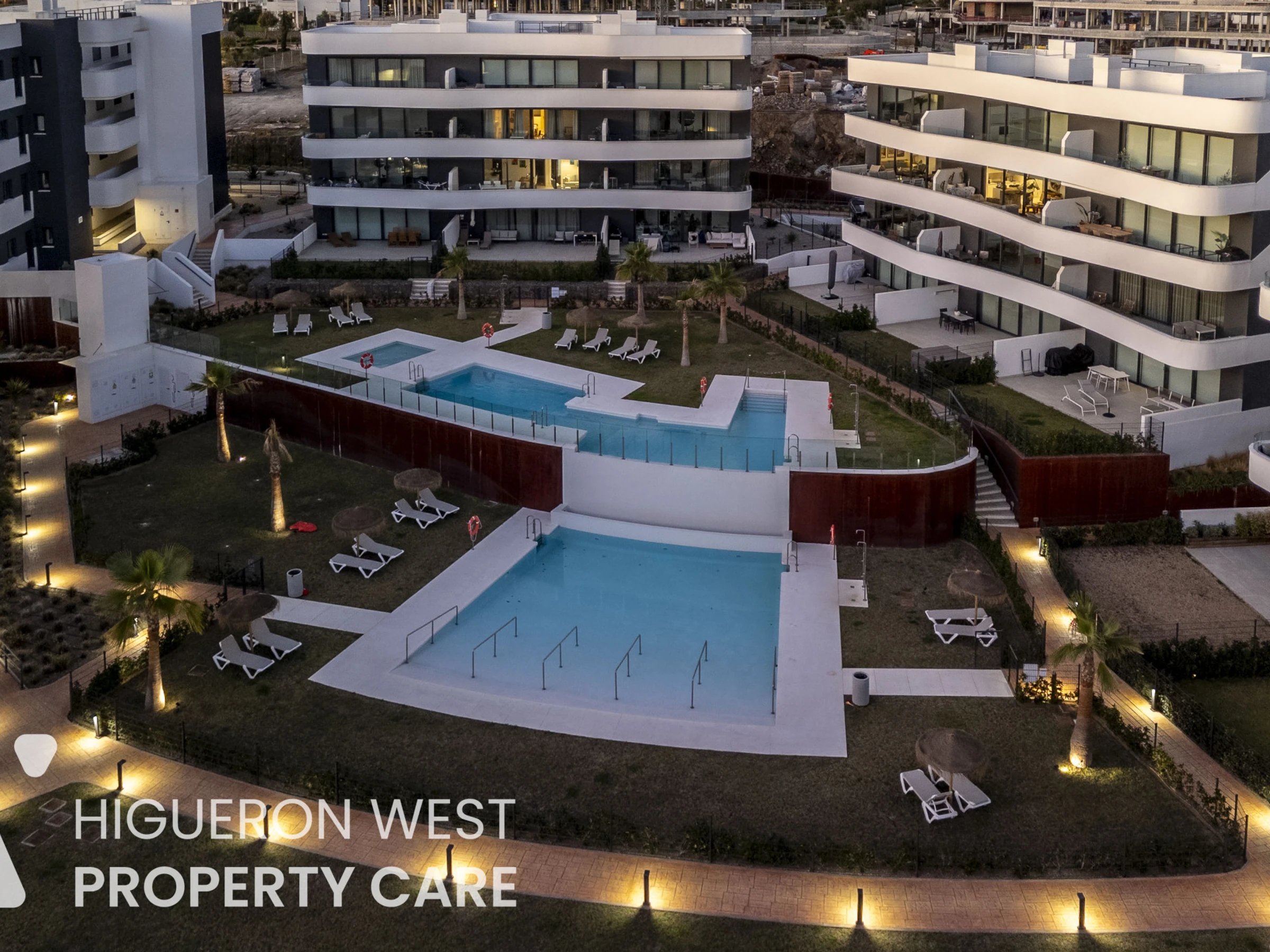The highlight of the home is its expansive 19 m² terrace—ideal for al fresco dining, sunset lounging, or simply soaking in the serene coastal panorama. Located within the sought-after Higuerón West community, the apartment offers a tranquil and family-friendly setting just a short drive from local attractions.
