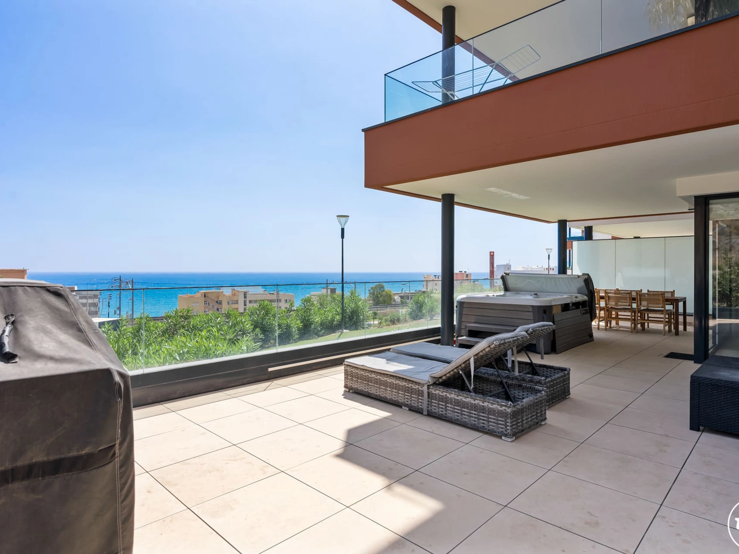 The terrace offers beautiful sea views, perfect for morning coffee, sunset drinks, or simply enjoying the Mediterranean wheather. After a day at the beach or exploring the coast, you can relax in the jacuzzi.