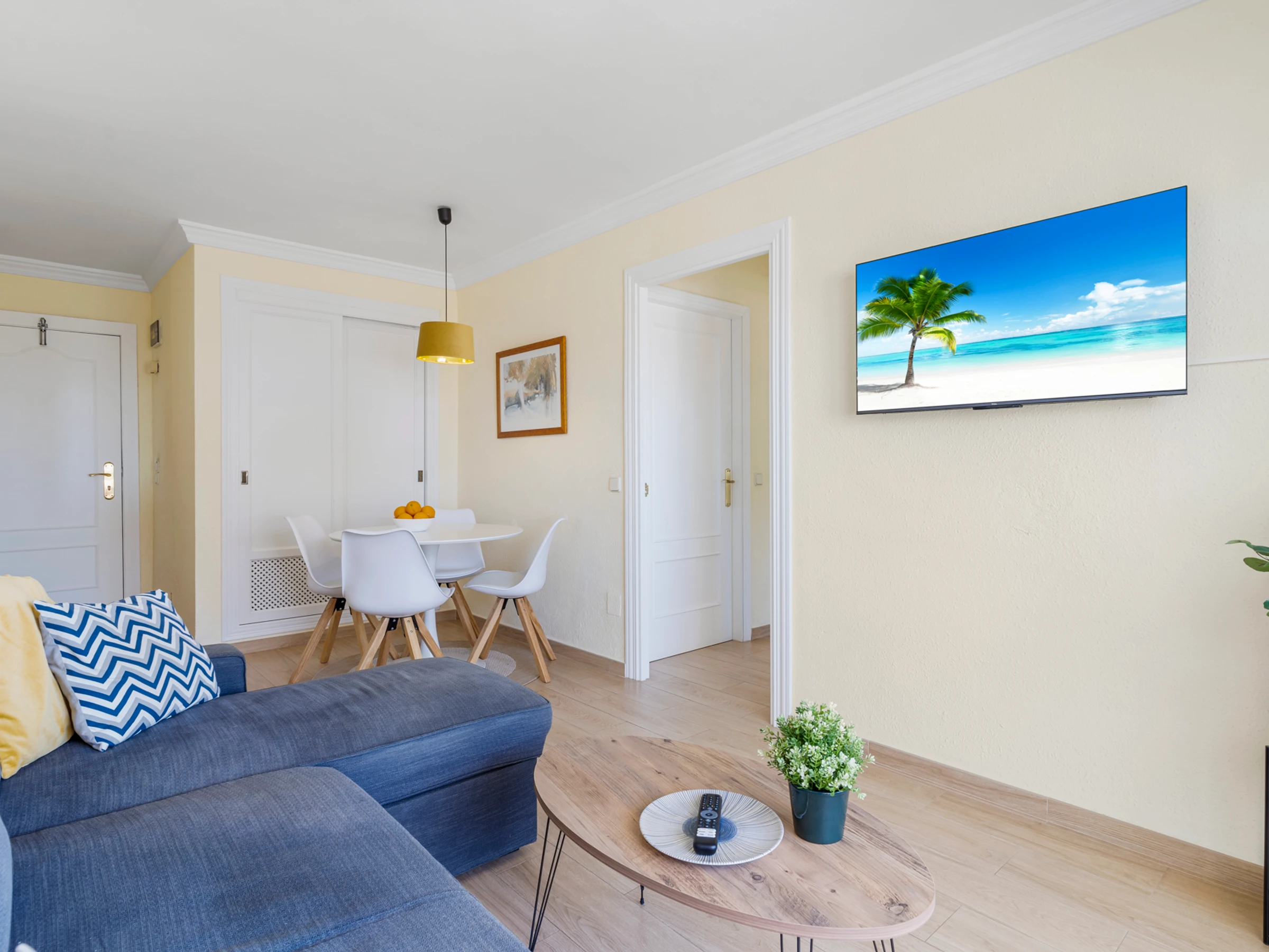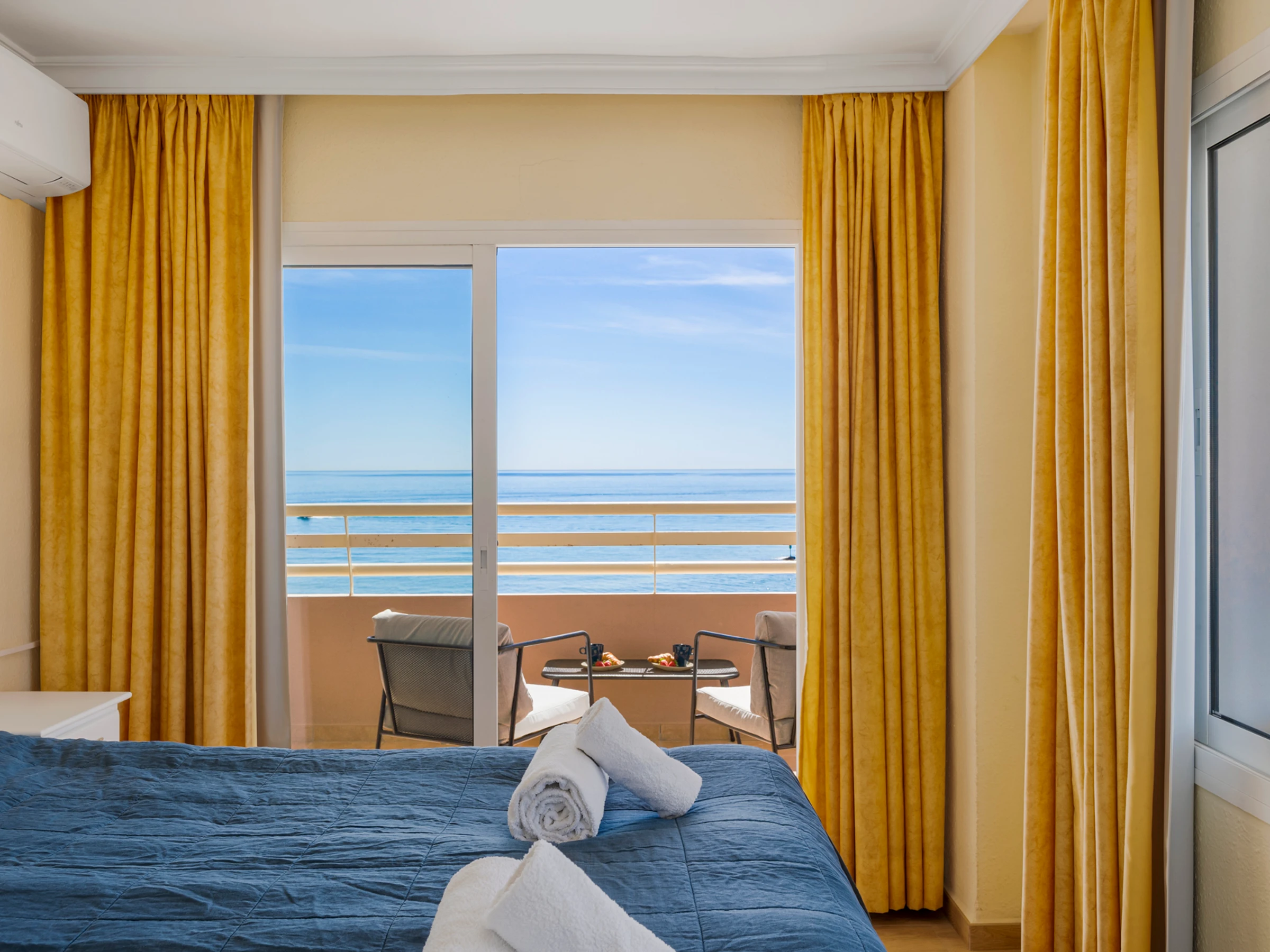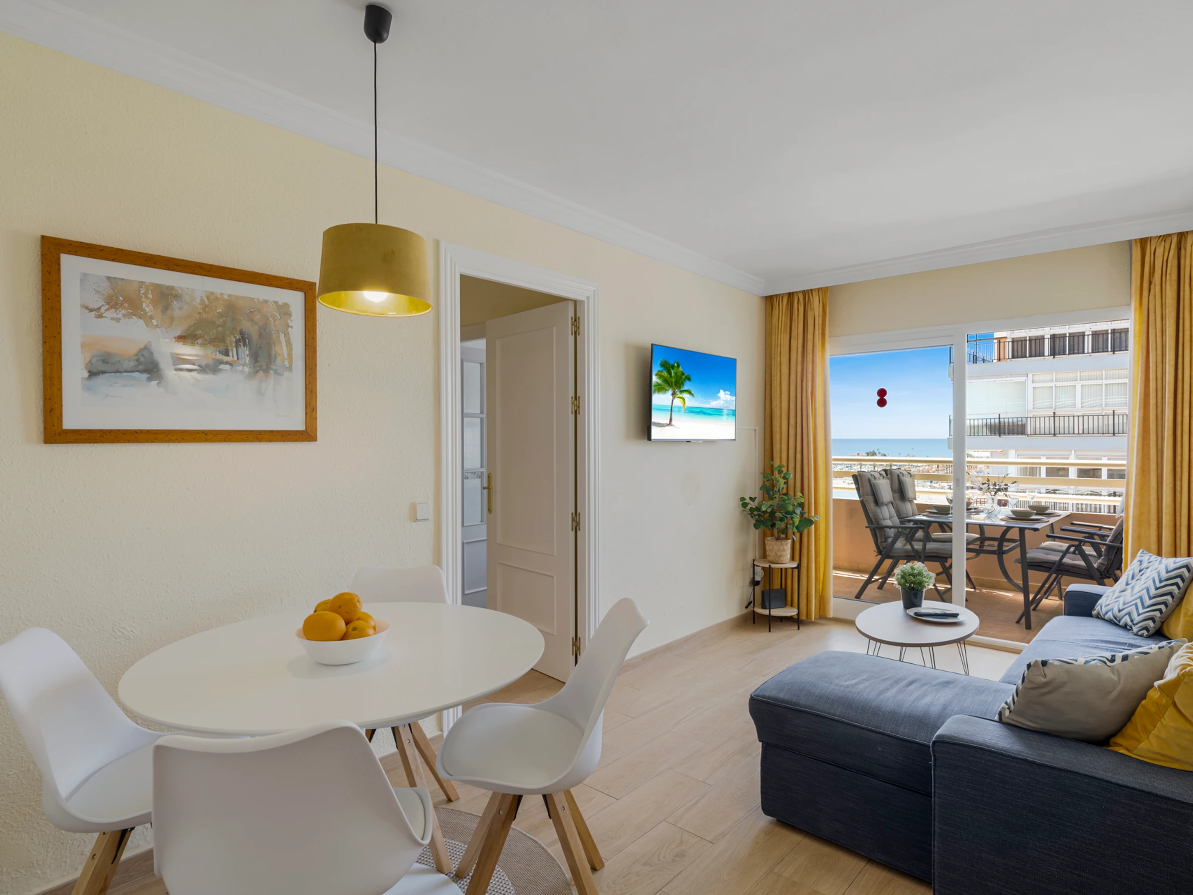 This accommodation boasts a cozy layout with 1 bedroom, 1 bathroom and a living room with a sofa bed, ensuring a comfortable stay for all guests. We provide soft bed linen and towels, adding a touch of luxury to your stay. The living space is equipped with a flat-screen TV and a dining area, perfect for enjoying home-cooked meals prepared in the fully equipped kitchen. Perhaps the crown jewel of this apartment is its balcony, offering unparalleled sea views that invite you to unwind and bask in the beauty of Fuengirola's coastline.