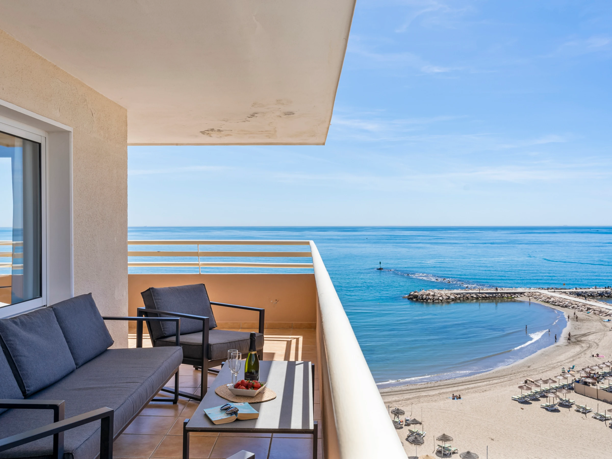 Welcome to Unbeatable View Stella Maris with Pool, with a panoramic view of the Mediterranean Sea, overlooking the beach and Fuengirola's marina. The golden sands of Fuengirola Beach lie just 5 meters from your doorstep. With the beach, lovely restaurants and a supermarket(Mercadona) just a few steps from the accommodation, the location is both practical and convenient.