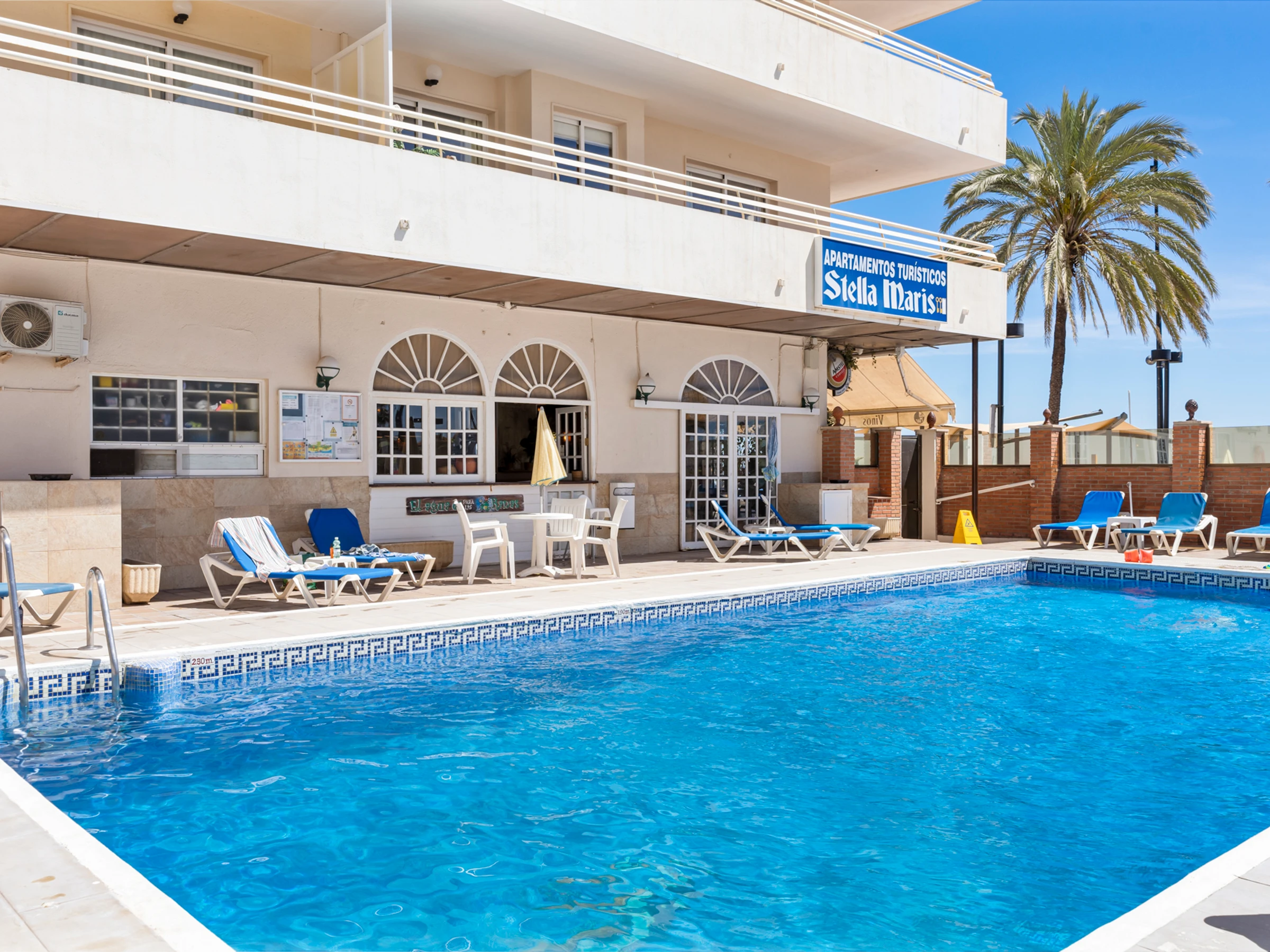 Our apartment promises an unforgettable stay with its array of amenities, including free WiFi, safety deposit box, air conditioning for those warm Mediterranean days, featuring a handy lift and a free outdoor swimming pool with access to a restaurant/bar.