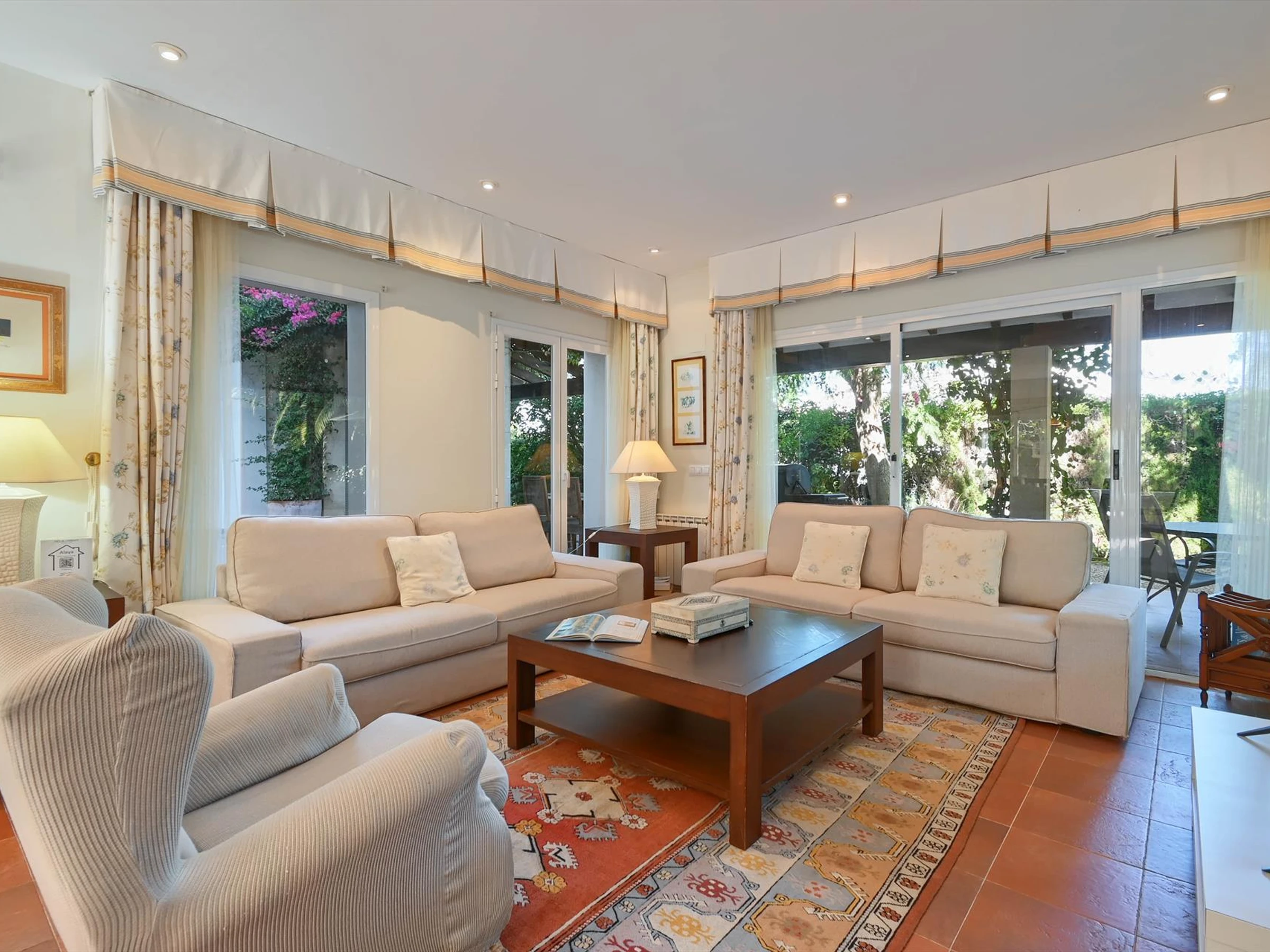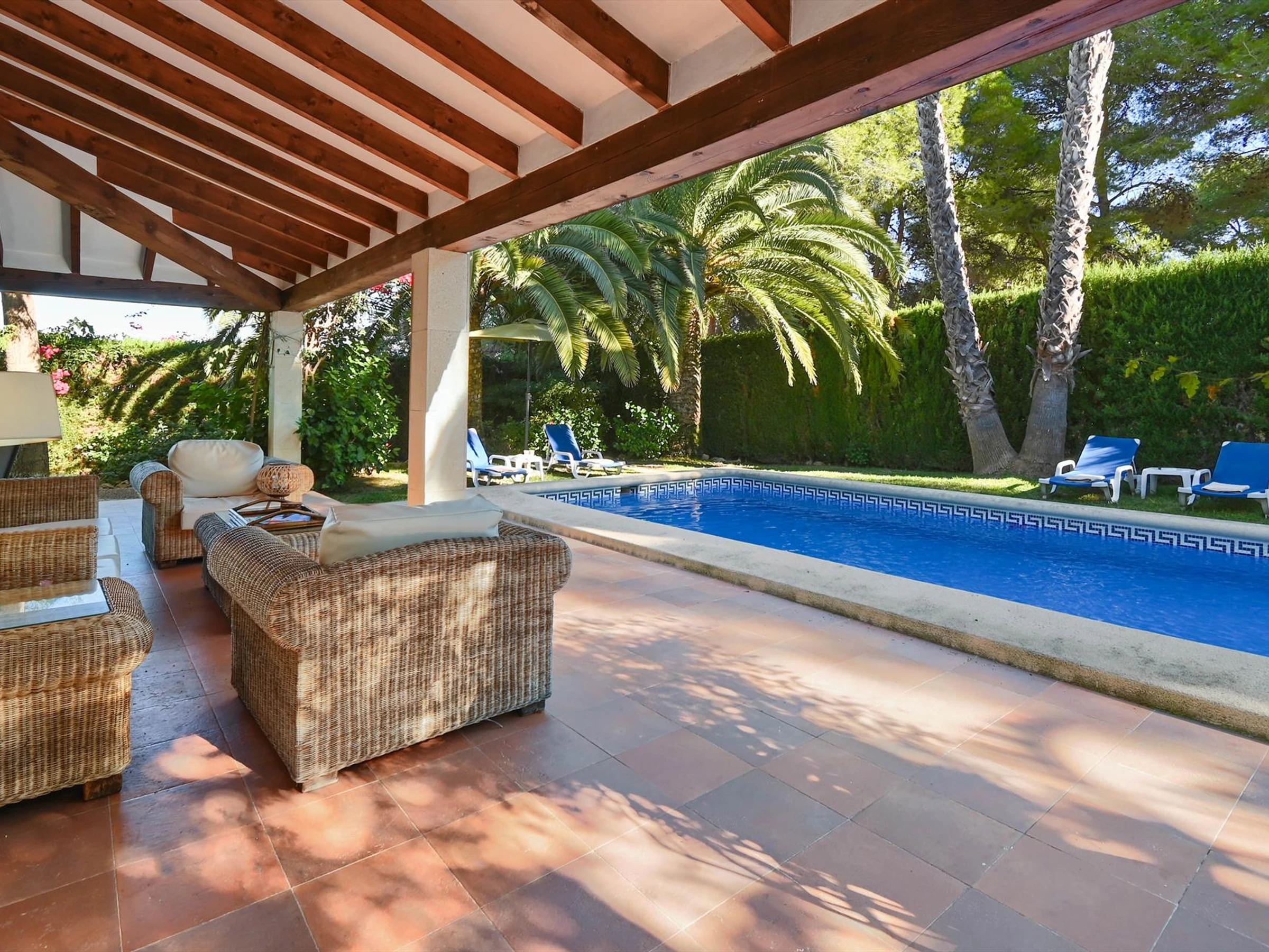 Exterior of the villalarge and enclosed plotprivate pool measuring 8m x 4m and 2m deepbeautiful lawned garden with gravel, trees and garden furniture with sunbeds3 terraces, of which 2 coveredbarbecueoutside sitting area and outside dining area3 private enclosed parking spaces