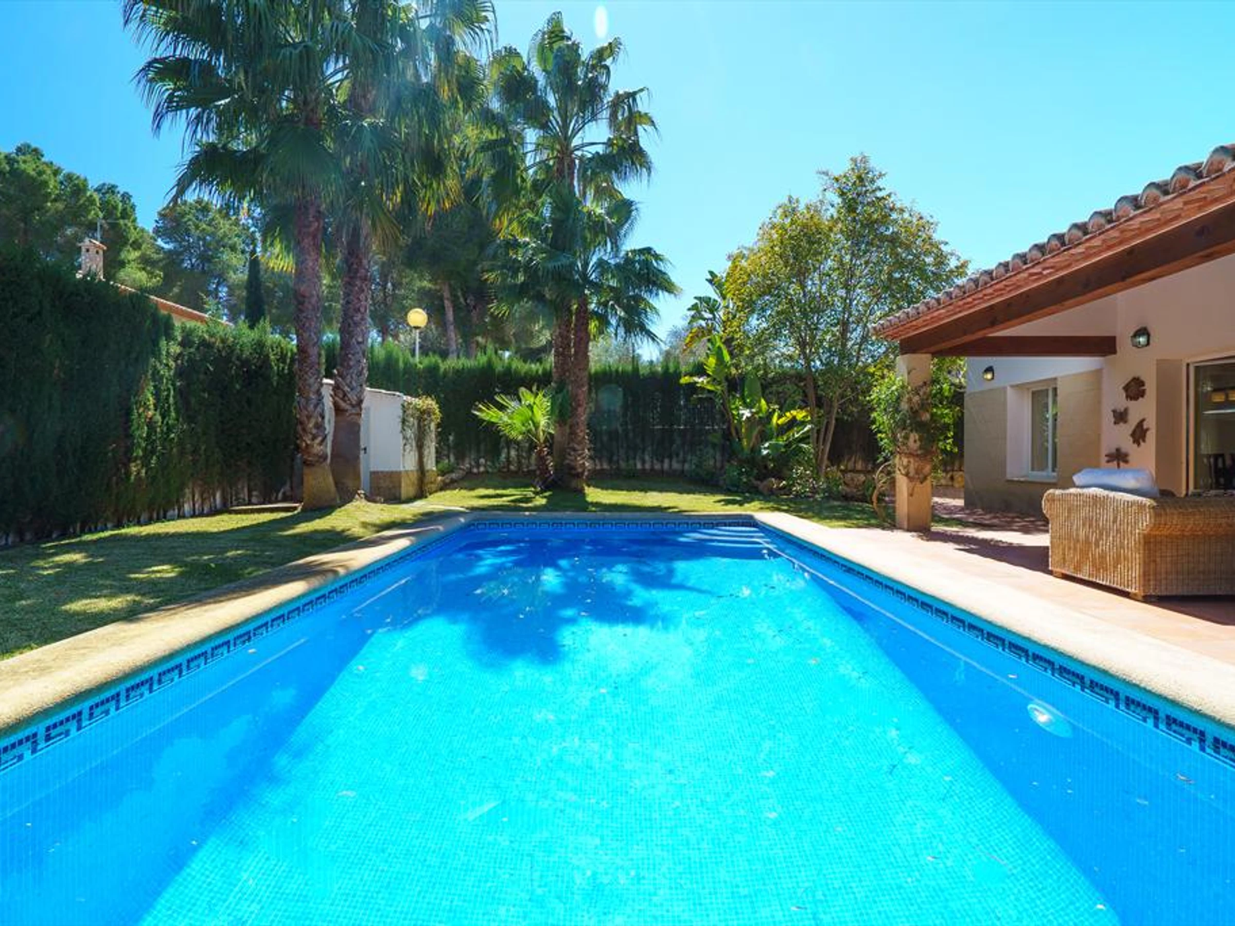 Large and comfortable villa with private pool in Javea, Costa Blanca, Spain for 8 persons. The house is situated in a residential beach area, at 1 km from El Arenal, Javea beach and at 1 km from Mediterraneo, Javea.