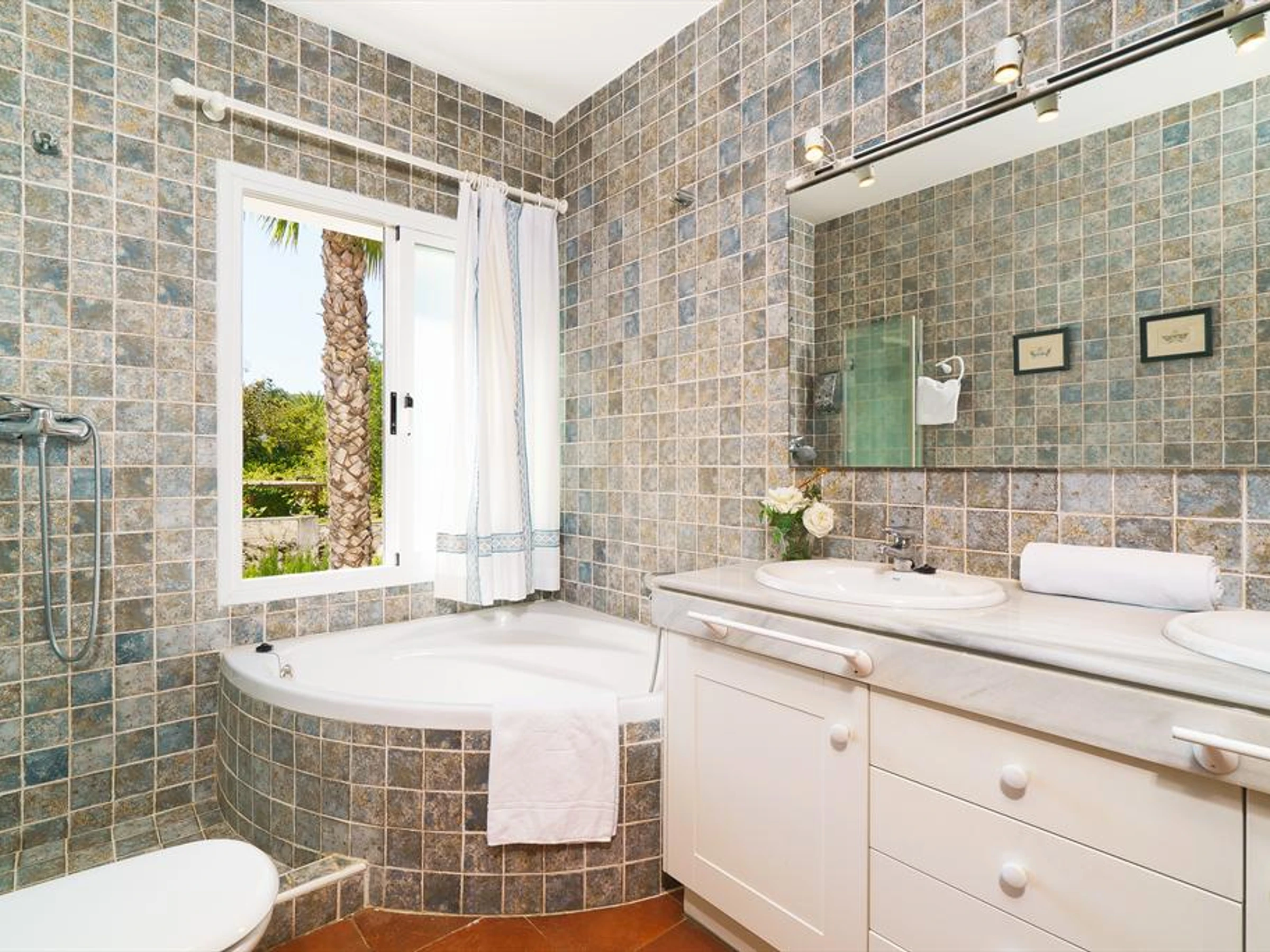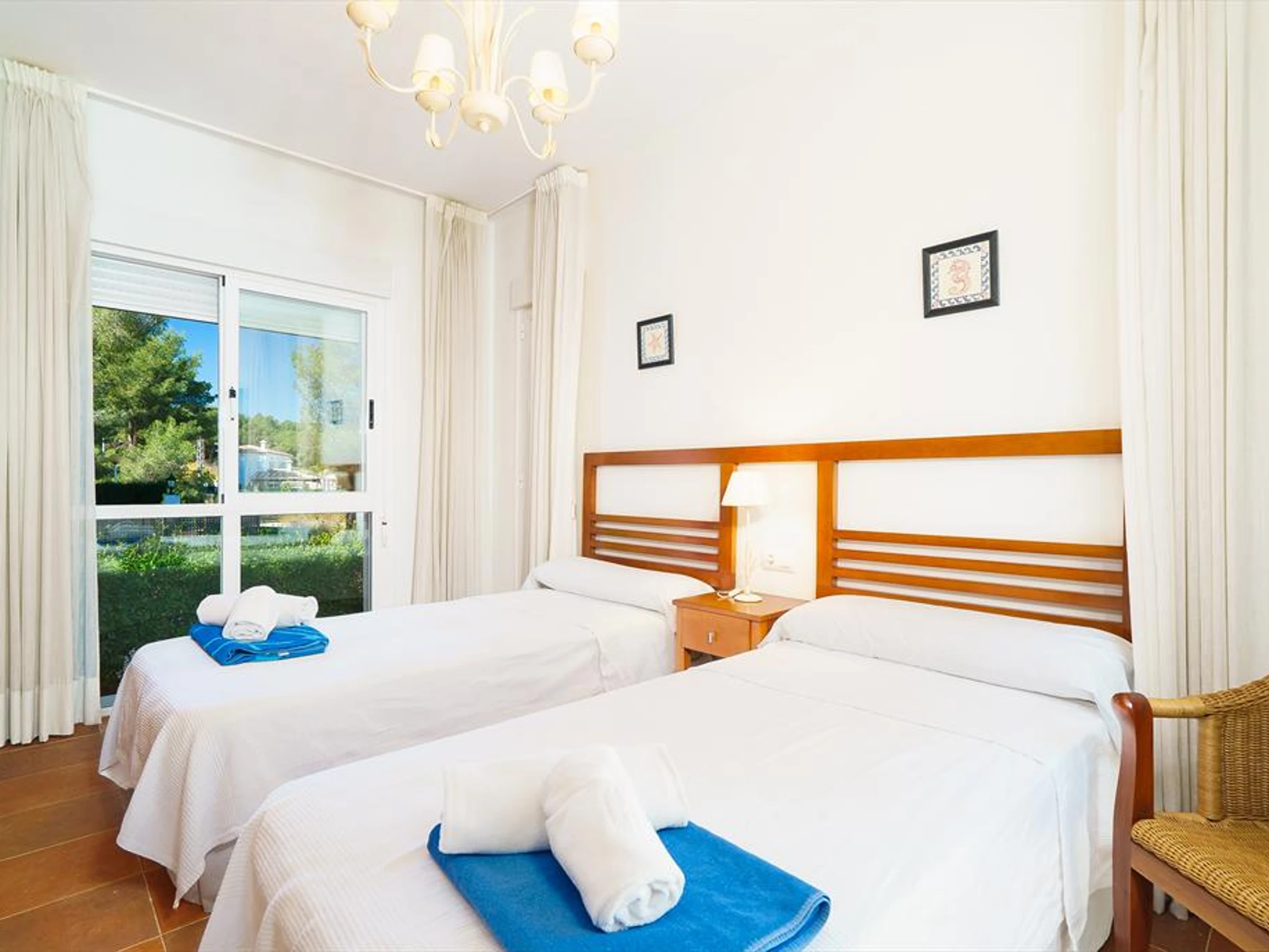 The villa has 4 bedrooms and 3 bathrooms, spread over 2 levels. The accommodation offers a lot of privacy, a beautiful lawned garden with gravel and trees and a wonderful pool. Its comfort and the vicinity of the beach, places to shop, sports activities, entertainment facilities, places to go out, sights and culture make this an ideal villa to spend your holidays in Spain with family or friends and even your pets.
