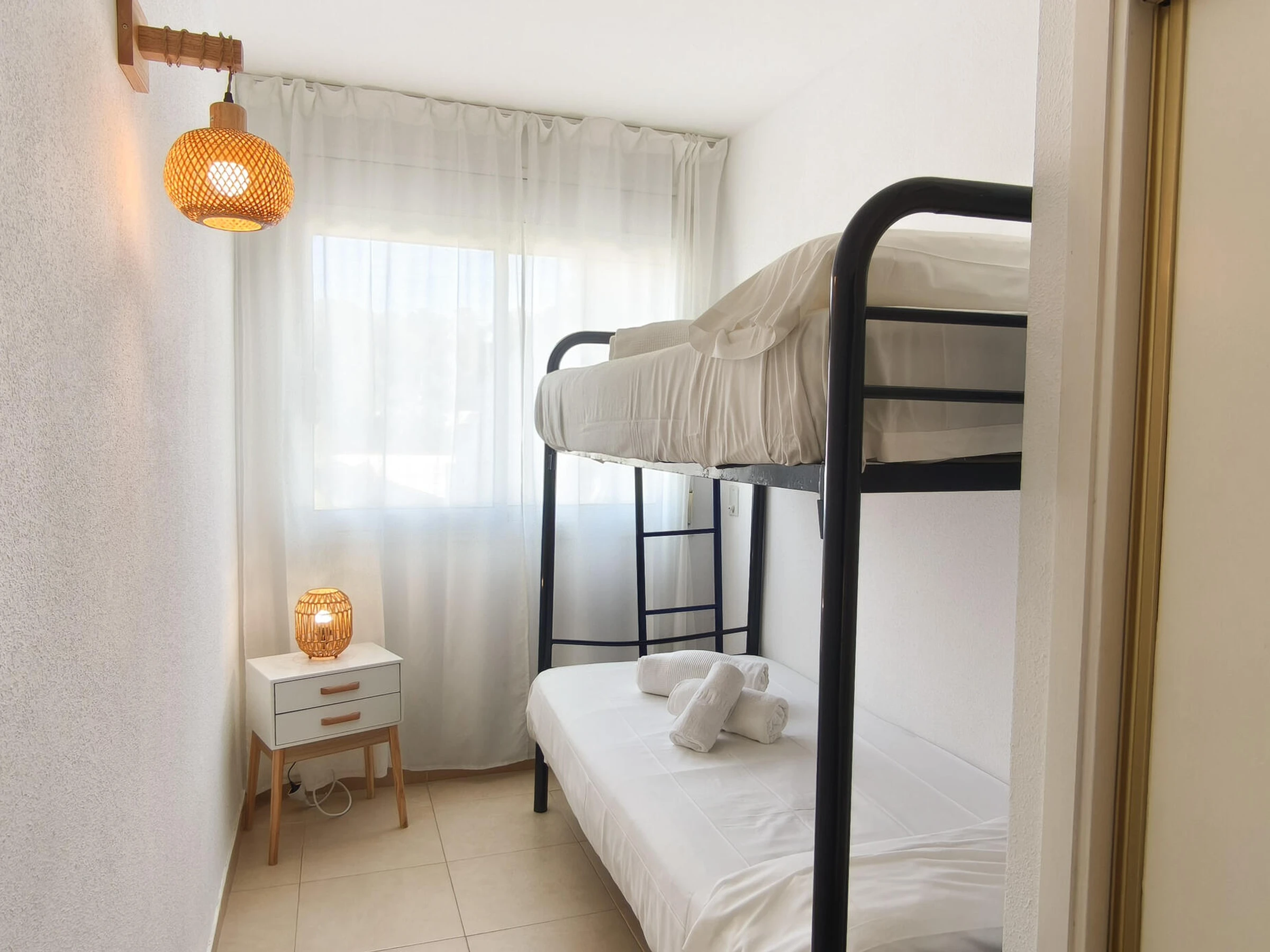 Duplex comprising of a set of 5 houses, located in 2nd line of sea, to 50m of a precious fine sand beach called “Cala Calafaté”. It has all the conforts (fridge/freezer, dishwasher, microwawe oven and washing machine). On the first level, a laundry room, a fully equipped kitchen, a living room (with 1 sofa-bed), wich opens on to a terrace (with terrace furniture). It has an inside stair case and the first floor consists of 1 bedroom with bunk-beds, 1 bedroom with 2 single beds, 1 bedroom with 1 double bed (this room has an exit to a terrace), and 1 bathroom with a shower. This property welcomes families and groups of responsible adults but does not allow youth events or parties. DESCRIPTION OF THE AREA The Costa Dorada is the most famous coastlines in Catalonia with 37 blue flag beaches, known for their quality and excellent state of conservation. There are many fantastic beaches and small dreamy coves with turquoise and crystalline waters, most of them very quiet and some of them untouched. A perfect place to walk on the GR-92 route, go for a bike ride, boat or kayak trip, or go scuba diving and discover the secrets that lie at the bottom of the Gulf of Sant Jordi. On the Costa Dorada, is were you will find the Calafat urbanization sea front, racing circuit and marina of the same name. Calafat has more than 2 km of coastline, It's located in the municipality of L'Ametlla de Mar , a small fishing village reknown for the high quality of its fish. 20 minutes to the south you will find the Delta del Ebro Natural Park, a beautiful place you need to visit! You can dive with the largest tuna in the world and enjoy exciting moments, sail on a modern and innovative catamaran. Last of all PorAventura World is a unique holiday destination full of fun for the whole family, It's just 30 minutes from Calafat.