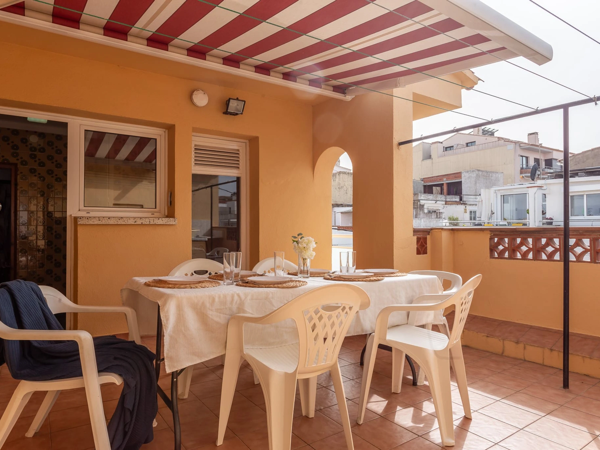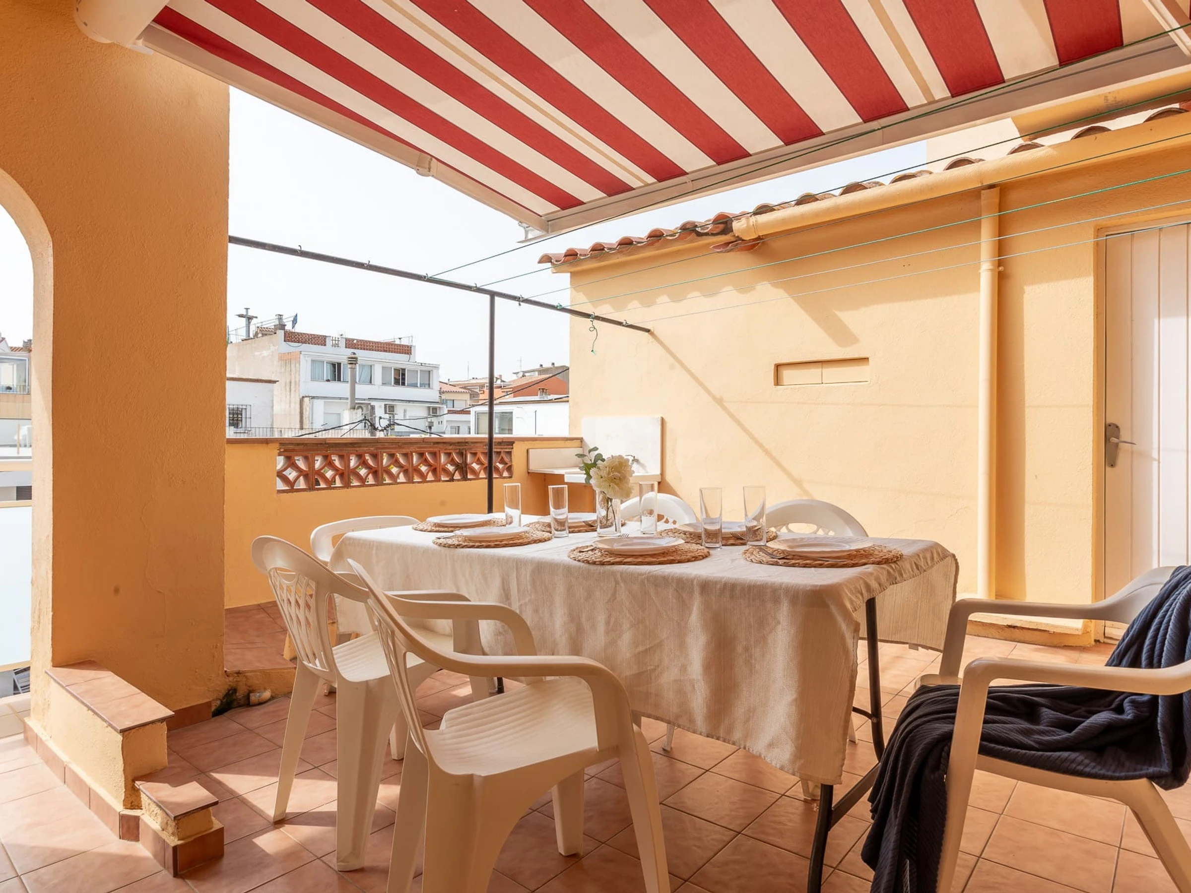 It is a perfect apartment for a family. It consists of 3 bedrooms, a living-dining room with lots of light and sea views, a fully equipped kitchen, a terrace with a dining table and an awning to cover you from the sun.