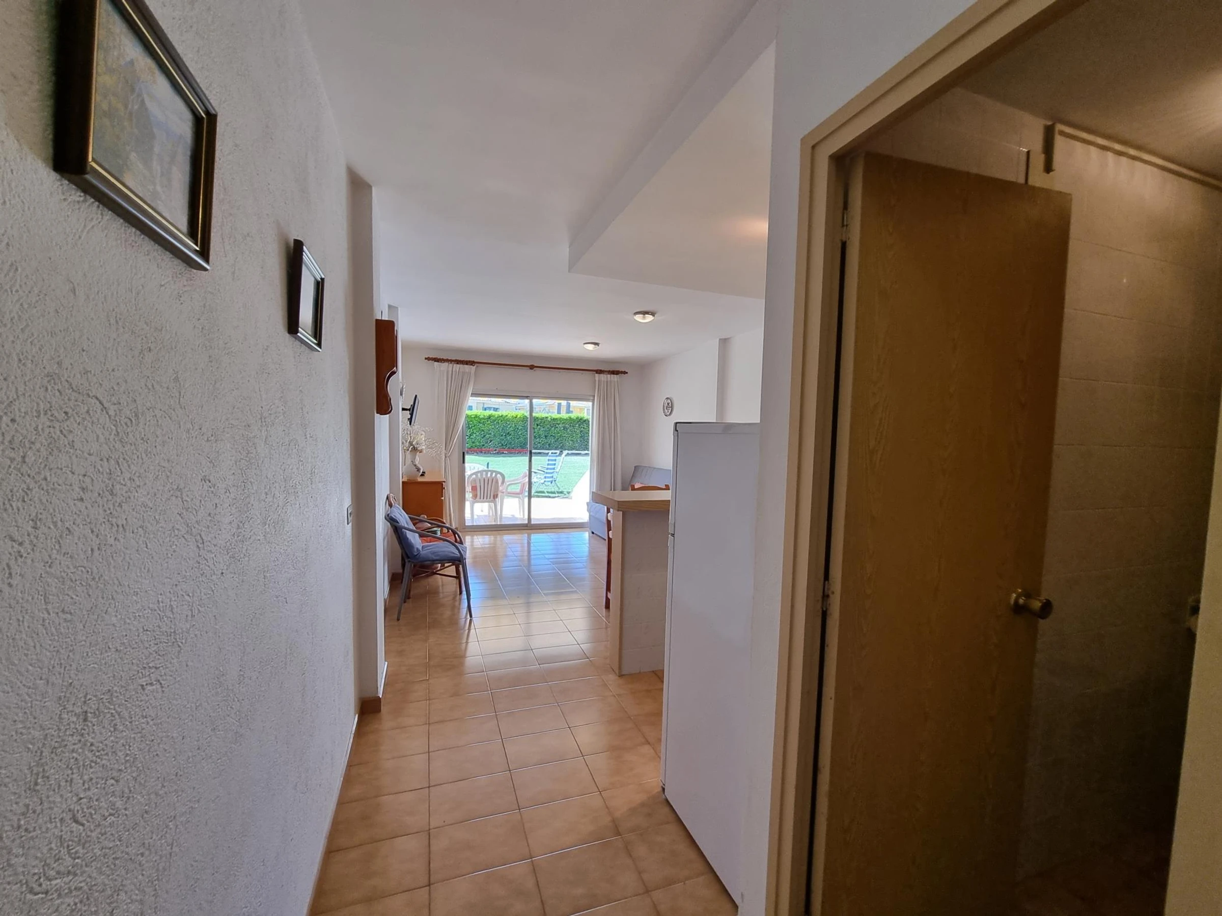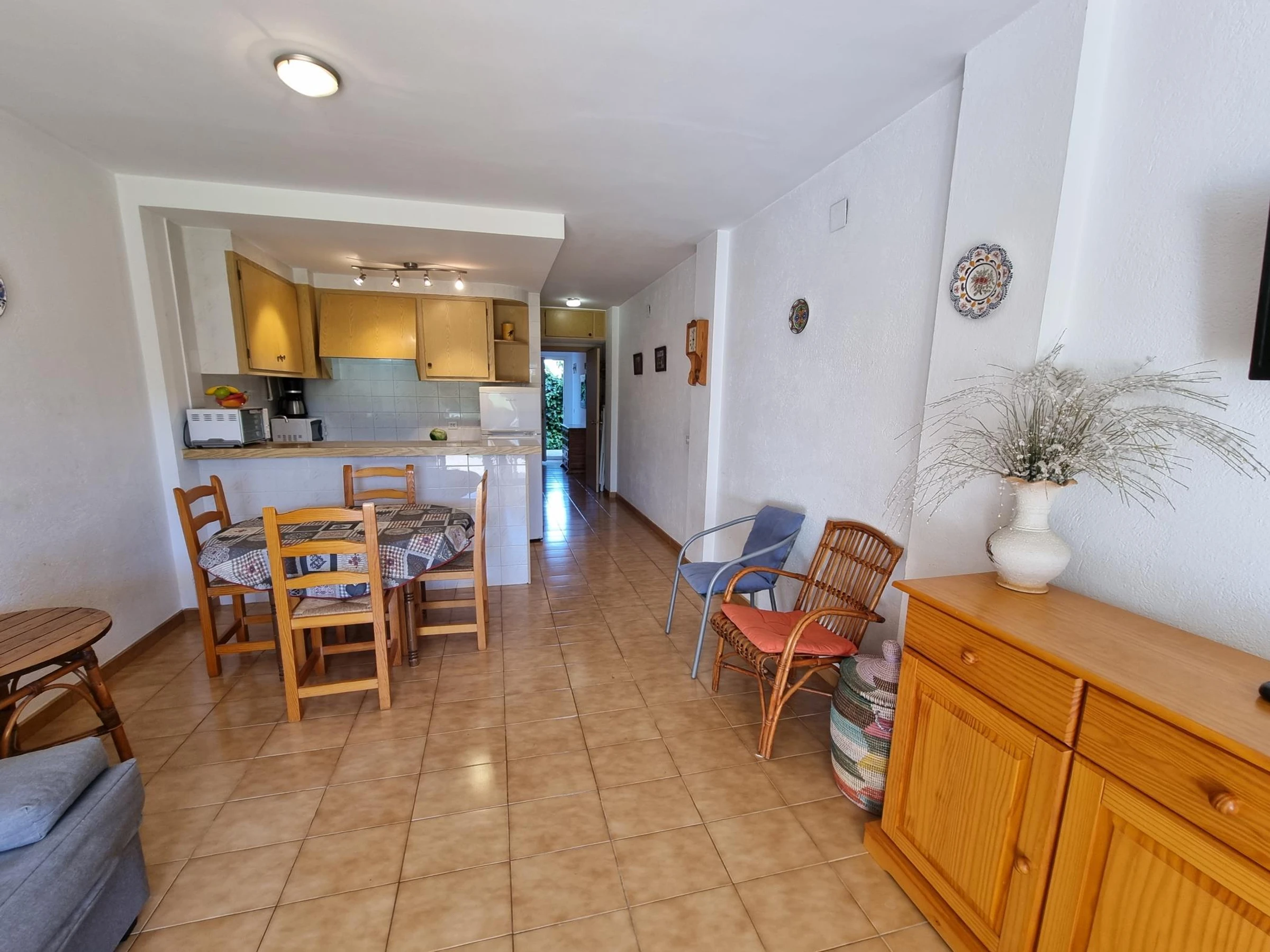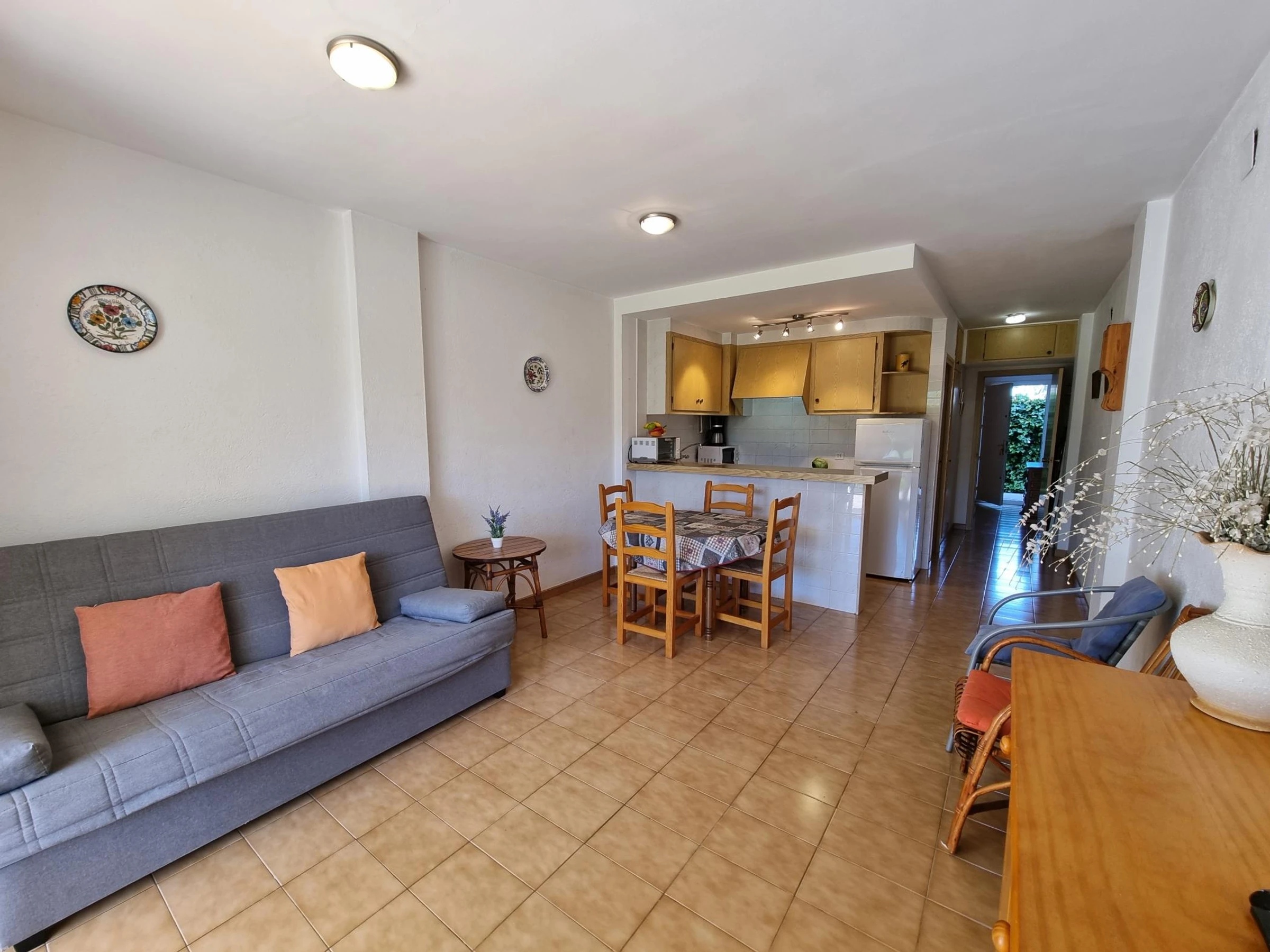 El apartamento cuenta con una habitación doble, cocina-comedor, baño completo y terraza con vistas al jardín con acceso a la piscina comunitaria.