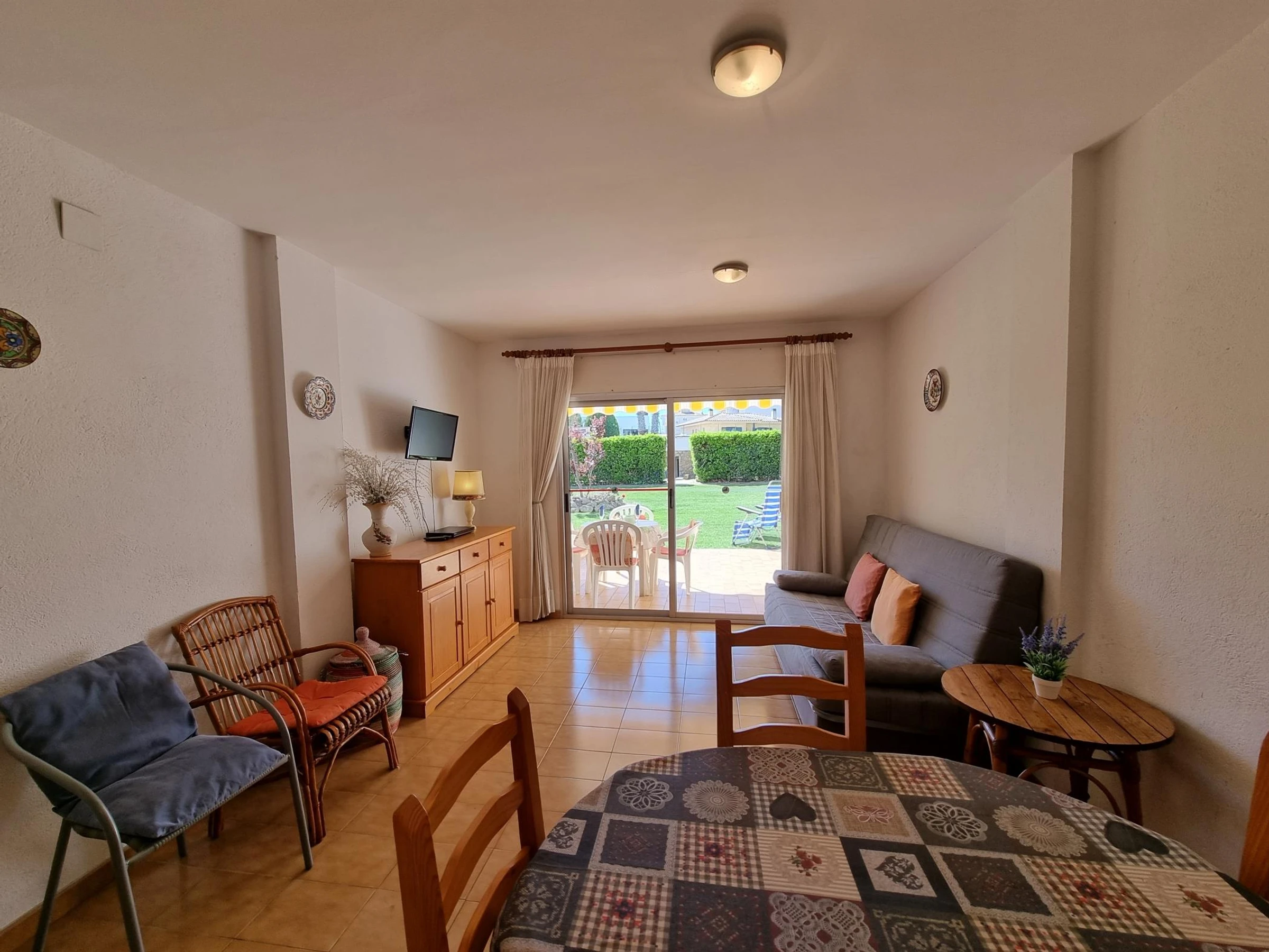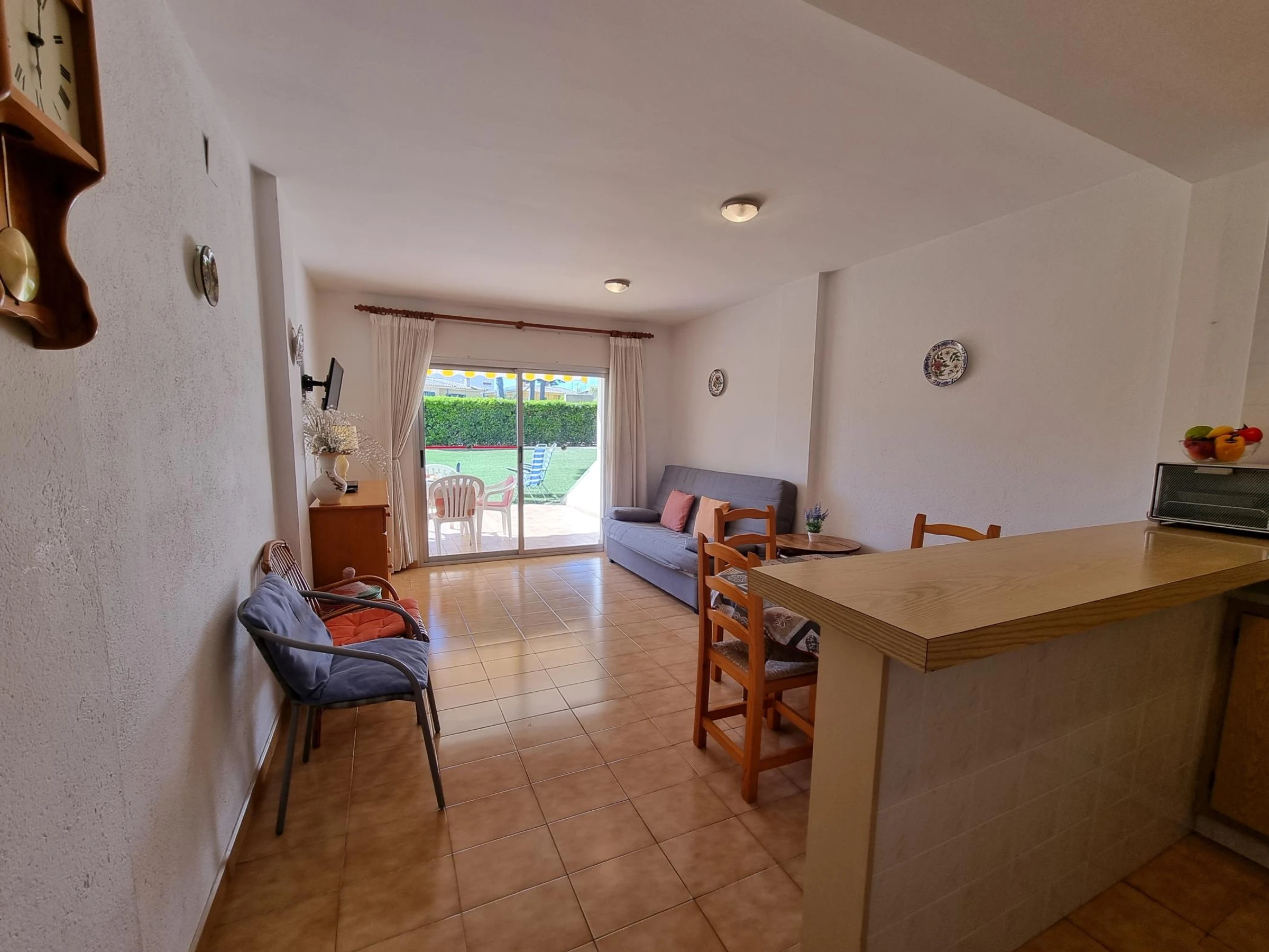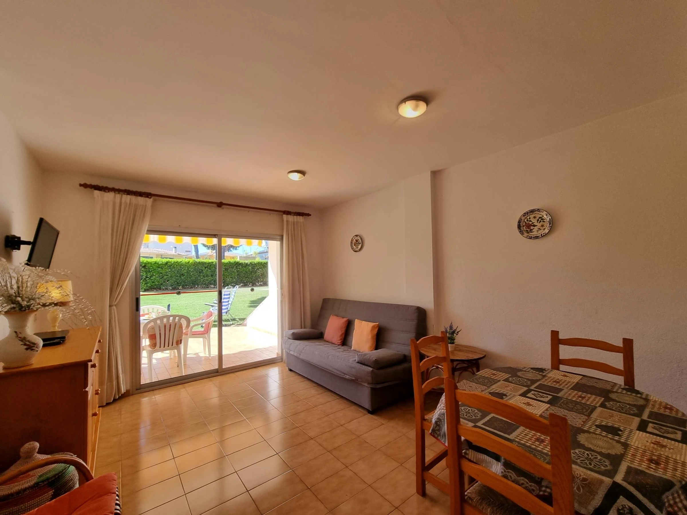 El apartamento cuenta con una habitación doble, cocina-comedor, baño completo y terraza con vistas al jardín con acceso a la piscina comunitaria.
