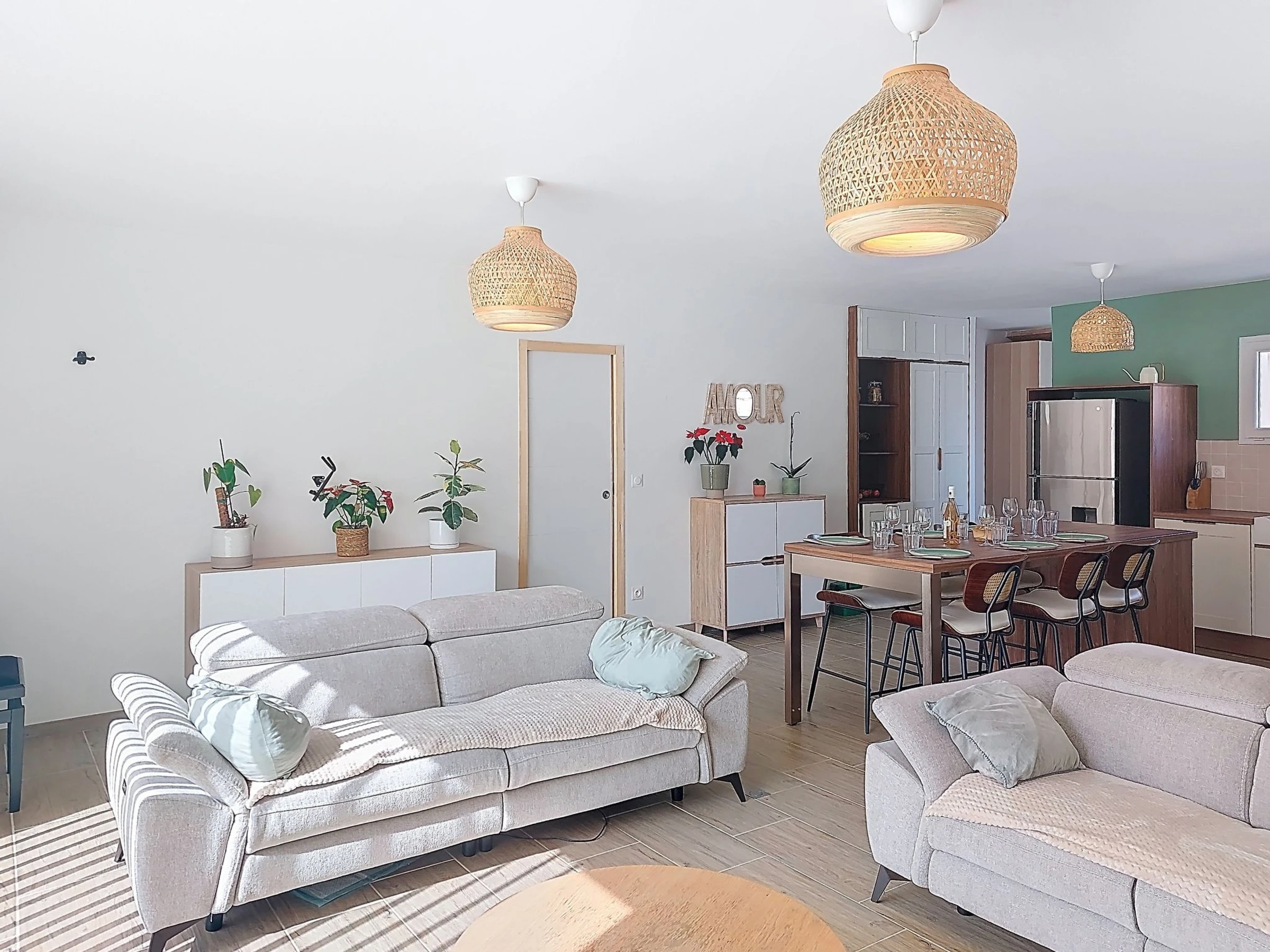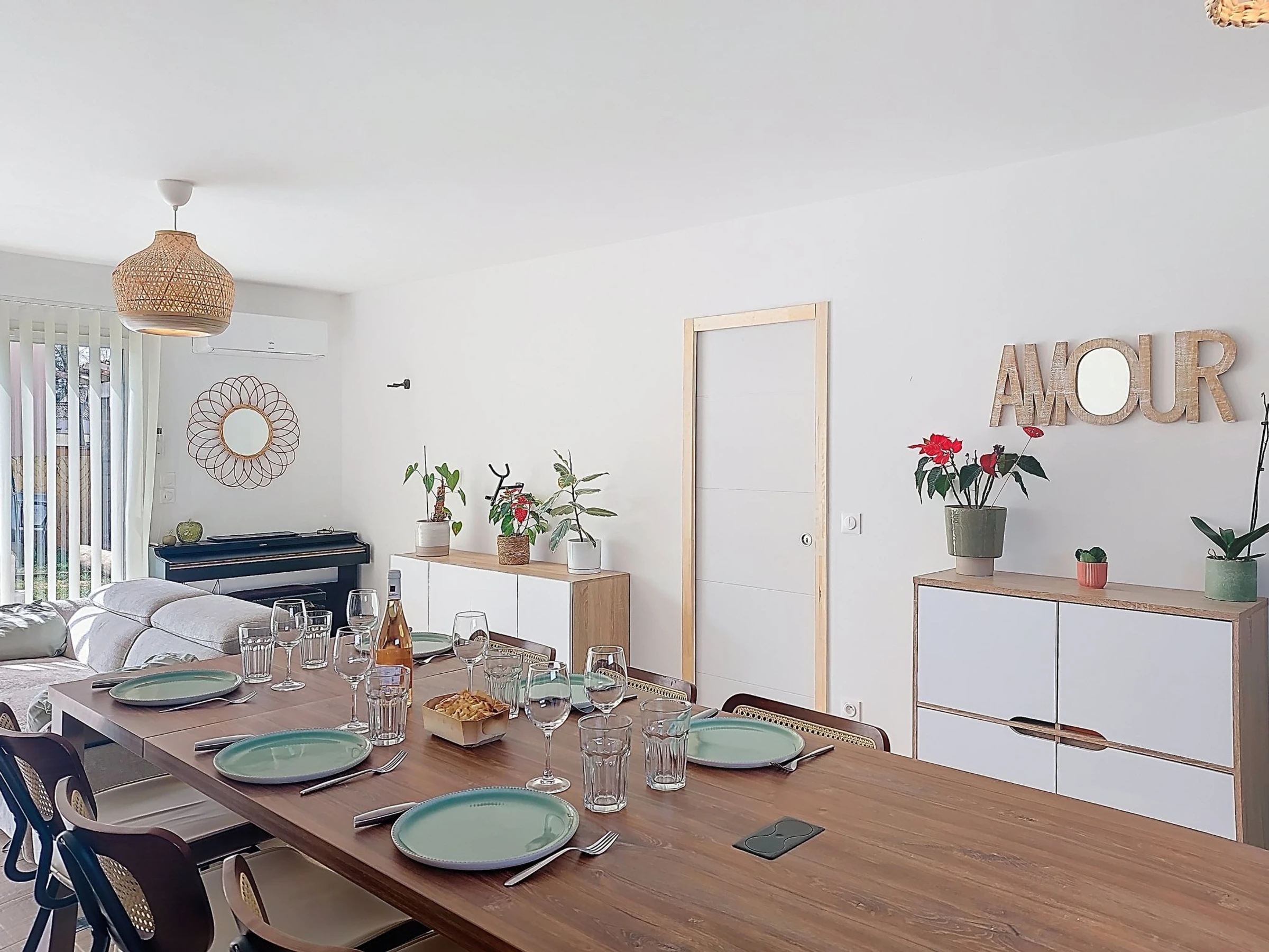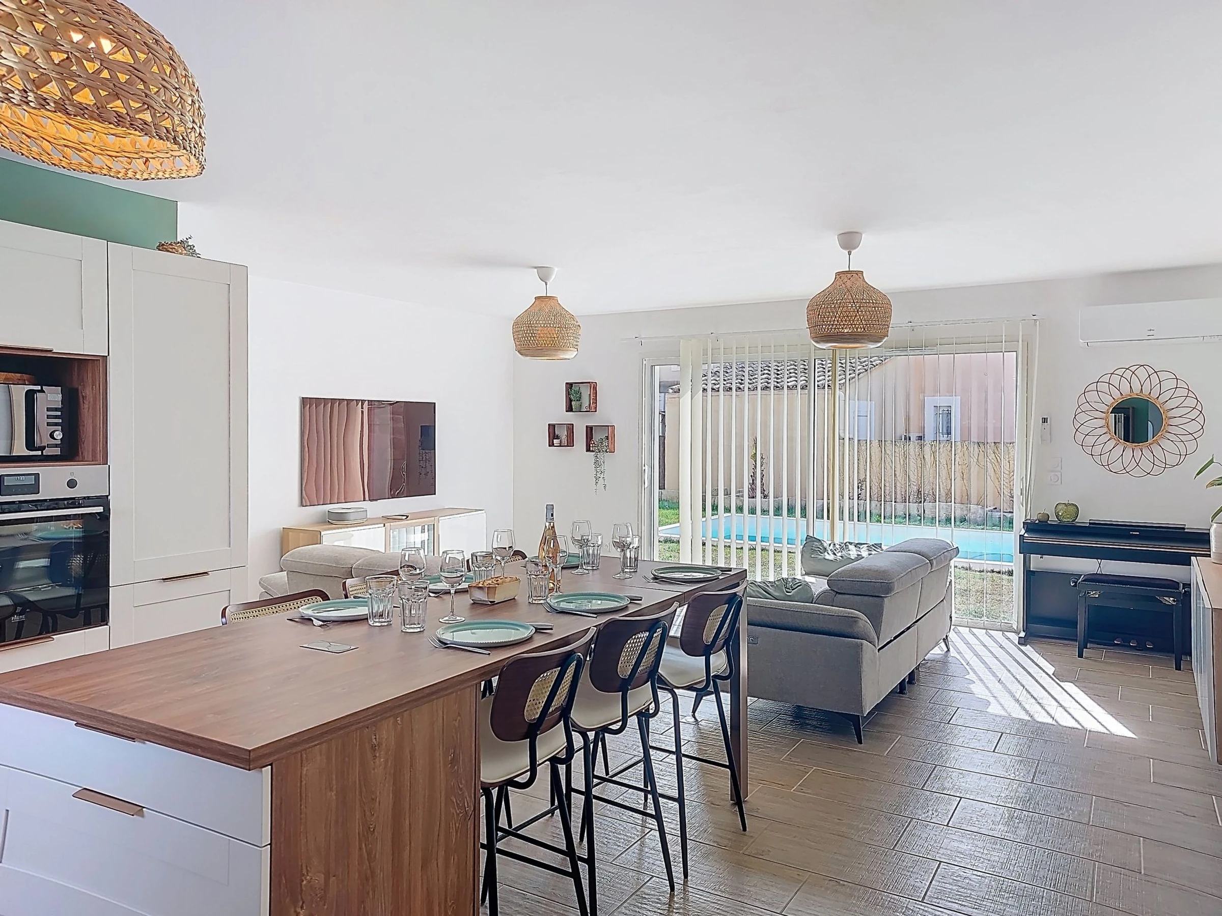 "AQUI SIAN BEN", 4-room villa 120 m2. Comfortable and modern furnishings: large living/dining room with TV (flat screen), air conditioning. Exit to the terrace. 1 room with 1 french bed (160 cm, length 200 cm), separate WC, shower, double hand-basin and TV (flat screen), air conditioning. Exit to the terrace. 1 room with 1 pull-out bed (2 pers. 2 x 80 cm, length 190 cm). 1 room with 1 french bed (140 cm, length 190 cm). Open kitchen (oven, dishwasher, 5 induction hot plates, toaster, kettle, microwave, freezer, electric coffee machine, cooking island) with dining table. Bathroom, sep. WC, double hand-basin. Electric heating. Terrace 40 m2, south facing position. Terrace furniture, barbecue, deck chairs (6). Facilities: washing machine, iron, baby cot for up to 3 year olds, hair dryer. Internet (WiFi, free). Please note: non-smoking house. Maximum 1 pet/ dog allowed. The pool mentioned in the description is for private use. Offer by a private individual according to  Art. 155, IV of CGI. [hidden]