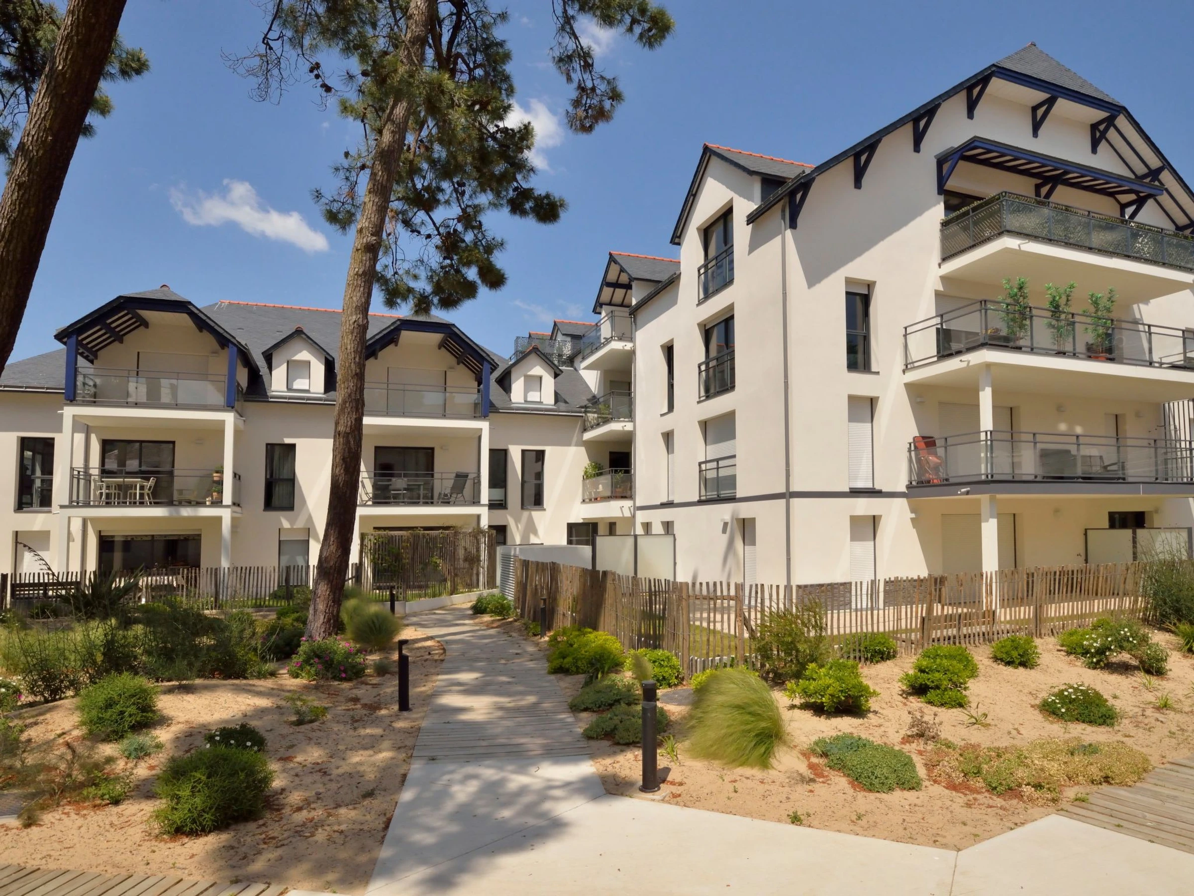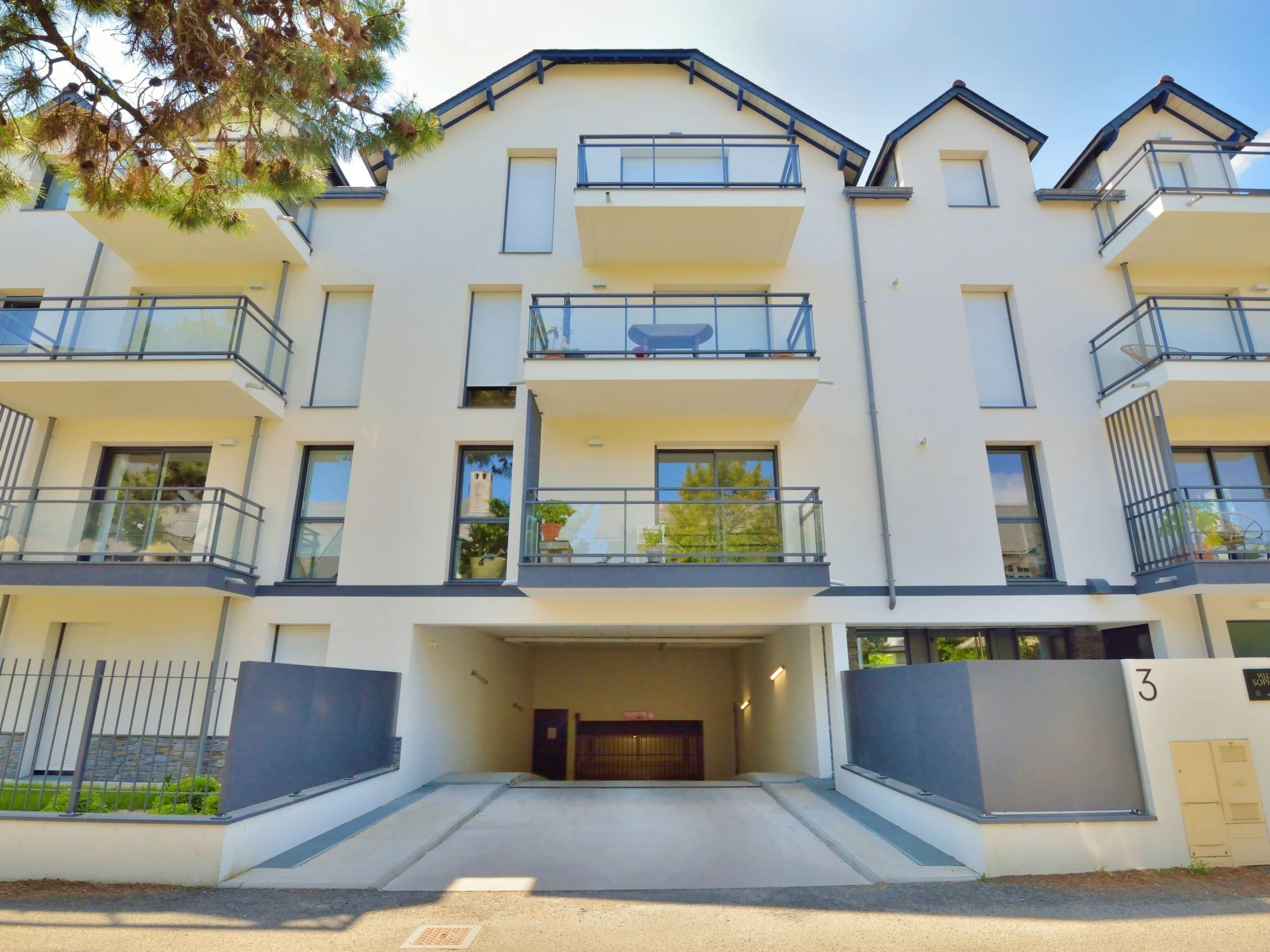 Beautiful, comfortable residence "Villa Sophia", 2 storeys, built in 2023. 50 apartments in the residence. 100 m from the centre of La Baule, in the residential district, 700 m from the sea. For shared use: park 3'000 m2 (fenced). In the house: lift. Single garage. Dimension: height 193 cm width 260 cm. Grocery, supermarket, restaurant, bus stop 100 m, railway station "La Baule" 500 m, sandy beach "Grande Plage de La Baule" 700 m. Tennis 1.1 km. Nearby attractions: Le Pouliguen 6 km, Guérande 8 km, St Lyphard-Parc de la Brière 14 km, Le Croisic 14 km, Piriac sur Mer 19 km, Nantes 77 km. Hiking paths: GR34. Residence with electric gates.